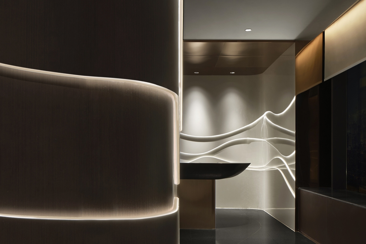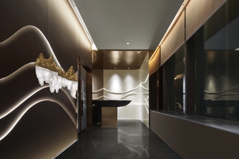 The designer integrates the Michelin cuisine with the local characteristics, combining them into the space design of the restaurant, and breaks the traditional modes and styles with modernist techniques. Incorporating the unique natural landscape of Guizhou, it transforms the beautiful scenery of range upon range of mountains into plain geometric forms. With shiny rosy clouds and gurgling water as the clue, it links the wandering movement flow, forming a unique, visually attractive space. Under the idea of integrating knowledge and action put forward by the famous Chinese thinker Wang Yangming in the Ming Dynasty, the designer presents with perception the exclusive spatial style and modern life aesthetics of picturesque Guiyang.