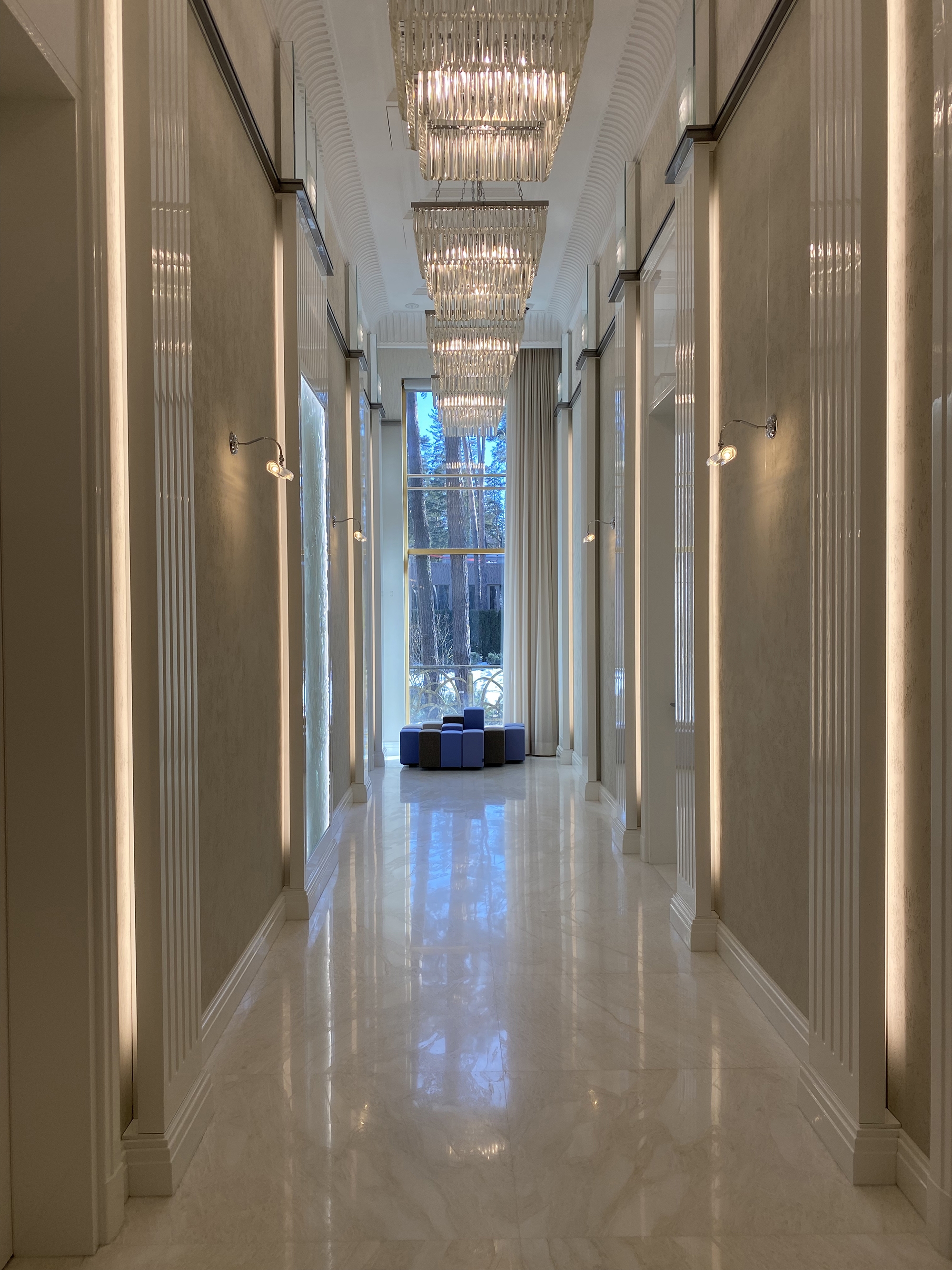 The originality and distinctiveness of the interior is coupled with it being practical, consistent and pure in an avant-garde manner. You relish its spaciousness full of light and air, its sophisticated stylistic allusions, exquisite finesse of natural materials and magnificent execution of every single detail. One of the most unique features of the interior is certainly the fireplace in the lounge. This 6-metre-high art object is made of a single slab of marble with the use of innovative technologies of stone processing.