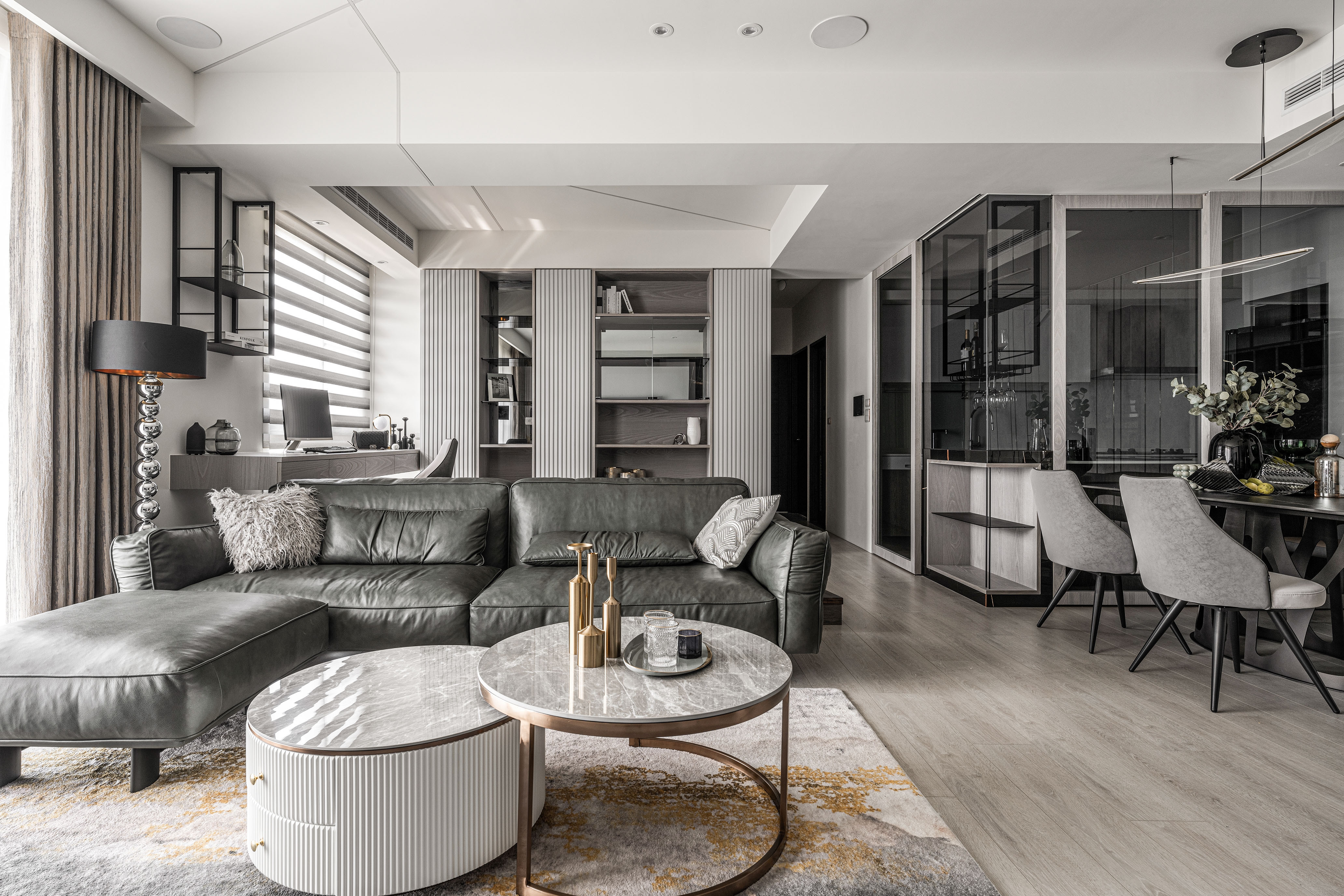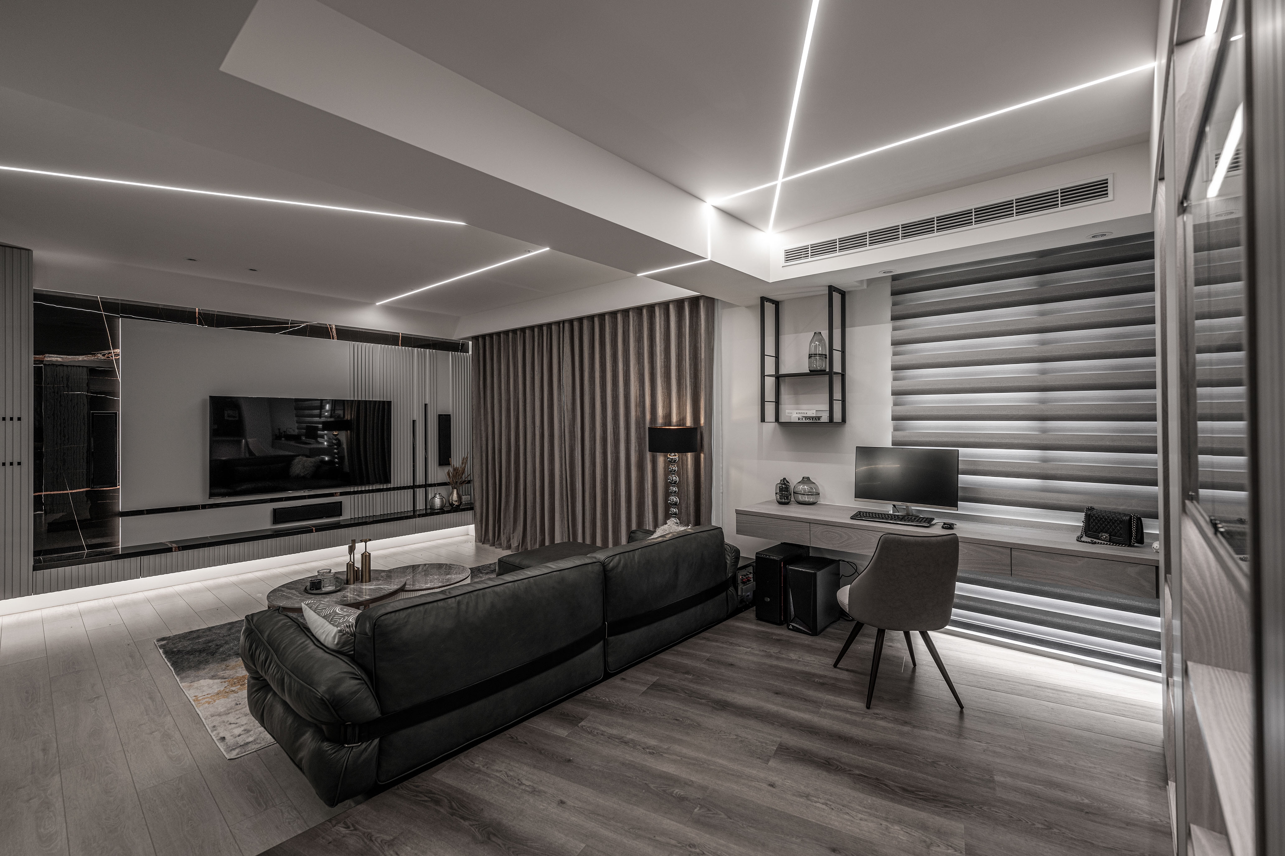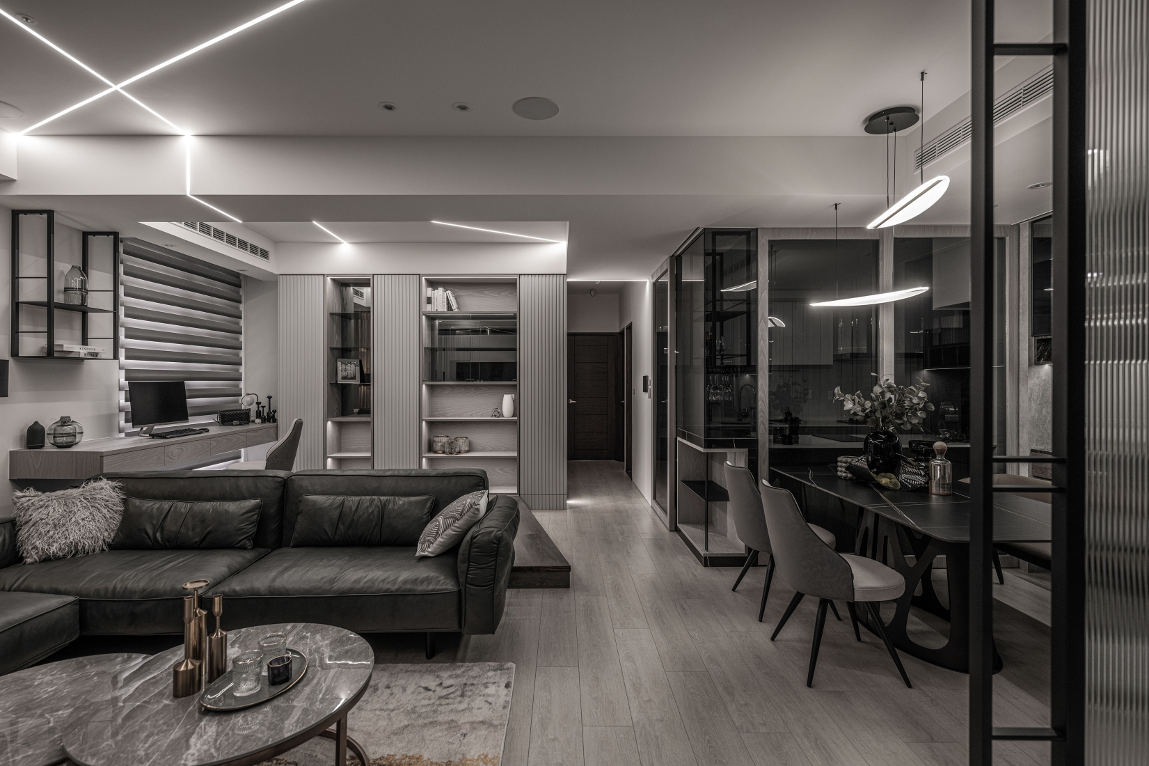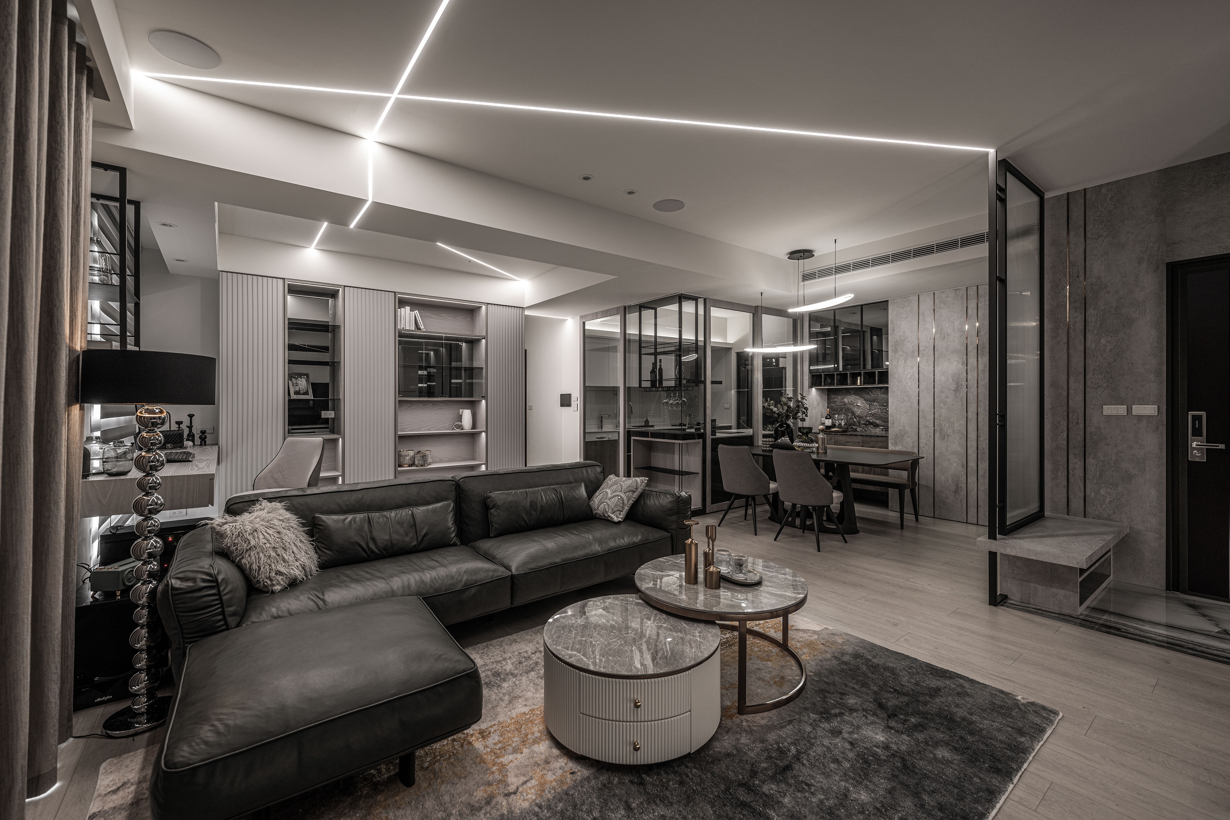 The concept of diamond and the precision of a deft cut gem originated from the client's appreciation for luxury and elegance. The light penetration through gaps douses the interior with expressive lighting, circulating rooms with embrace. When confronted with limited space, properties of reflective materials in fusion with elegant lights emits an infinite depth of field. The living area and the study adopt an open design to maximize the given space. The bedroom benefits from gorgeous lighting methods that resemble reflective gems, encumbering the clients with an emotionally stable atmosphere.