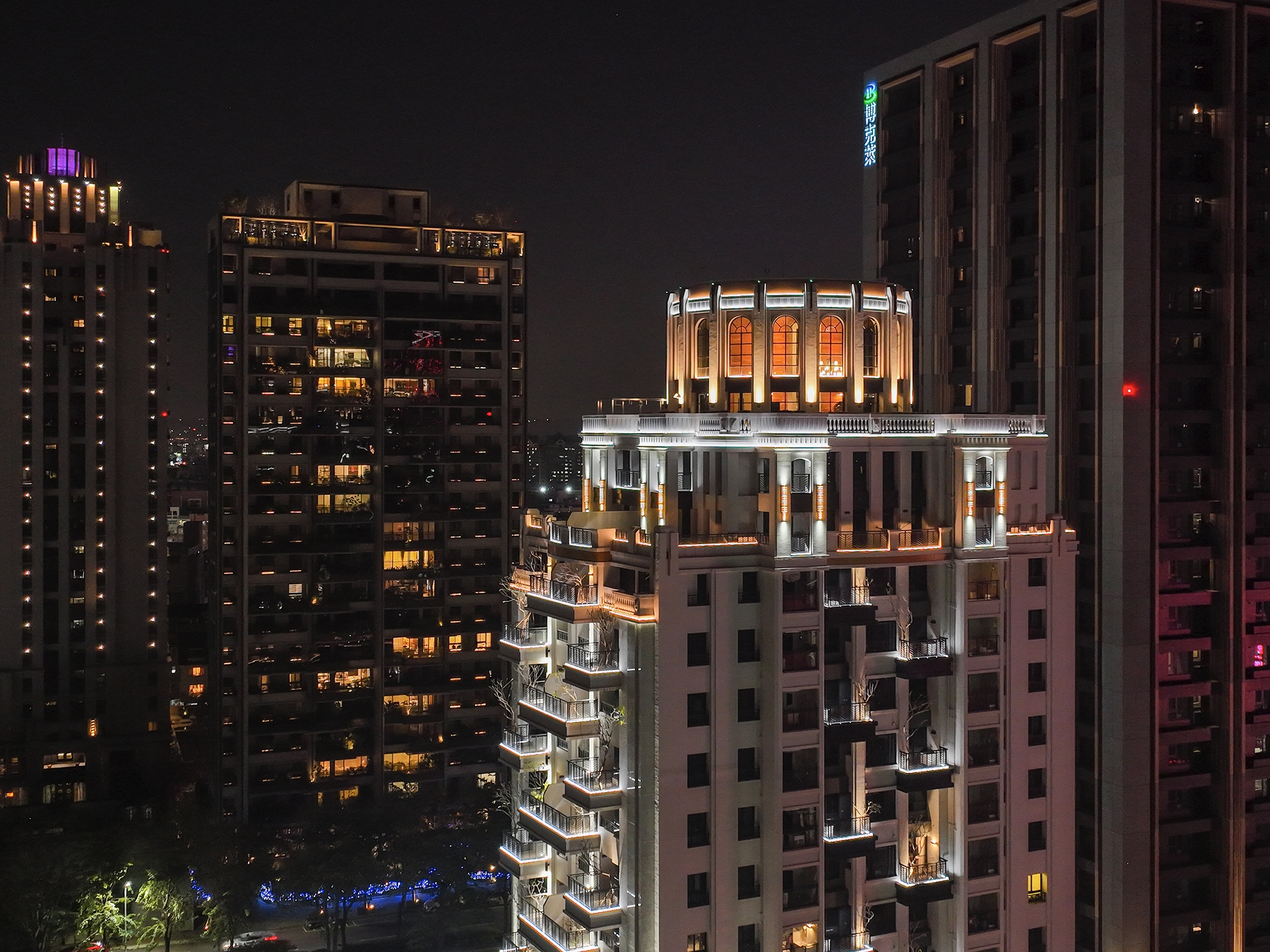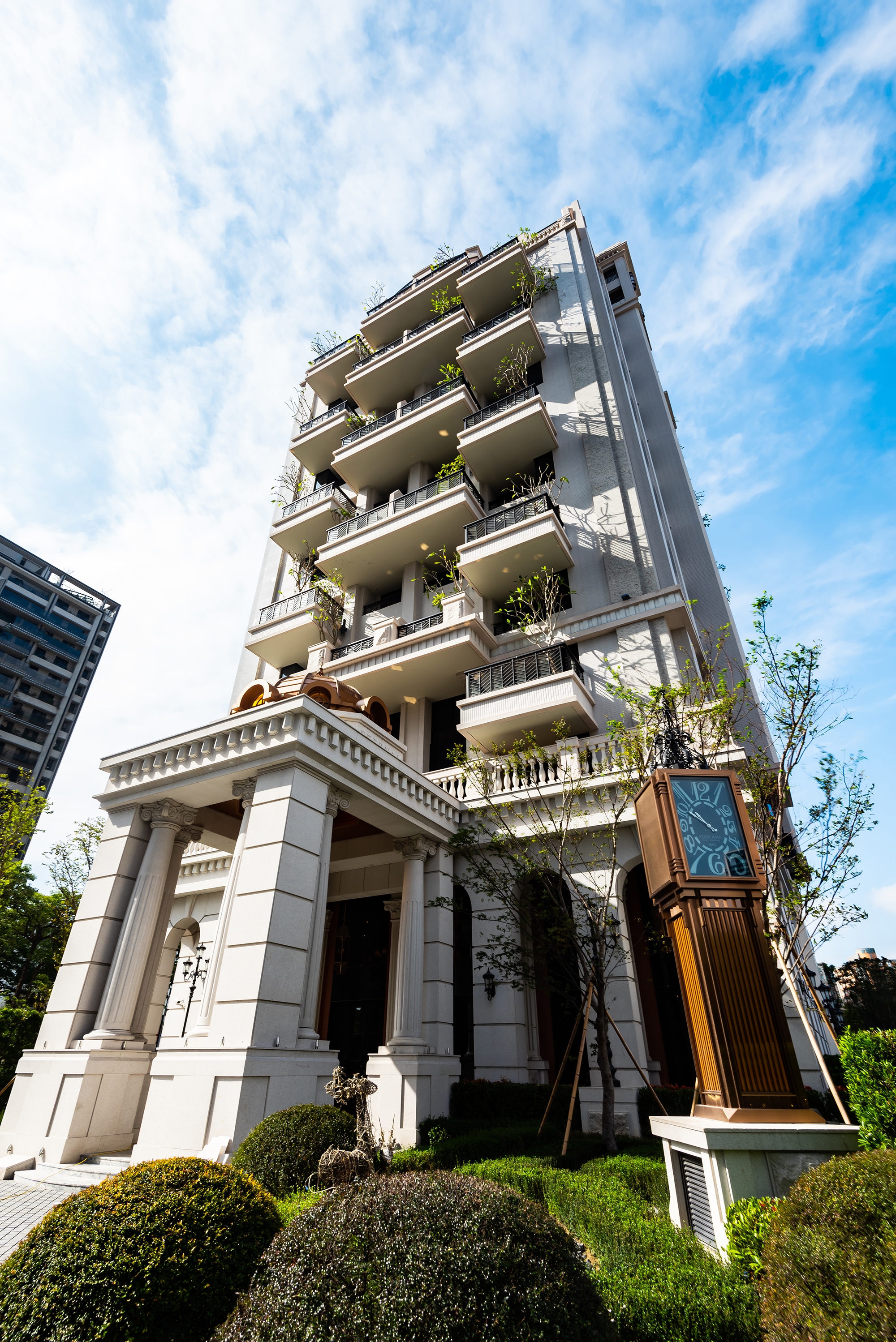 The building is made of granite, and European classical columns are used as the entrance pillars, highlighting the majestic visual sensation. Delicate carvings on the stone walls and pillars demonstrate a sense of delicateness and elegance. Trees and greenery are planted on the tropical balcony, thus forming a vertical green building form.