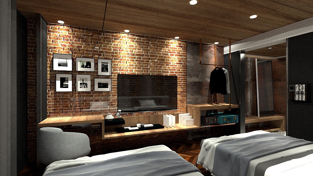 Located in the capital of Cambodia, this interior design project is a business hotel that accommodates local and international visitors. After several thorough discussions between the designer and the client, both parties have concluded that the British industrial retro style will be featured as the project’s theme. The use of vintage red brick, wood, and black iron as the base, combined with bronze metallic objects and pipes, set the space’s tone. Besides, the designer also handpicked Western antique furniture pieces to refine the entire space brilliantly. What’s more, the animal-shaped decorations are placed by the designer to add fun and playfulness to the residence.