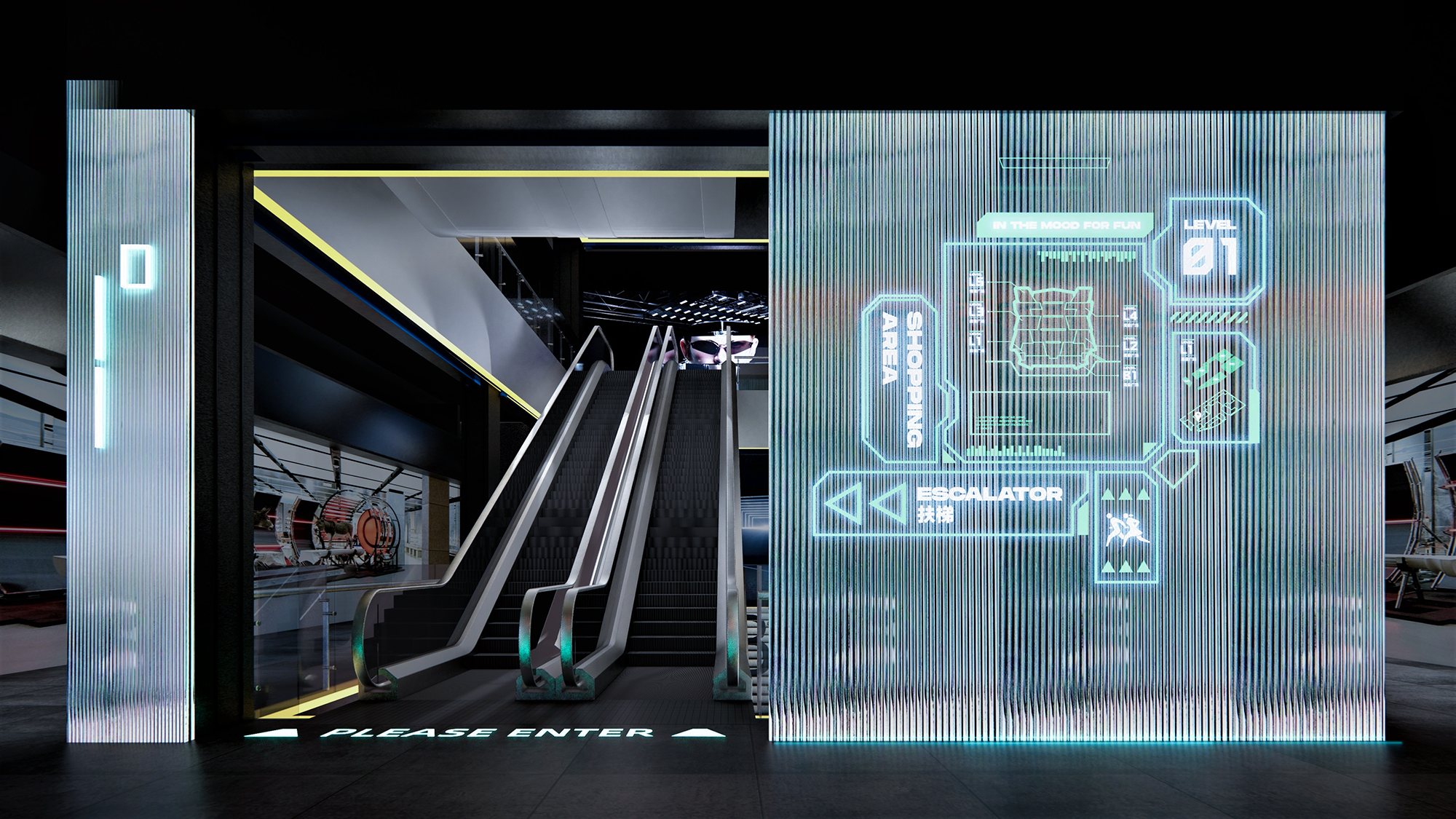 The signage is also a human–machine interaction interface and a component of the space atmosphere. It cooperates with the interior design to tell a story about living in a spacecraft and to provide an immersive experience.