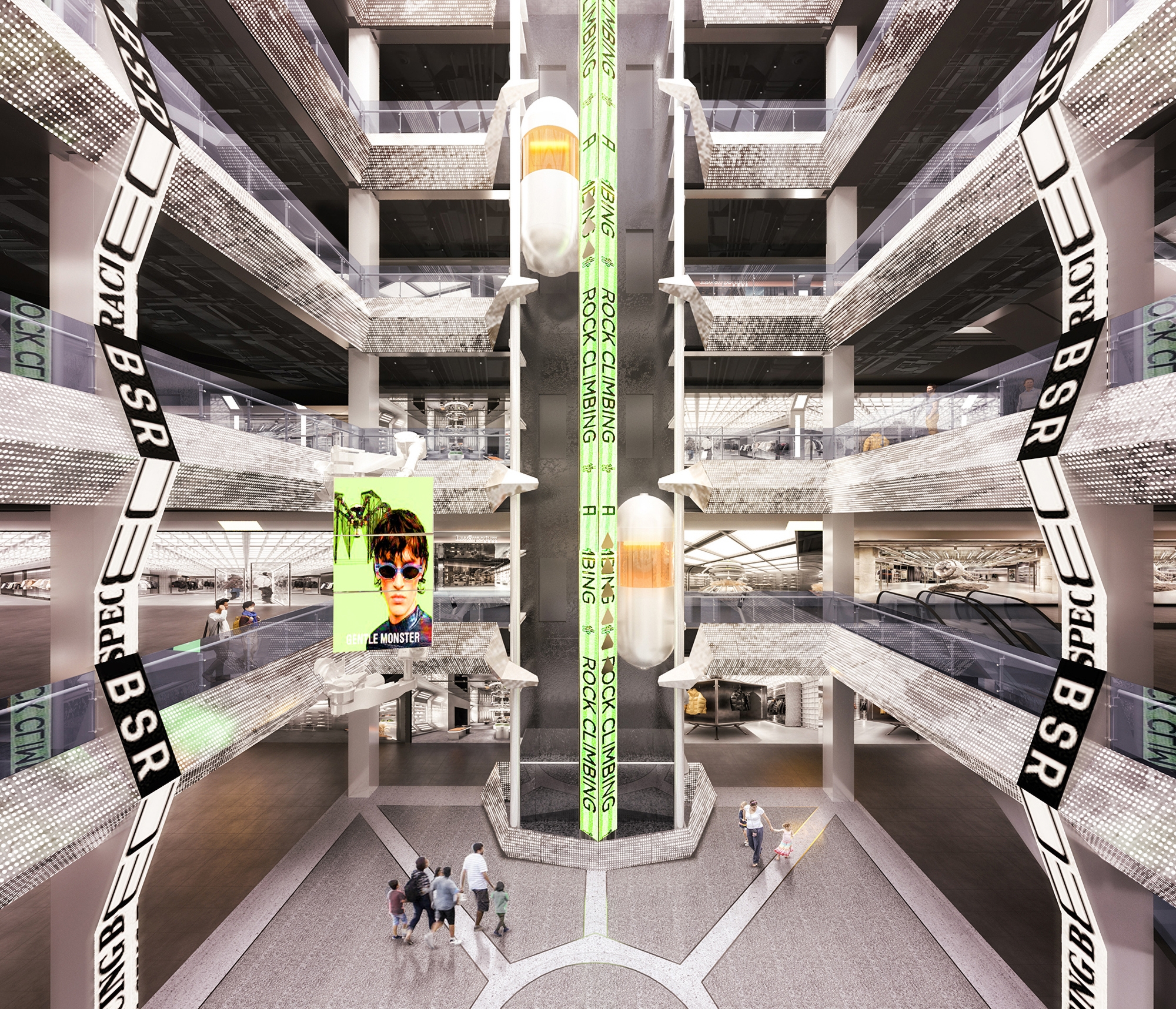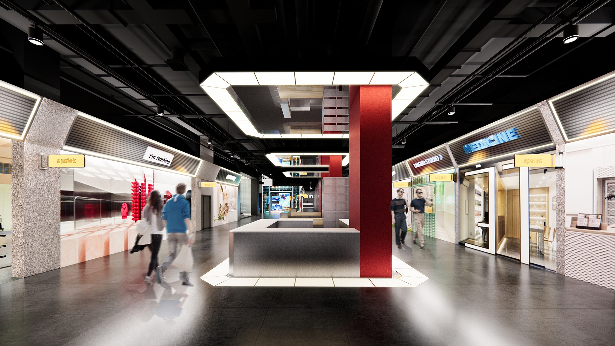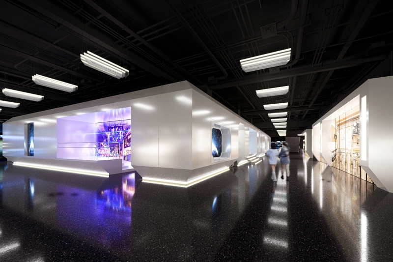 It is a renovation project from a traditional retail center to a mixed-used complex designed for young people. The metallic spaces inside the complex shift between small and big, dark and bright, transparent and opaque, linking different interior spaces and functions. Each scene contributes to the original concept of the “spacecraft”, while leaving a space of imagination to the viewers.