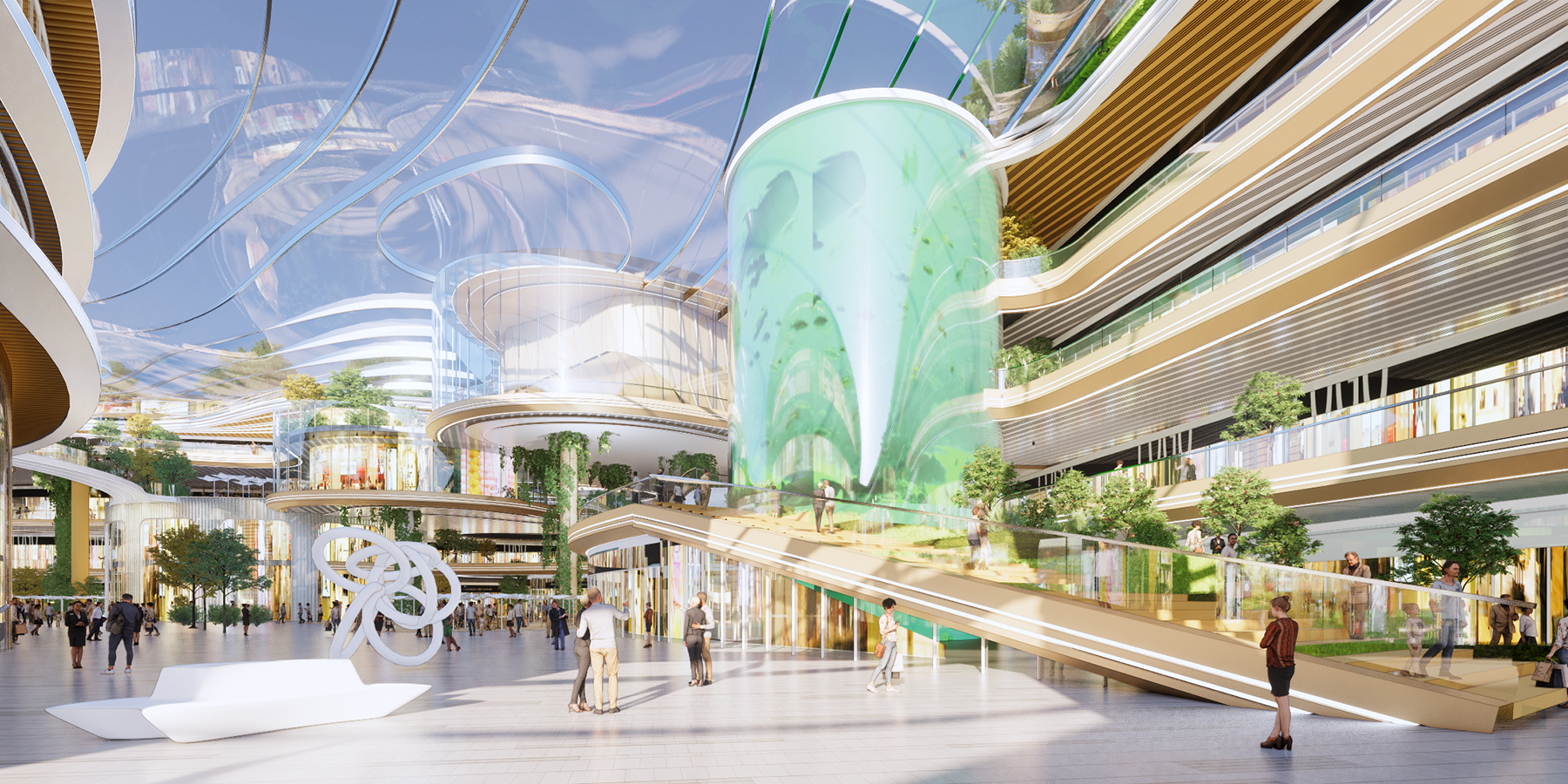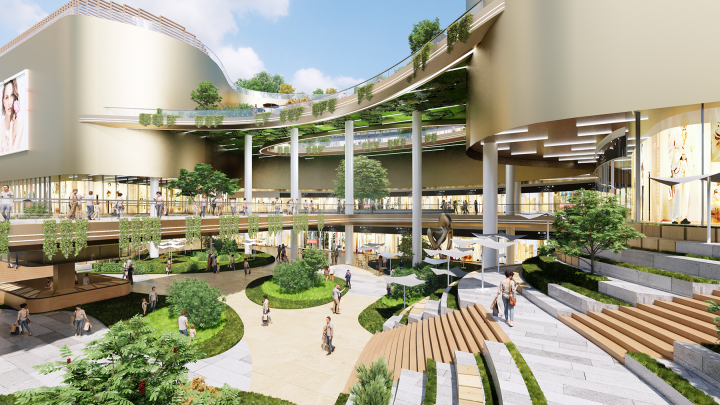 Lecong Red Star Macalline International Mall is located in Foshan Lecong, a national historical and cultural city, and a hot spot for furniture trading and commerce in the Pearl River Delta Region of China. Its total GFA is 210,000 square meters and the building has 6 floors (5 floors above ground and 1 floor below ground). PHA’s renovation design has comprehensively enhanced the internal and external functions and spaces of the original commercial space, including the facade, external plaza, and environmental planning, as well as the transformation of the internal space. The mall aims to change the design and shopping style of the traditional furniture outlet and create a new business model for consumers—an artsy and interactive shopping experience.