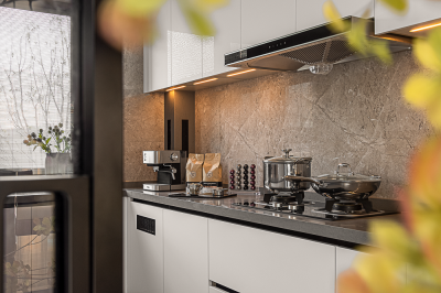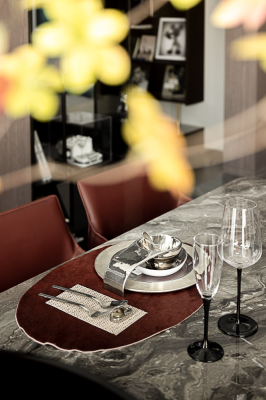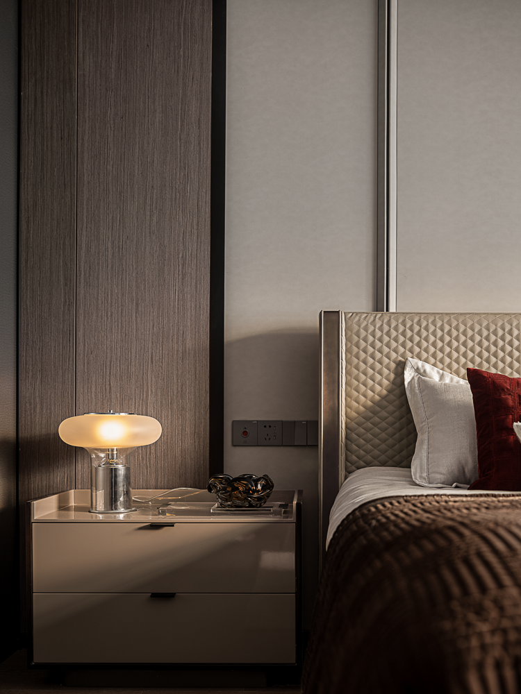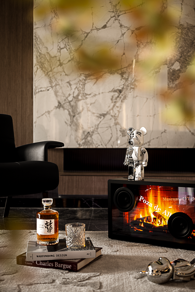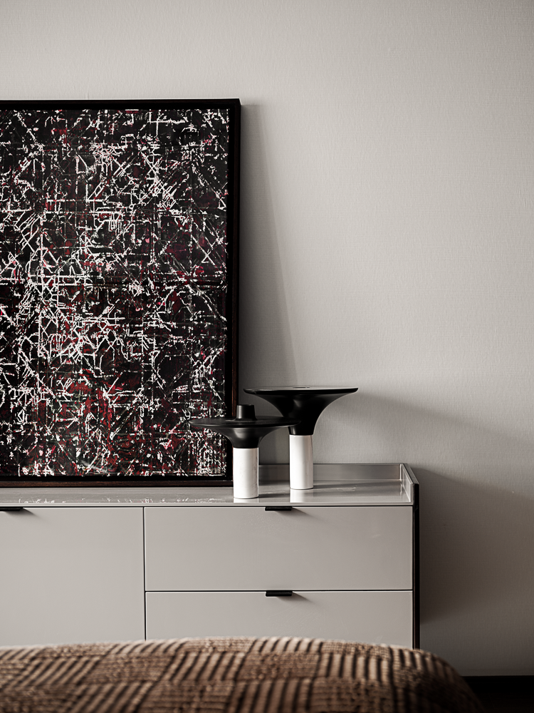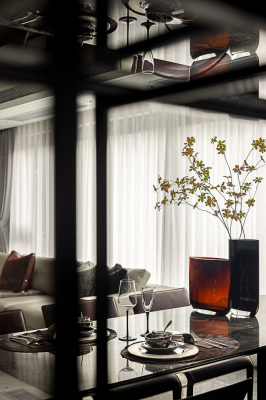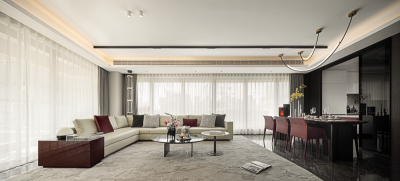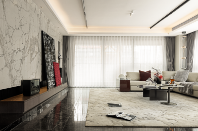 The designer of this case combines urban elite life and modern art closely, endowing the space with bright and fashionable design style, and constructing a social scene interwoven with music and quality in the super wide living room.