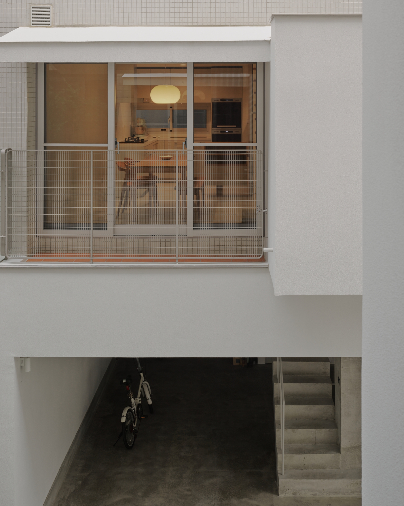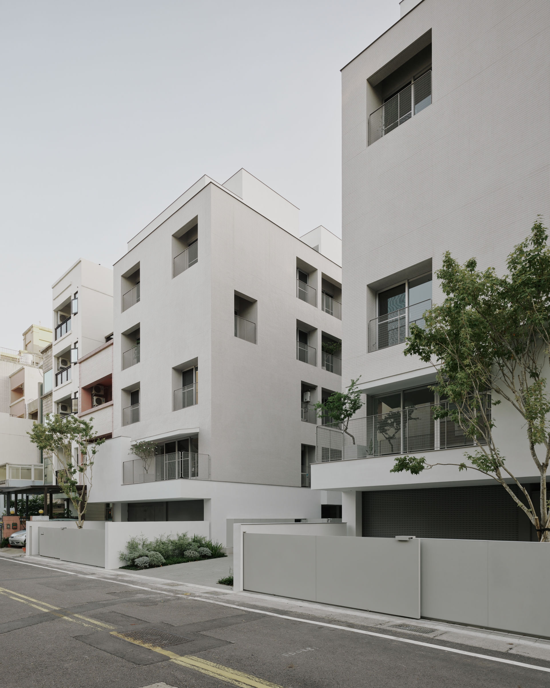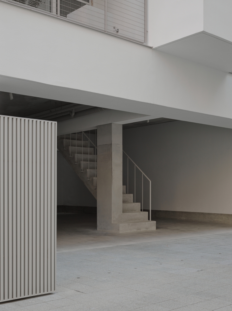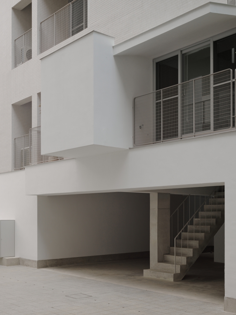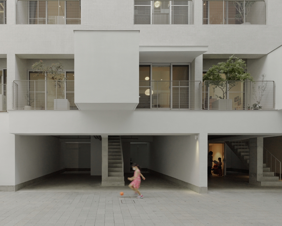 Terrace boxes, balconies in combination with eaves cantilevered off the elevations, establishing unique characteristics between housing units within the overall collective structure. In terms of the core living value, these elements become the intricate boundary that regulates between the inside and outside: the eave slopes down as it extends outward, opening up the city view horizontally; the terrace wall combines external conditions internally, bringing in backyard-like space and atmosphere, creating duo rain experiences between two facing elevations within one singular space.