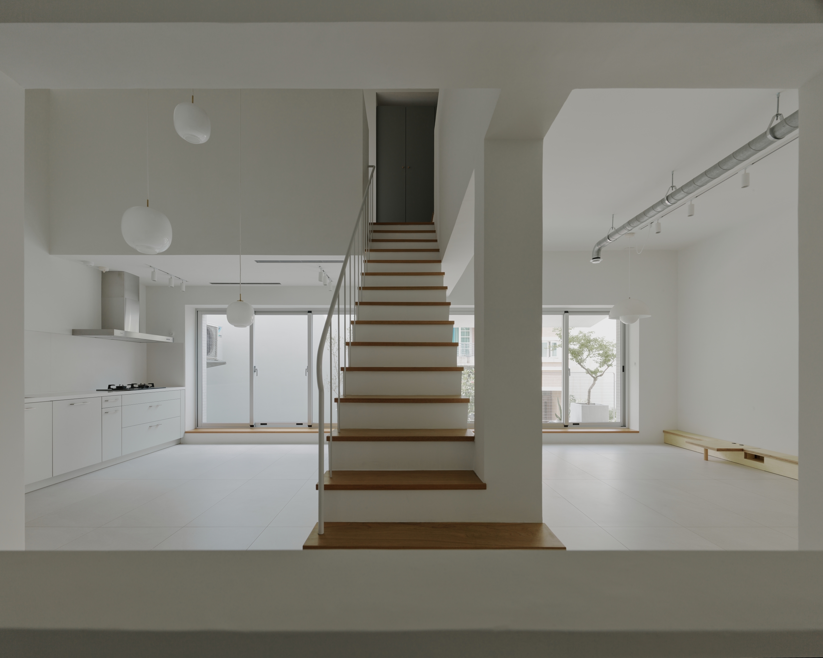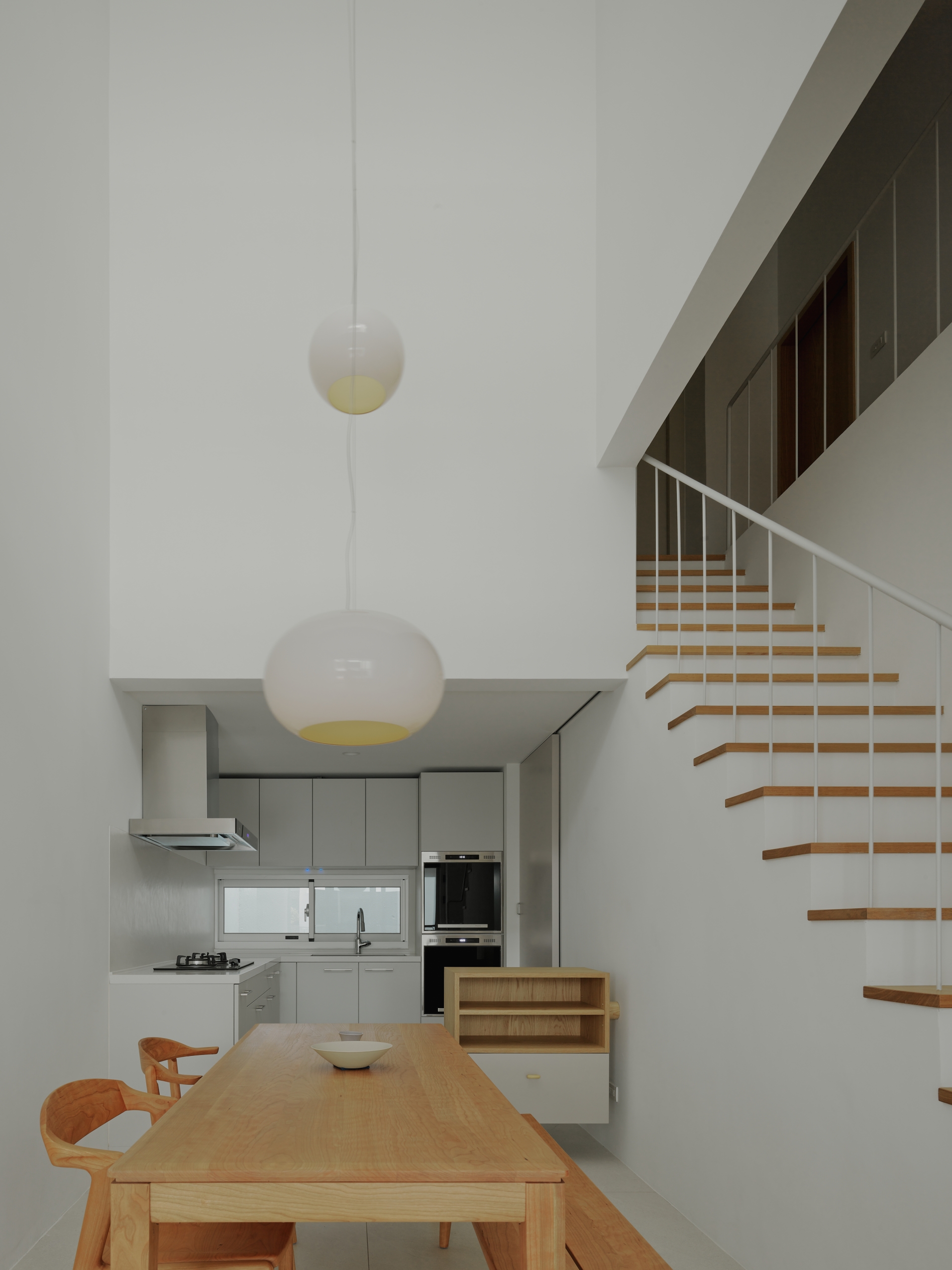 In this project, the staircase is considered as a continuously changing (third) wall in the space, sometimes operating in a closed condition and sometimes open, transforming dependent on its surrounding situations. This connective role of the internal staircase allows the dining space to become more than a “still” area, and able to be utilized as an important “central social hub” within the house, linking the kitchen, the living room, the void and the mezzanine closely together.
