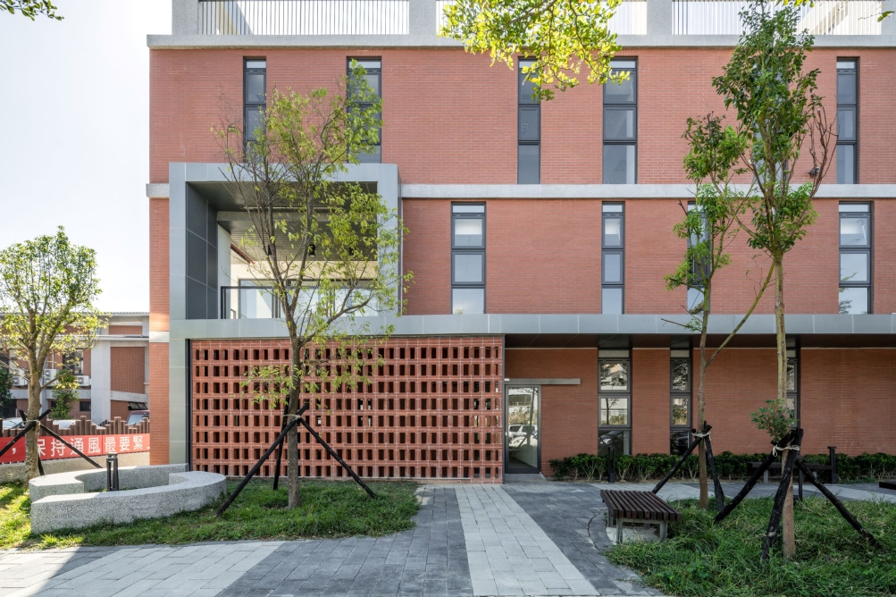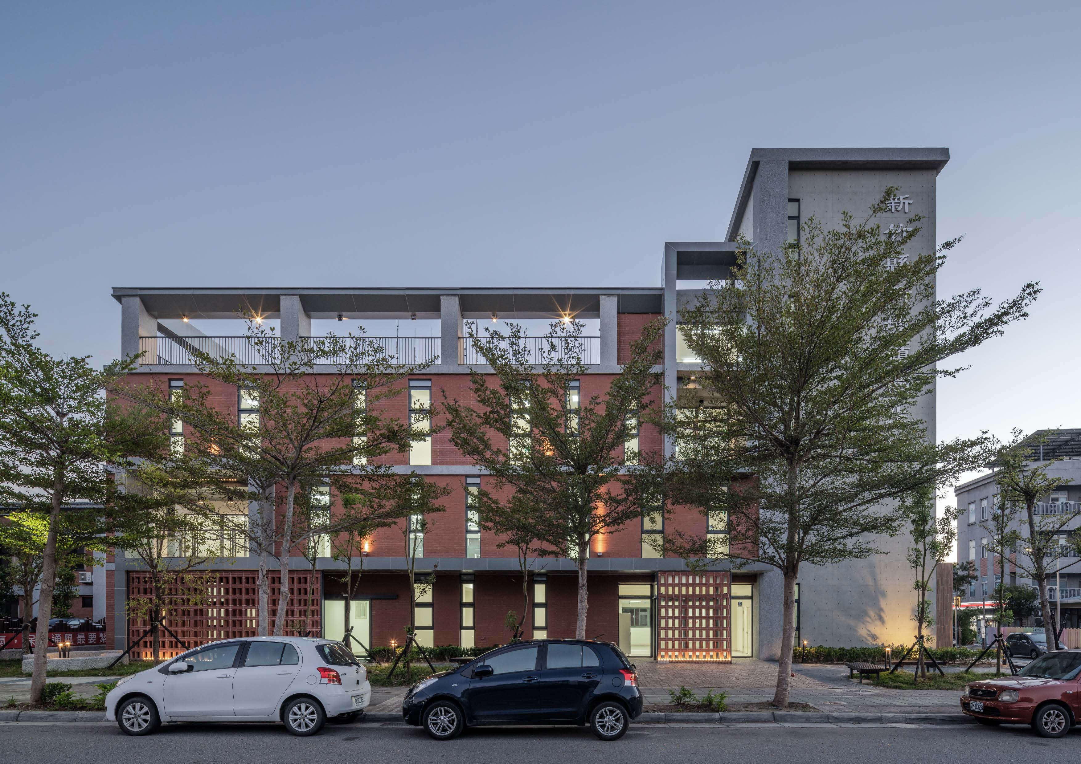 District Public Health Center, Xinpu Township, do as a community-type composite medical care service space, in addition to reaching the medical service of residents and taking into account the day care services of the elderly, and the overall shape is constructed with simple volume and horizontal lines,integrating local buildings and urban context, and using square balcony openings to create semi-outdoor leisure space and sun space, using long misplaced windows to maintain a private clinics environment, and using local materials creates different materials on the facade.