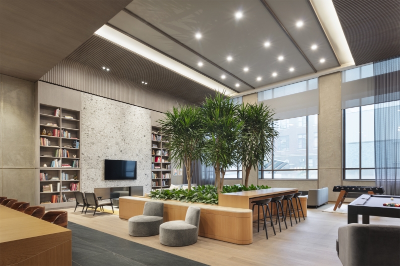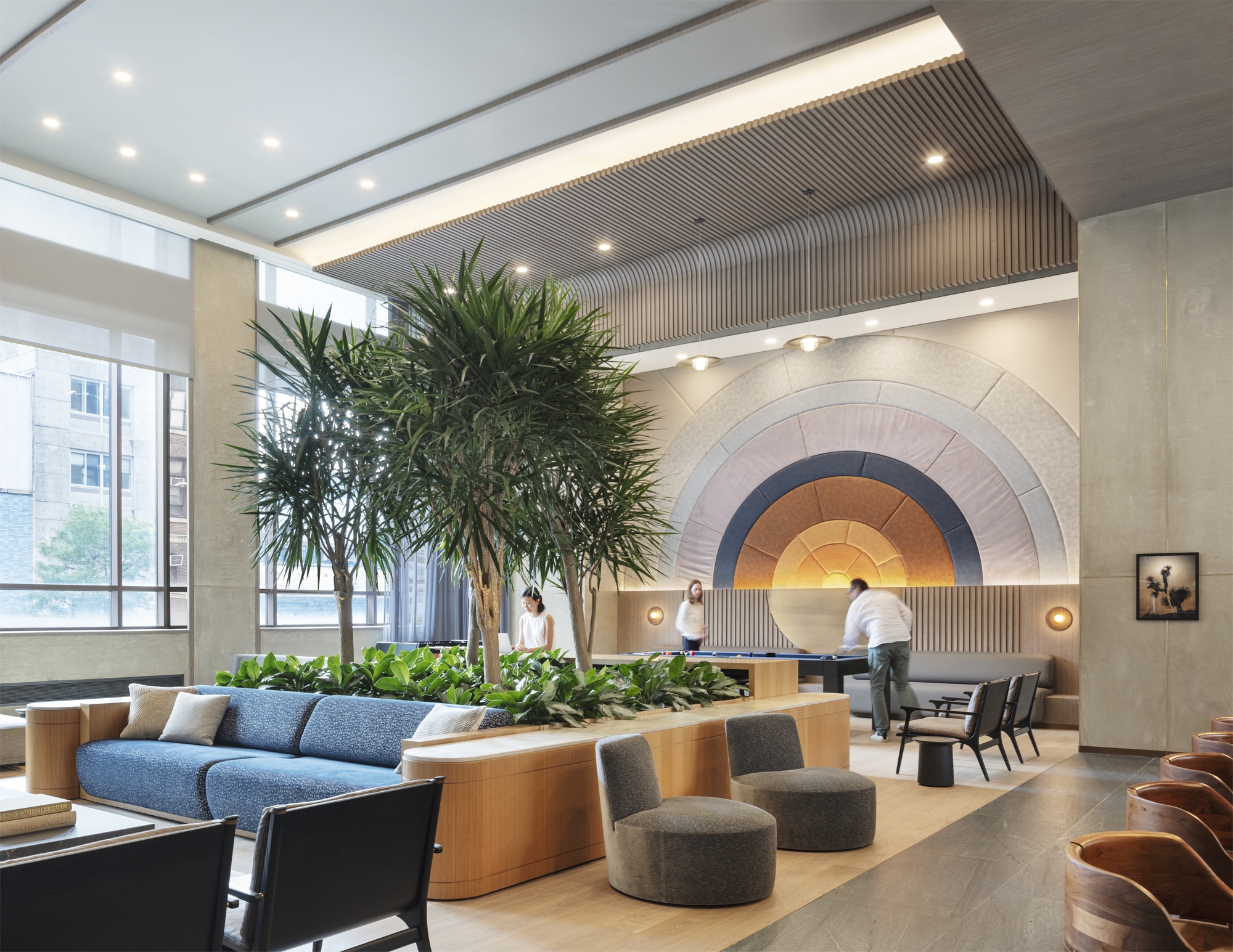 The Landon is a 340-unit residential building located on West 43rd street. Built over two decades prior, the site was in need of a significant renovation to keep up with the surrounding developments. Complex interventions were needed for the lobby, amenity and fitness, and rooftop spaces.