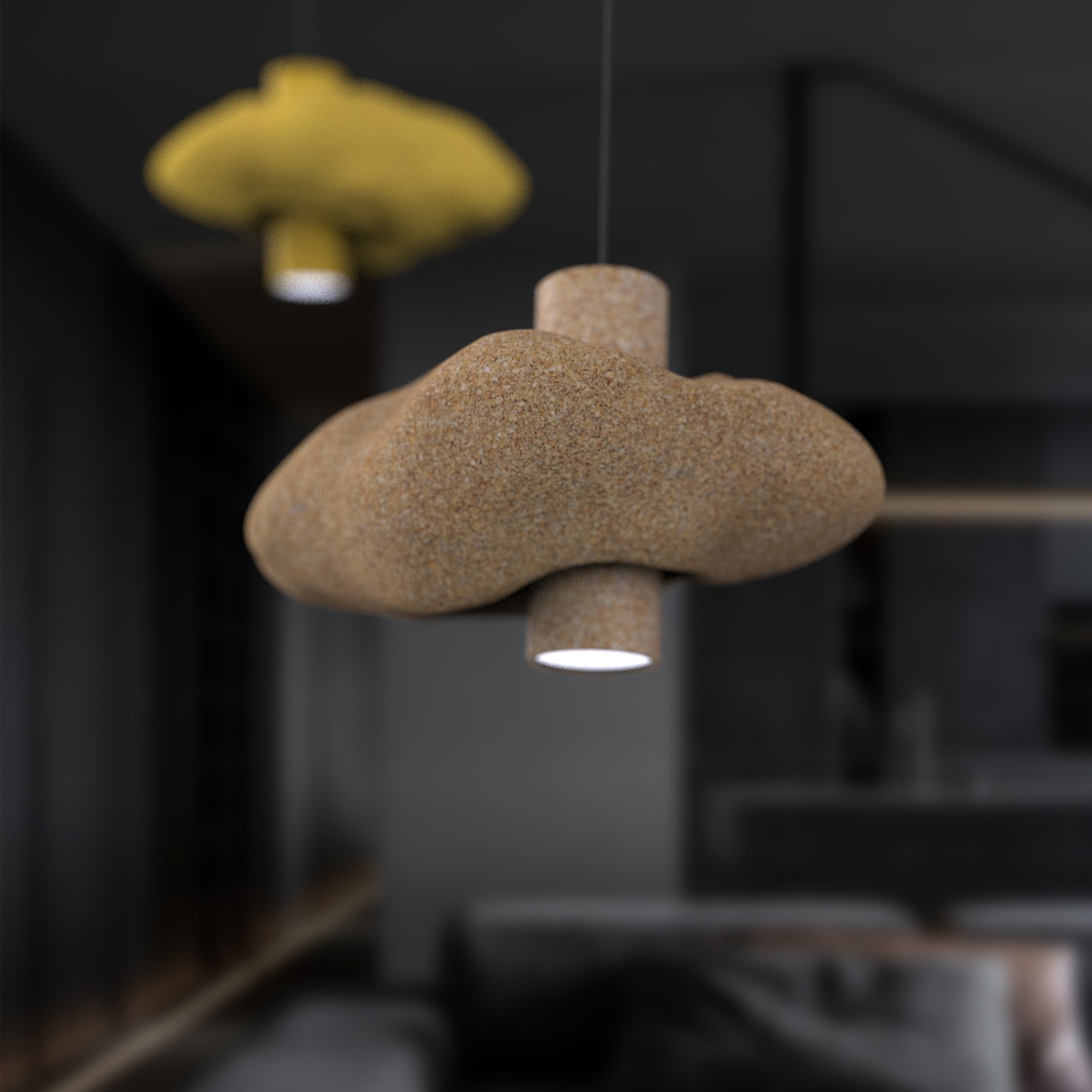 The idea of the pendant lamp comes from the well-known idiom “The sun will not stay behind the cloud”. The cylindrical lamp passes through the center of the cloud and evokes the concept with the most beautiful state in the minds of the audience. It fulfills the users’ emotions and brings a sense of hope, freshness, and vitality to the indoor environment.
