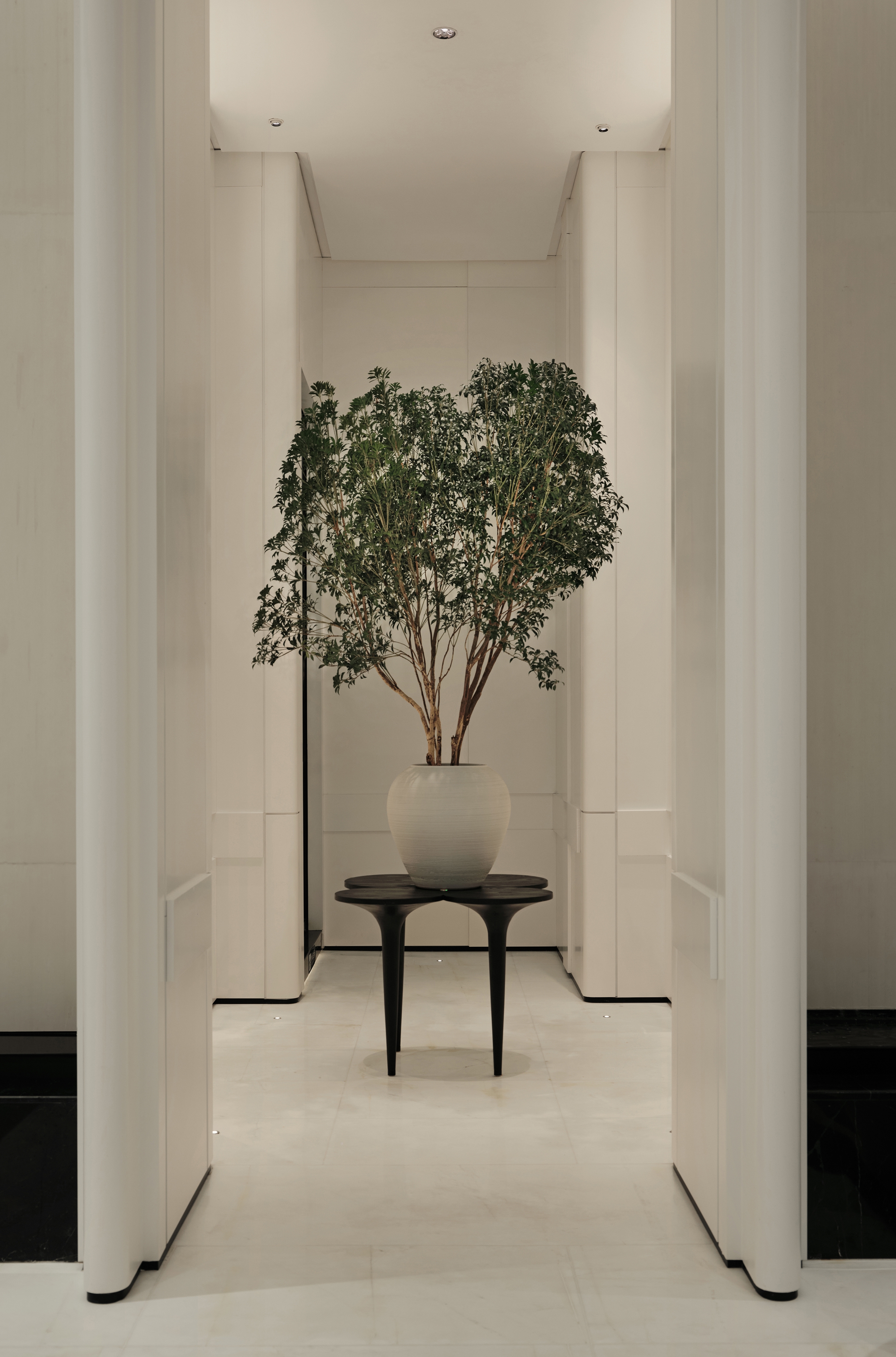 The deep corridor, from the textured walls and carving to the concavo-convex brushstrokes, reveals the designer's mastery of detail, and gives a sense of ritual as one walks slowly.