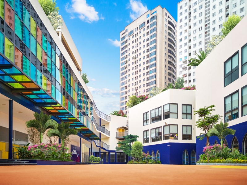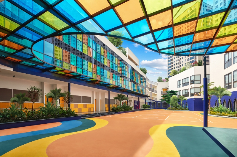 The idea is to create a breakthrough in Education, moving this project out of typical school design by having a Classroom in the Forest where students are not only gaining knowledge in classroom but also having opportunities to gain knowledge in a Forest. Teachers can take students to the rooftop garden to teach here instead of having to learn only within 4 walls of a classroom. Beside the school's link with Oxford university in the UK provides students the dream curriculum that they could have to nurture students from their early primary grade to aim for their future of attending one of the best universities in the world. The Architecture from there has taken inspiration from Oxford colleges' architecture to integrate into the school spaces and forms.