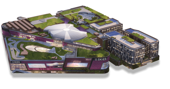 11 SKIES is set to become Hong Kong’s largest hub for retail, dining and entertainment (RDE) once complete. As part of the mixed-use offering, the scheme integrates three grade A office towers operated under K11 ATELIER. The workplace is the first within an RDE destination to combine office space for Greater Bay Area enterprises, including wealth management and wellness services.