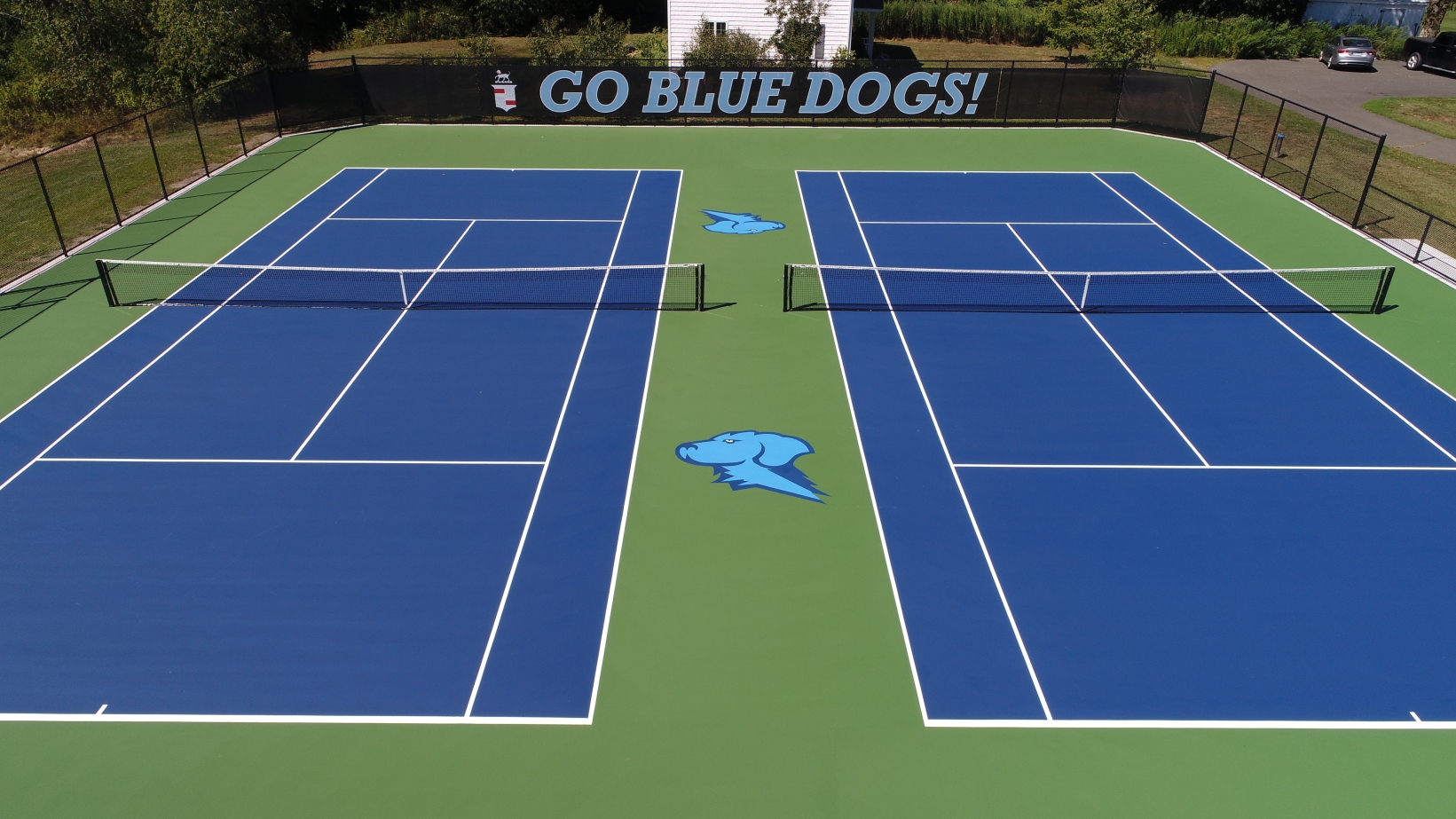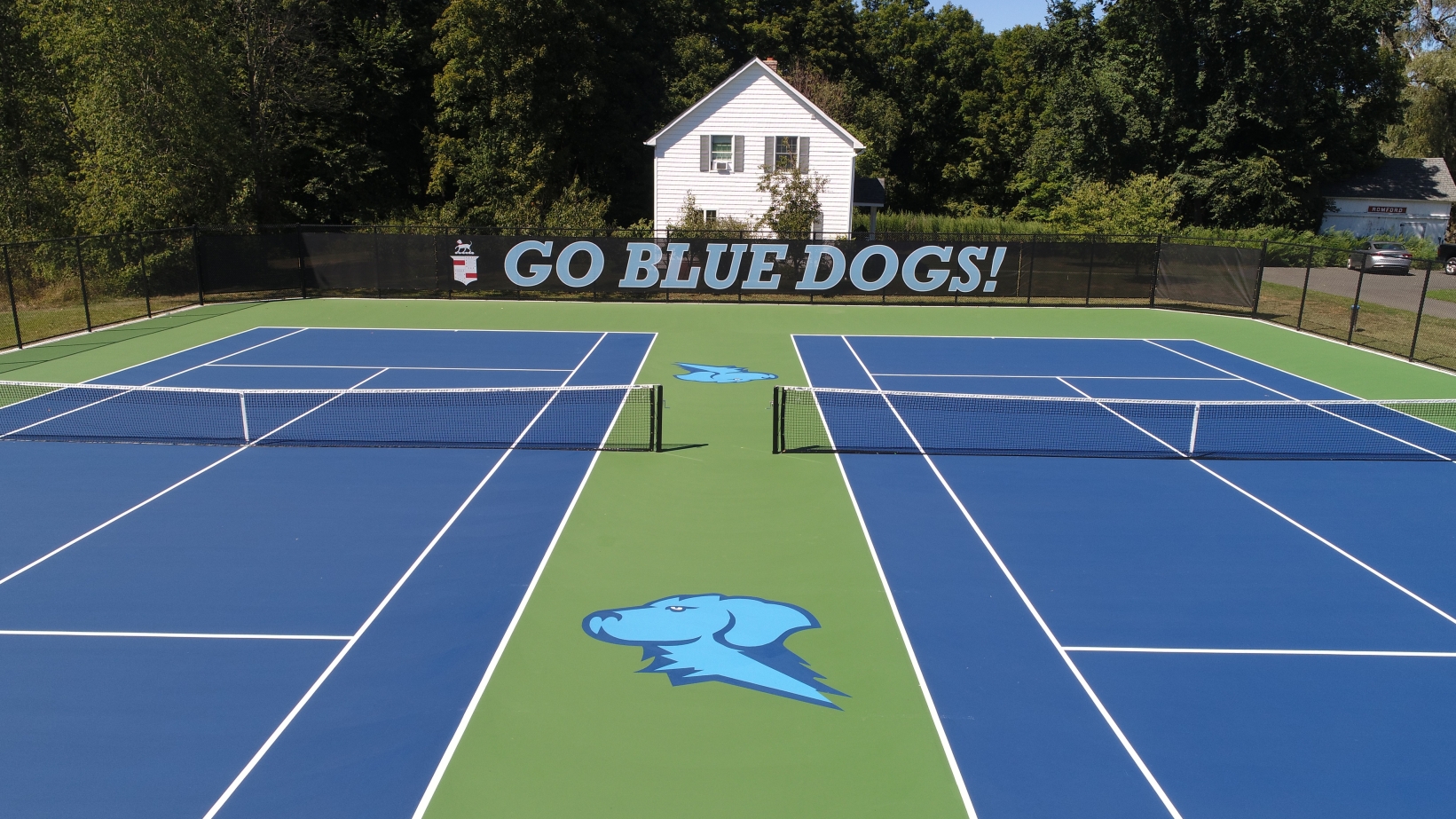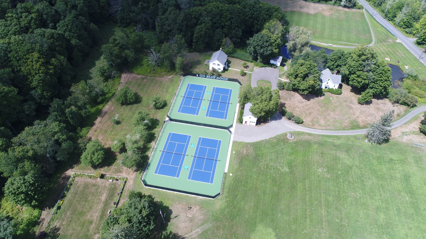 The project consisted of the design and reconstruction of a new tennis facility at Rumsey Hall School in Washington Depot, CT. A pre-k to grade 9 private junior boarding school that originally had three (3) tennis courts constructed with asphalt that was aged and failing. The redesign consisted of the expansion from three (3) to four (4) state-of-the-art, post tension concrete tennis courts. Custom windscreens with printed logos and hand painted court logos installed on the specialty sports surface. The new tennis court facility has been transformed and is now one of the best in New England.