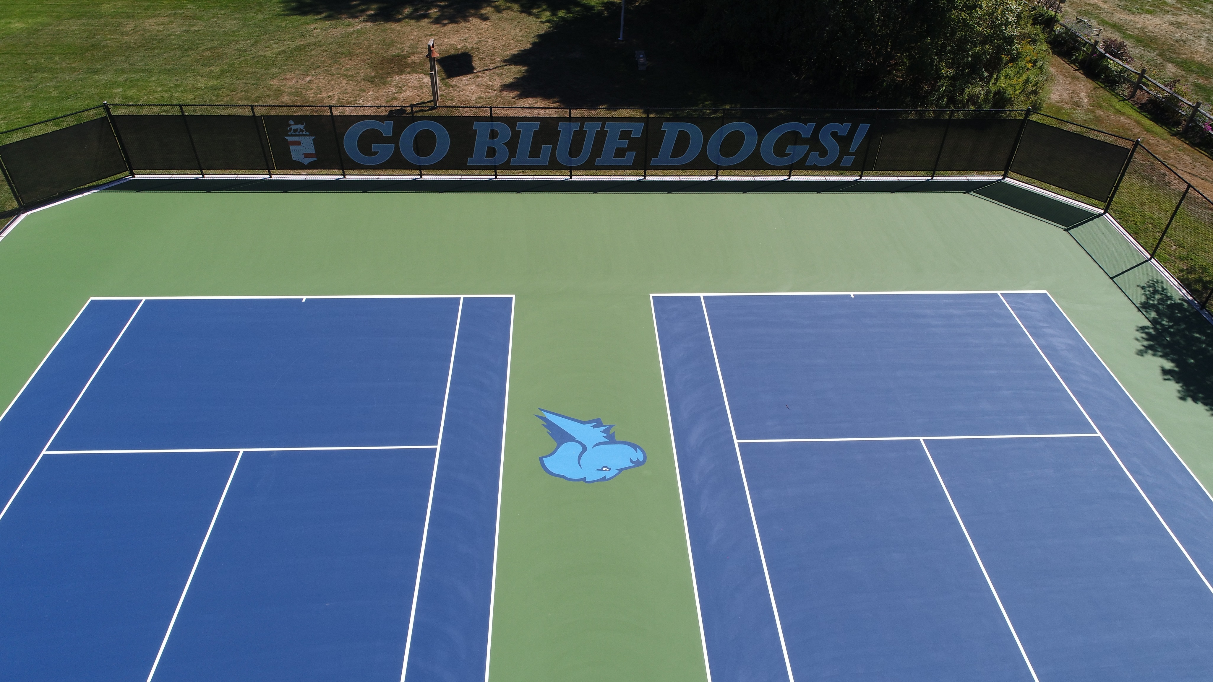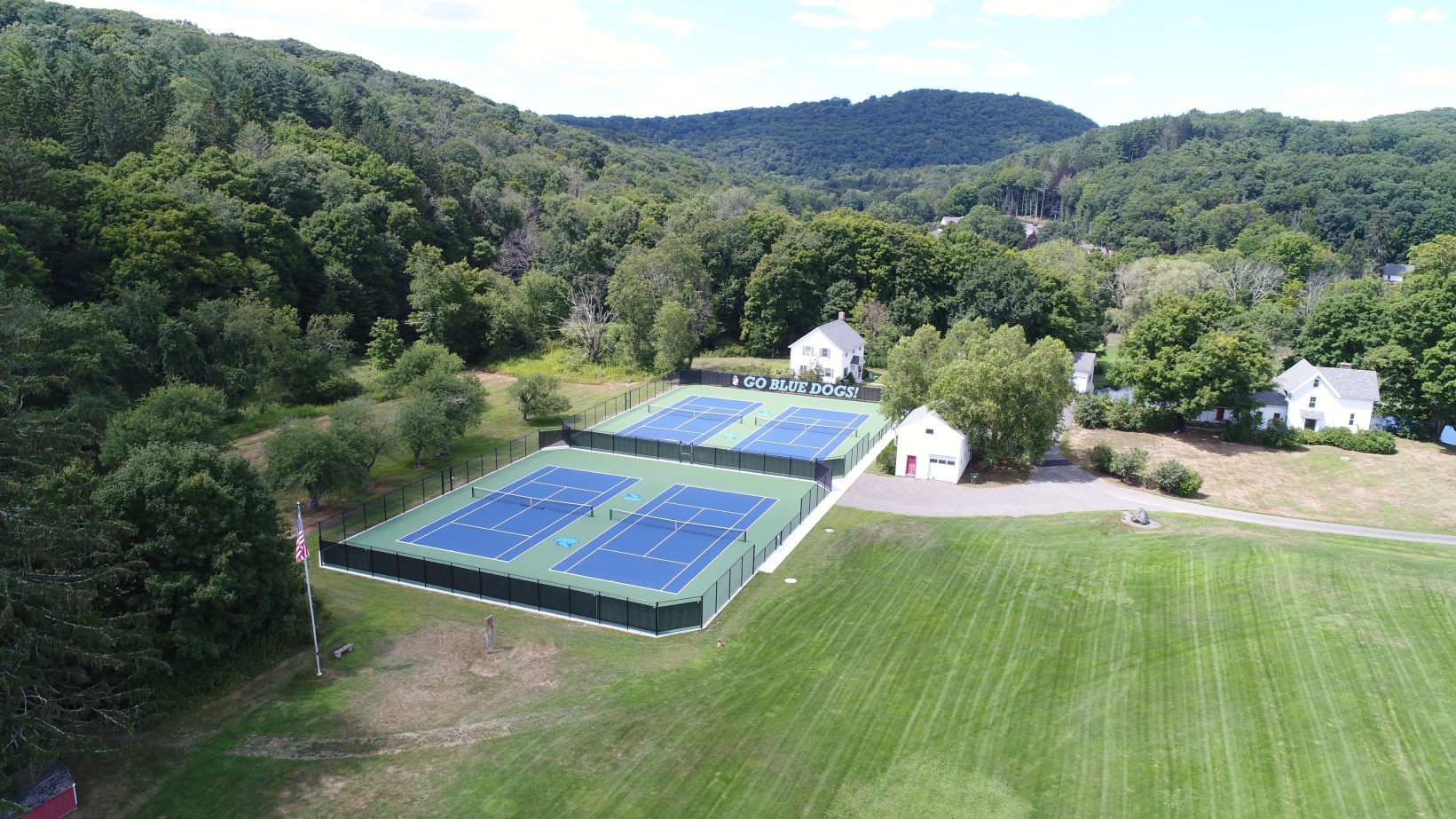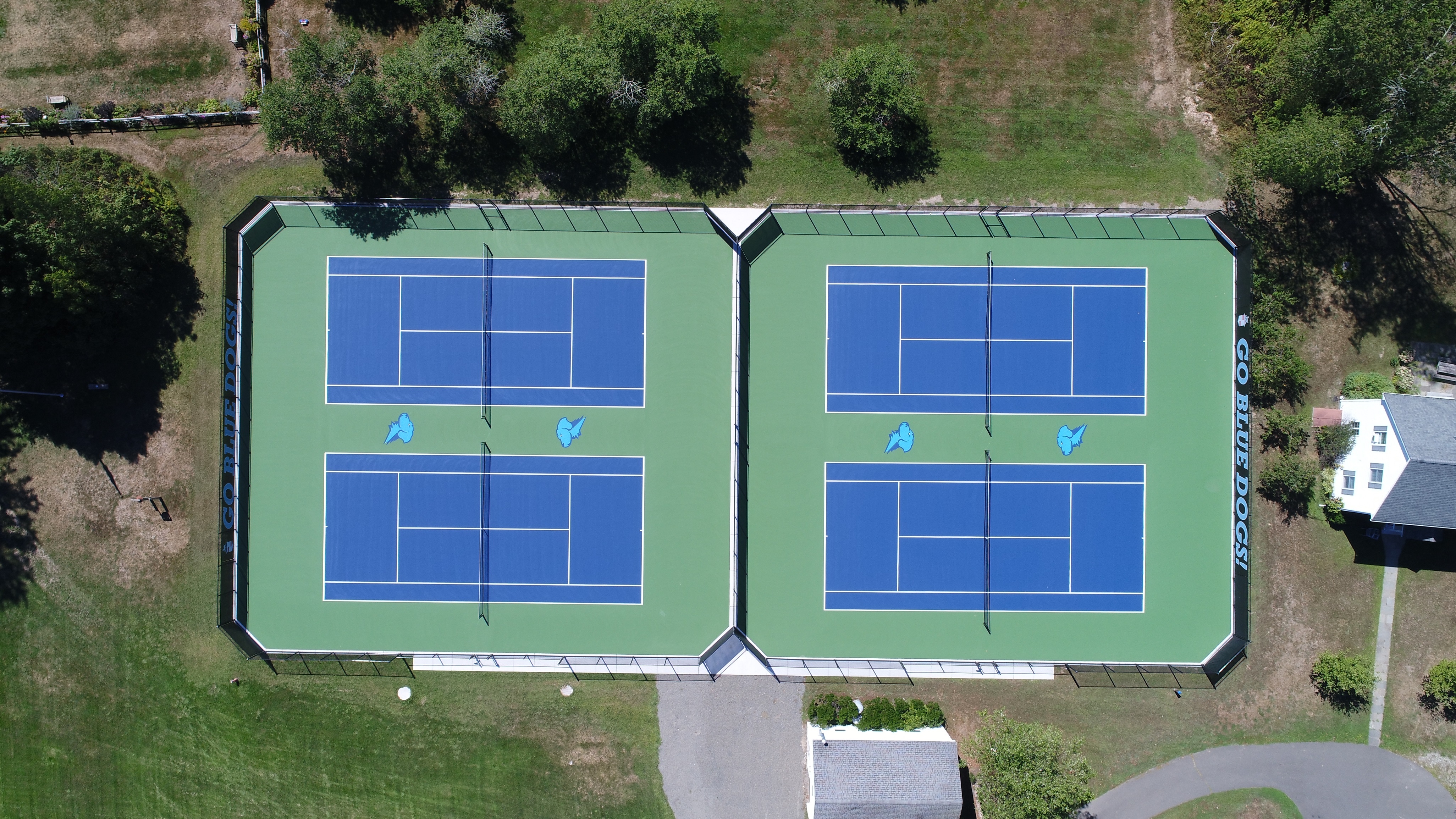 The project consisted of the design and reconstruction of a new tennis facility at Rumsey Hall School in Washington Depot, CT. A pre-k to grade 9 private junior boarding school that originally had three (3) tennis courts constructed with asphalt that was aged and failing. The redesign consisted of the expansion from three (3) to four (4) state-of-the-art, post tension concrete tennis courts. Custom windscreens with printed logos and hand painted court logos installed on the specialty sports surface. The new tennis court facility has been transformed and is now one of the best in New England.
