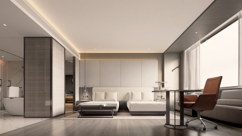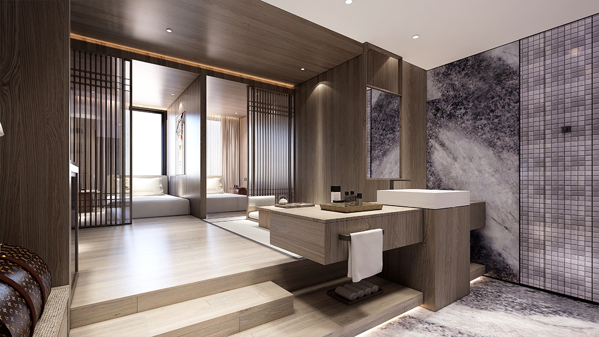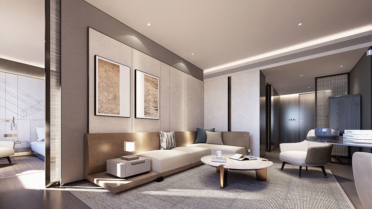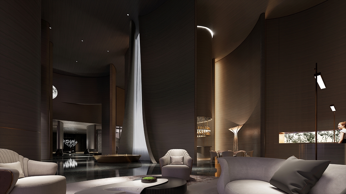 The design selects elements related to nature, tends to be quiet and harmonious.A bright moon seems to rise slowly over the sea, creating a gorgeous and poetic atmosphere in Chinese culture, which just fits the tonality of the coastal location where the project is located. Away from the bustling urban life, you can indulge in the the same moonlight moment here.The dancing arc shape drives the spirit dynamic of the whole space.