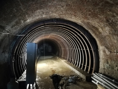 The new gallery was created from the foundations of an old anti-aircraft tunnel repurposed in 1943 from an old ditch, as documented by maps of the time. The "Furnace Shelter," once a point of shelter from a tragic reality, is now "Digital Shelter," a place of rebirth where technology meets art, creating a contemporary space where creativity can be explored through the current language of technology.