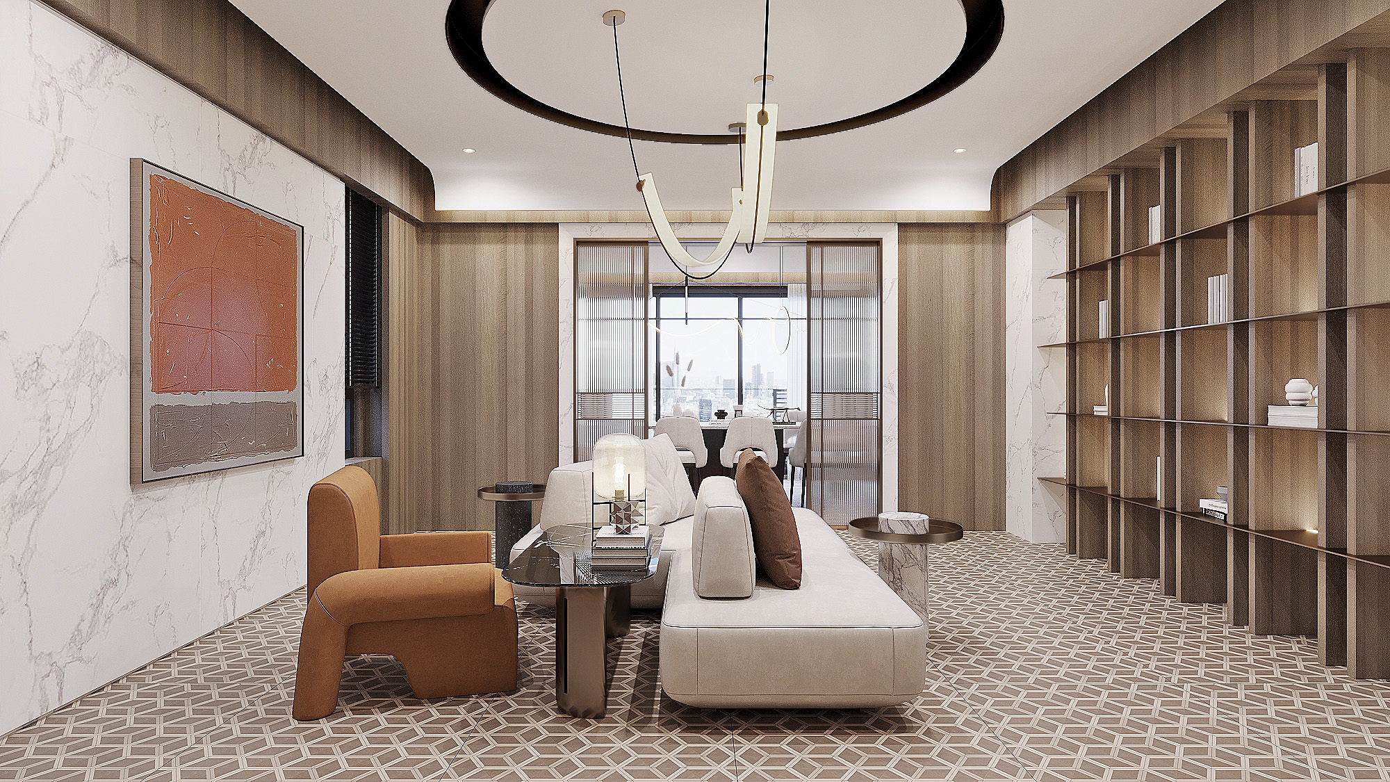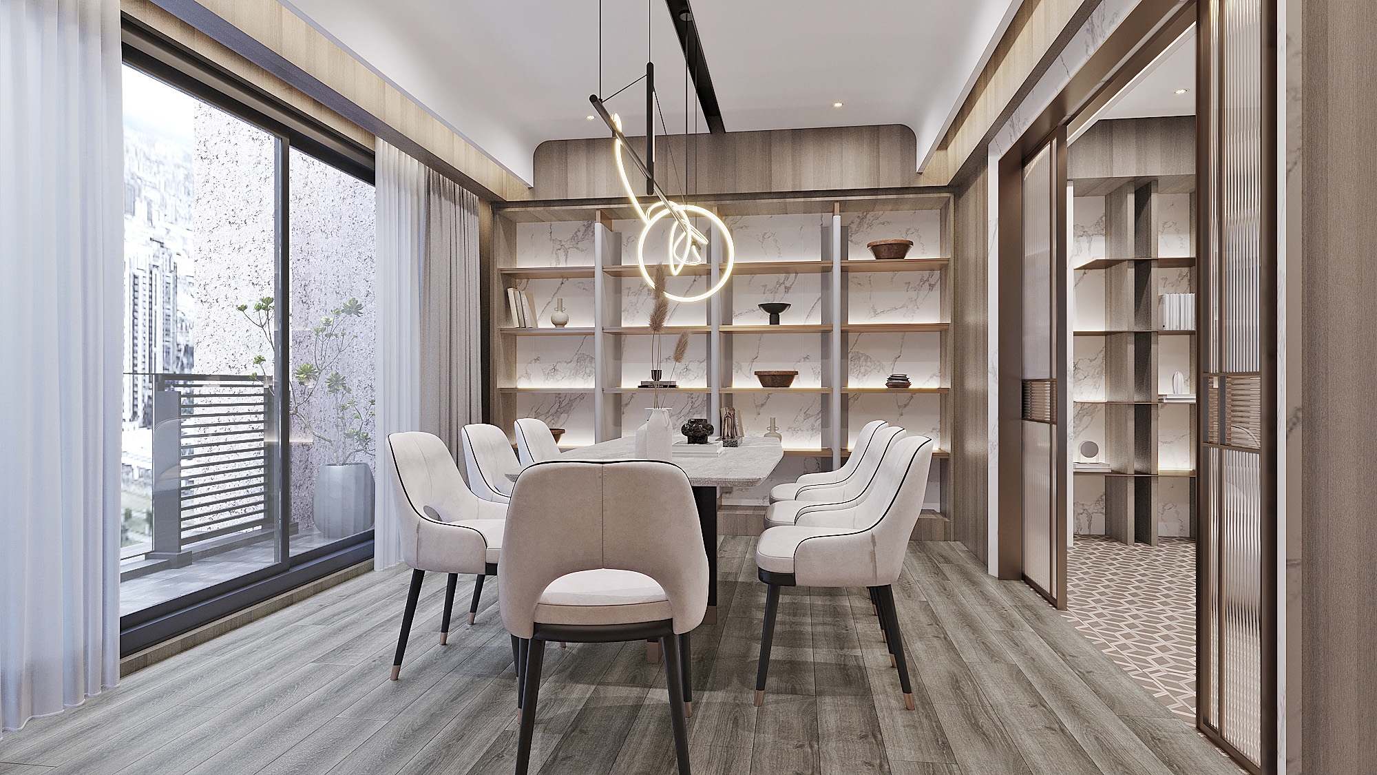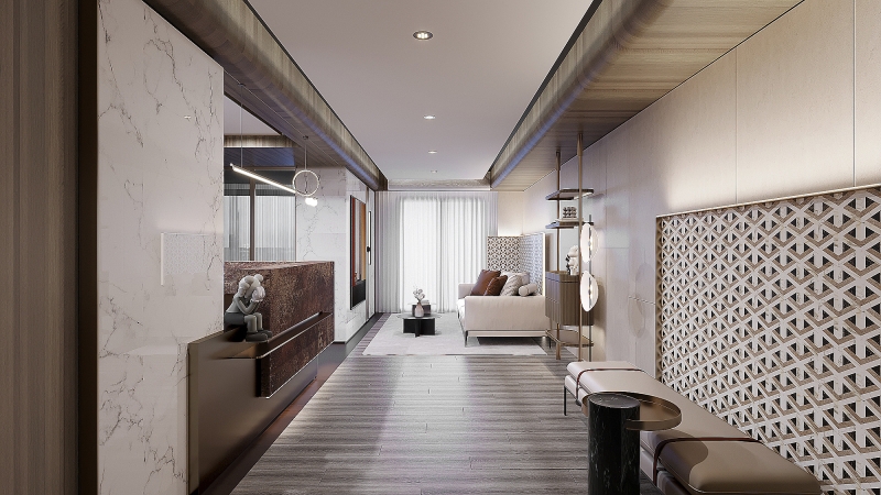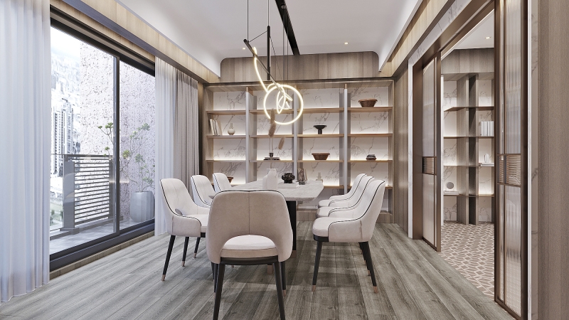 This is an interior design project for the common area of an apartment building property. The area= includes the lobby, the parking spaces, the reception area on the third floor, as well as the entertainment and meeting room on the fourth floor. Since the areas mentioned above are those essential places that residents must go through day by day, the design team has resourcefully set earthy colors as the main color scheme of the space and combined it with natural elements to produce a warm, generous and comfortable living ambiance. In short, the common area is attractive, stress-releasing, and enjoyable.