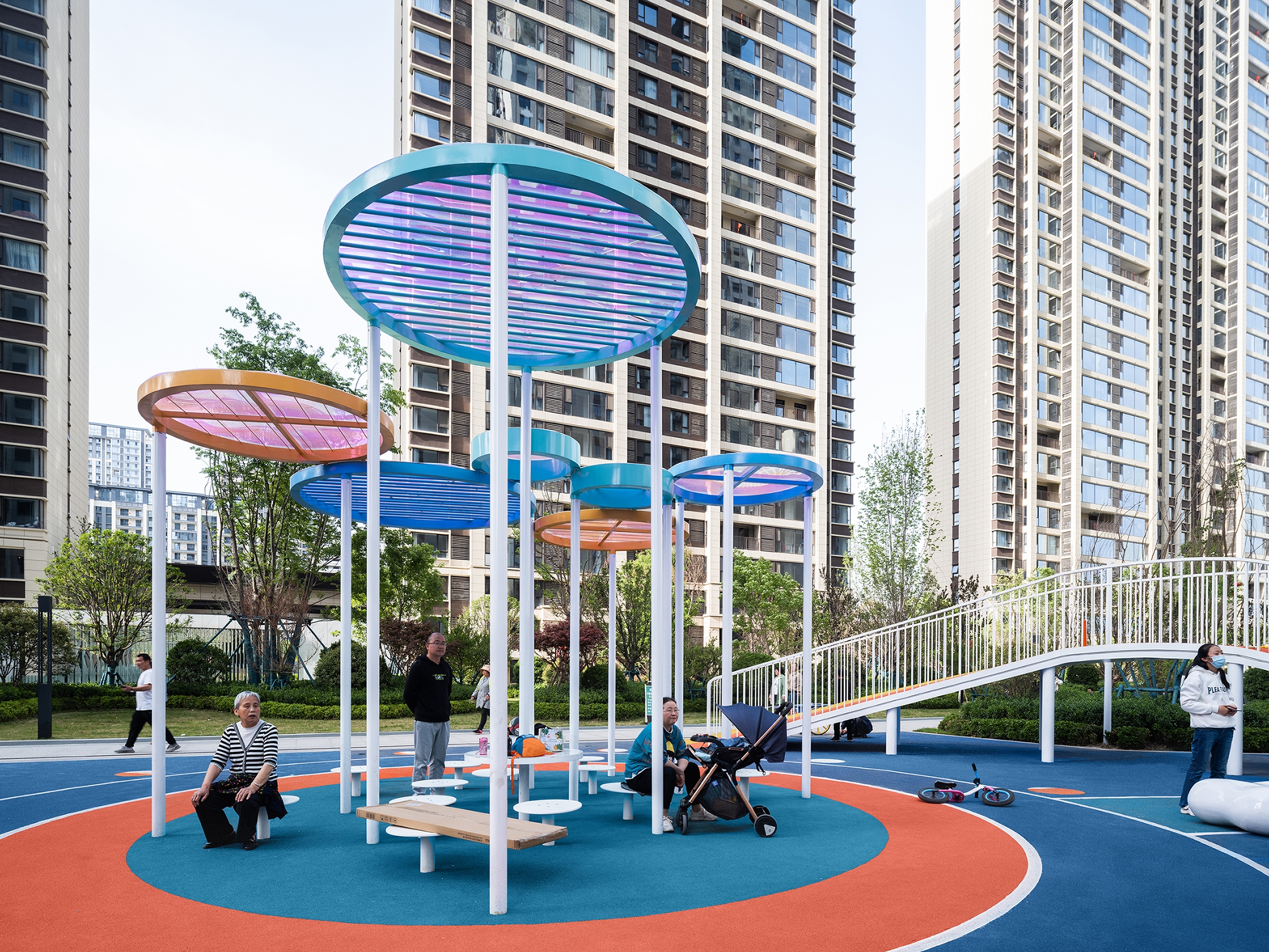 To create a kid-friendly and all-age harmonious community, the designers conducted a detailed analysis of the neighborhood’s activity status, finding that the elderly and children are the groups who stay the longest and use public areas the most frequently. Thus, kids’ play and seniors’ leisure have become the top priority of design.