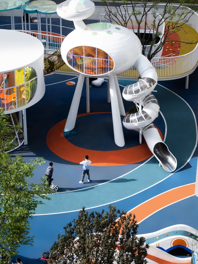 With the idea of “interstellar travel and dream-seeking”, the designers brought star trails, the Milky Way, planets, and space stations to life, bringing an intergalactic journey for children to explore the world.