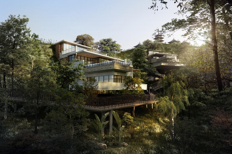 The cliff hotel is located at the foot of Modou Mountain in Jianchuan County, Yunnan. It adheres to the concept of "integrating four states" by combining traditional culture with modern design. The hotel incorporates elements of Bai ethnic architecture as its foundation, while providing modern facilities and a comfortable accommodation environment. The overall design of the hotel respects the environment and harmoniously coexists with nature, allowing guests to enjoy the magnificent mountains and natural landscapes surrounding it. The choice of building materials is influenced by local culture, with a simple and rustic exterior and clean and concise lines that emphasize the beauty of natural materials.