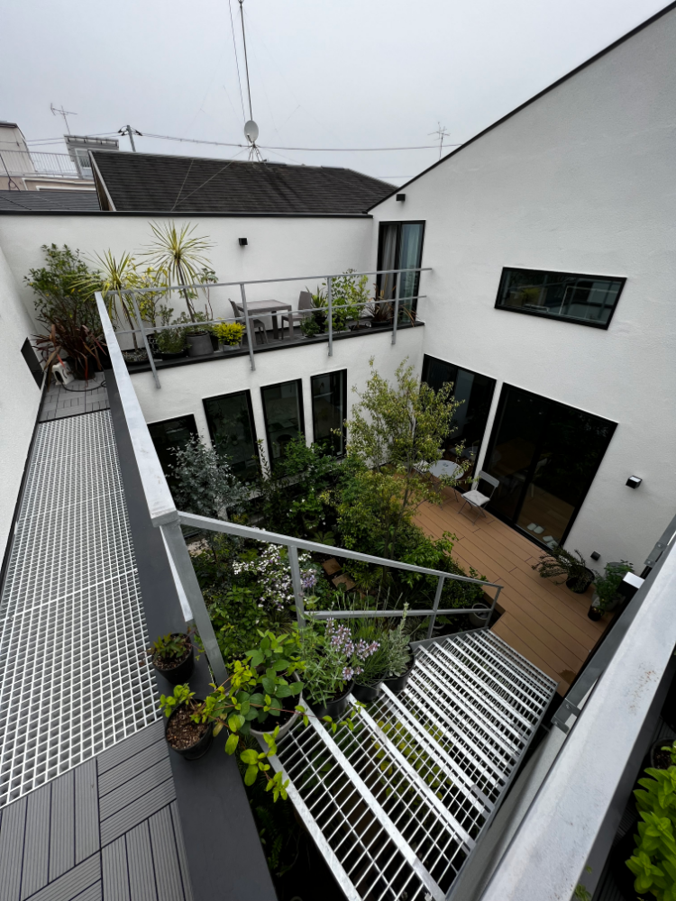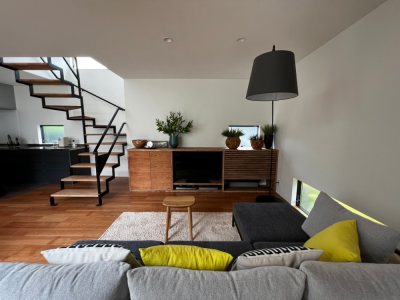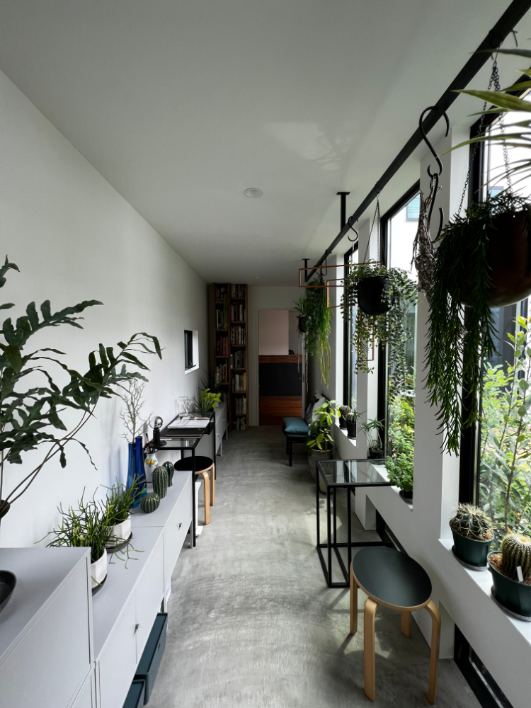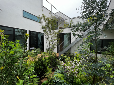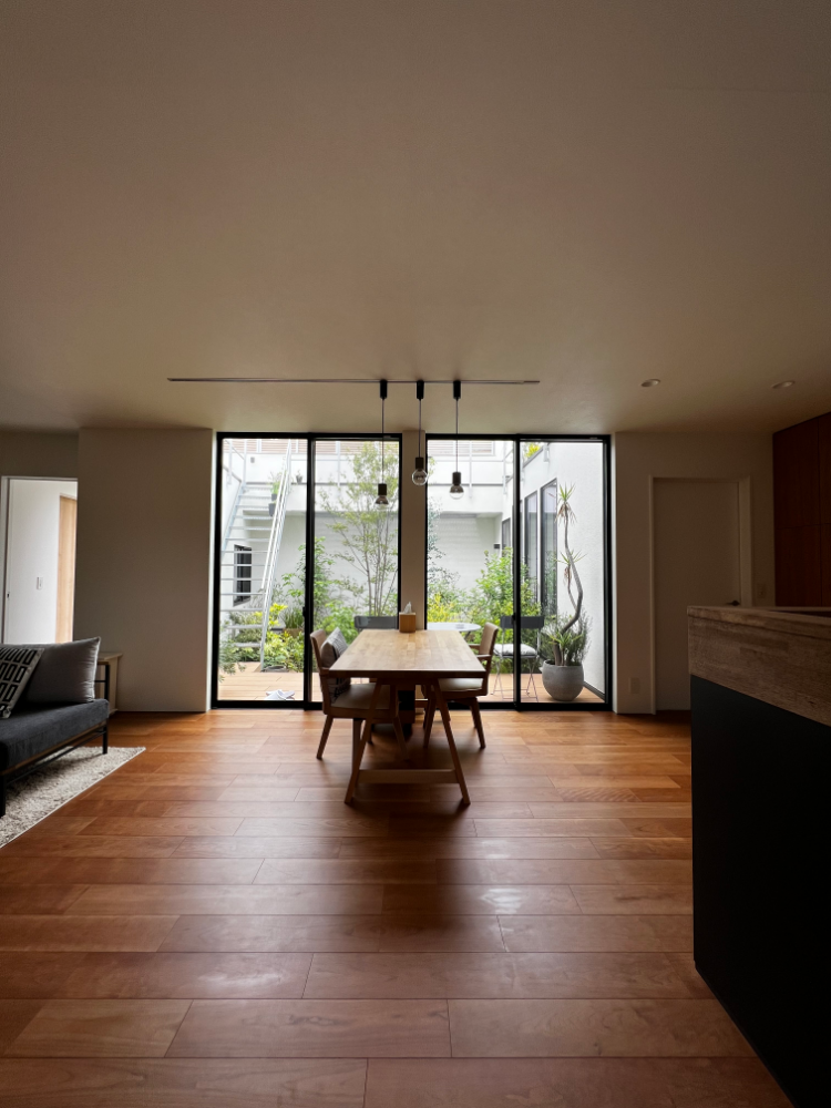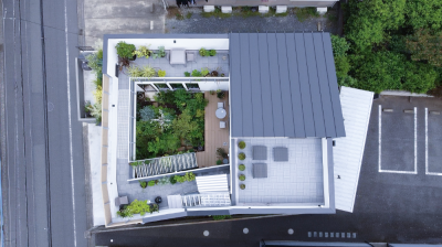 This house was planned for a mother in her 80s and her daughter along a back road that connects the town.The traffic on the road in front of the house is relatively heavy, and the client was required to create a space that would contain the noise and privacy of the house.In addition, the client, a professional gardener, expressed her greatest need to live surrounded by "greenery" on a daily basis.A courtyard designed to enhance privacy would inevitably create a sense of enclosure.The concept adopted for this project was a mortar-shaped courtyard.By creating a courtyard in the shape of a mortar, greenery is layered, creating a space that looks like a confined forest.Furthermore, the layers of greenery unconsciously lead the eye to the sky, further enhancing the sense of openness.The moment one steps into the entranceway, a seamless connection between the inside and the outside continues forever.A rich life surrounded by greenery that changes throughout the four seasons has been created.