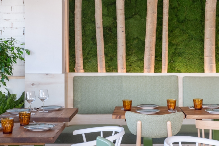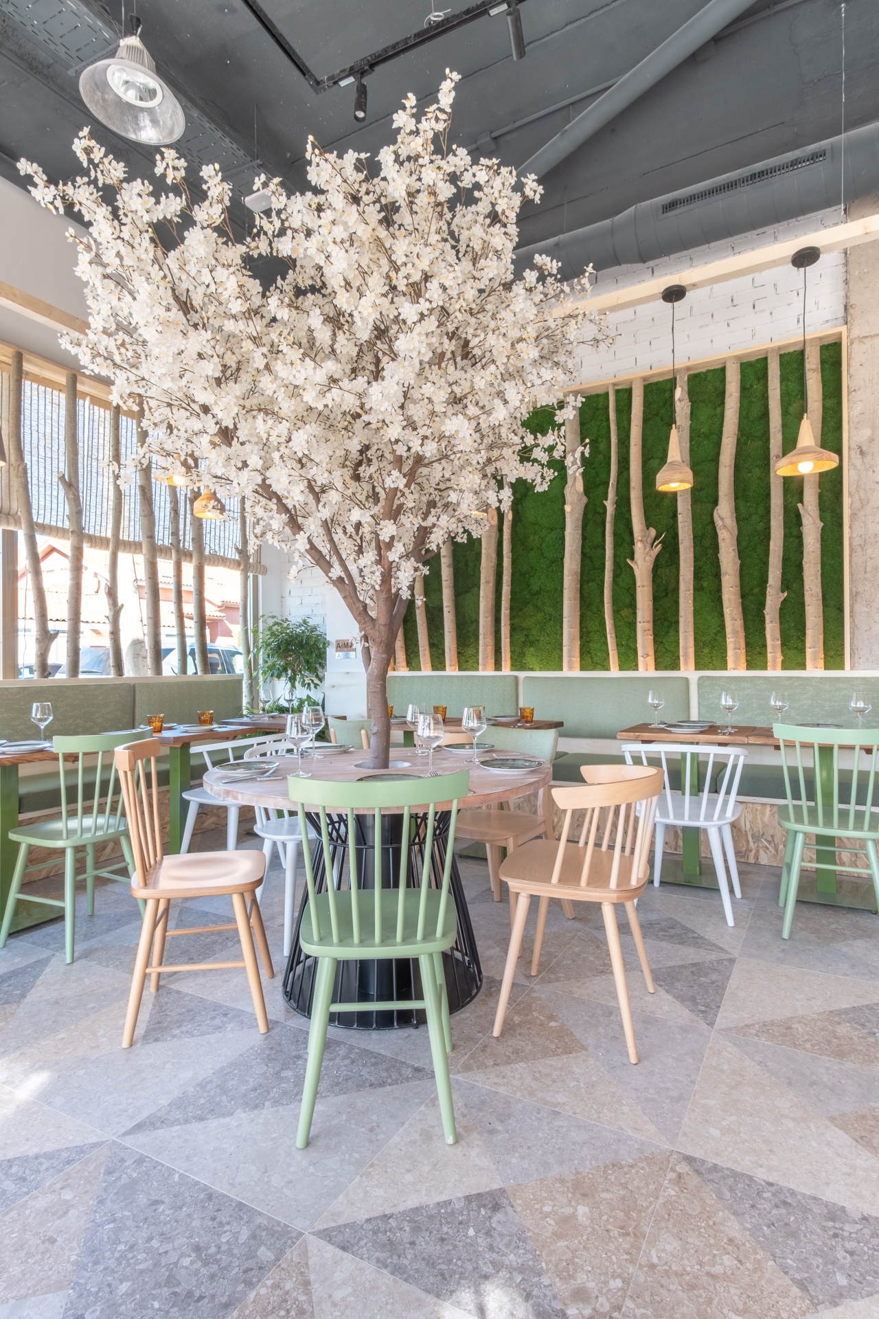 With this design, we seek to create the sensation of walking through a forest path. Eat in the shelter of trees and nature.