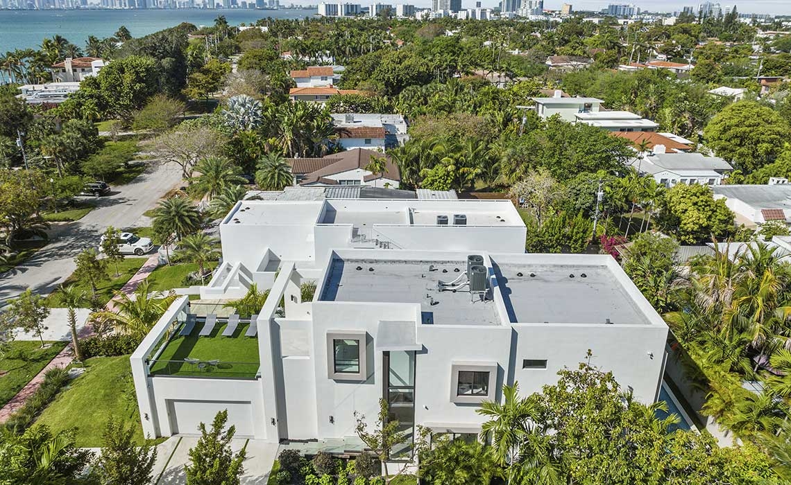 Shadowbox is a new 2 residence located in Miami Beach, Florida. The new 3,600 SF 2 story home is located on a narrow and deep lot close to the waters’ edge. The ground floor features a side entrance 2 car garage with an oversized roof terrace facing the bay on top.
