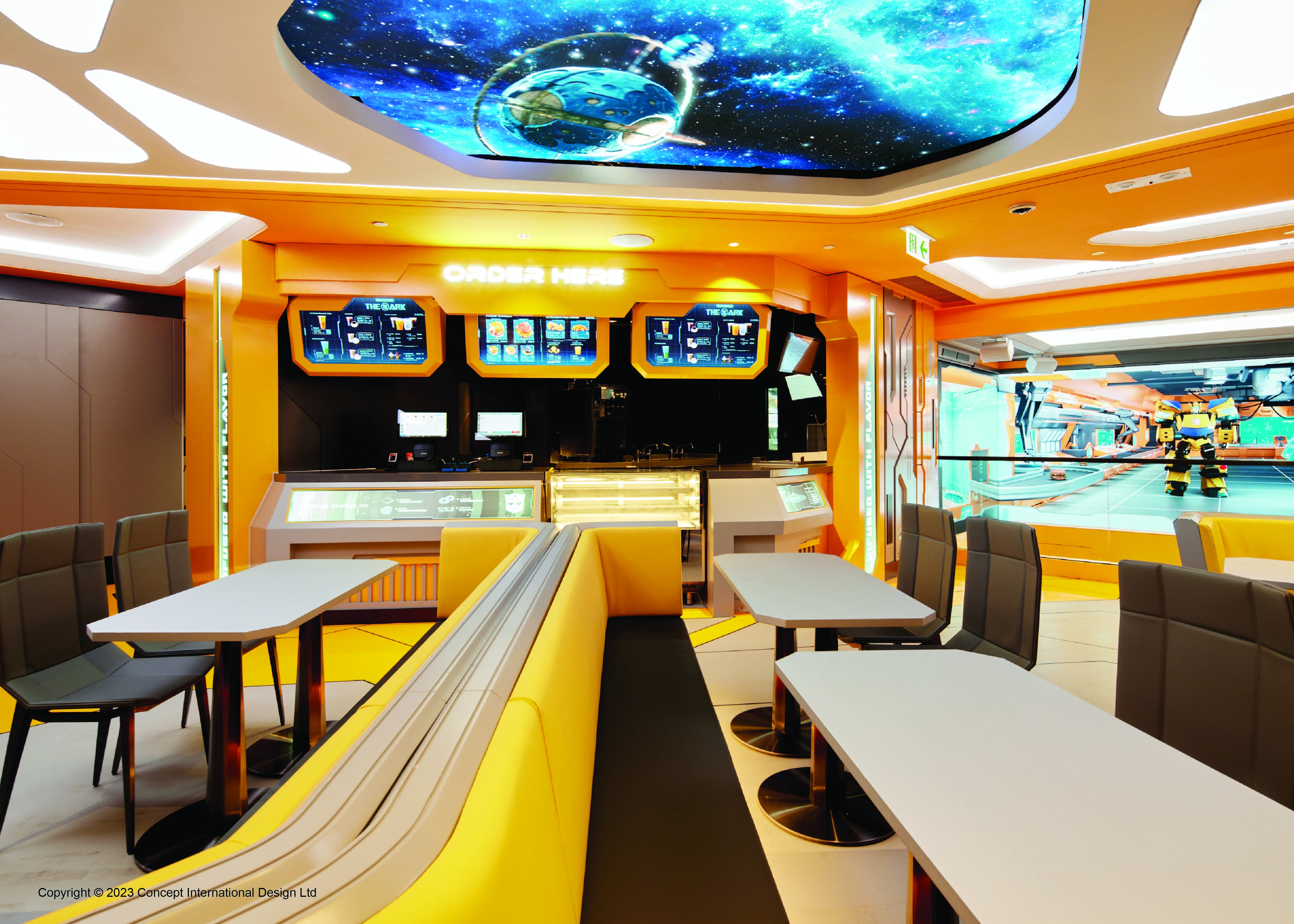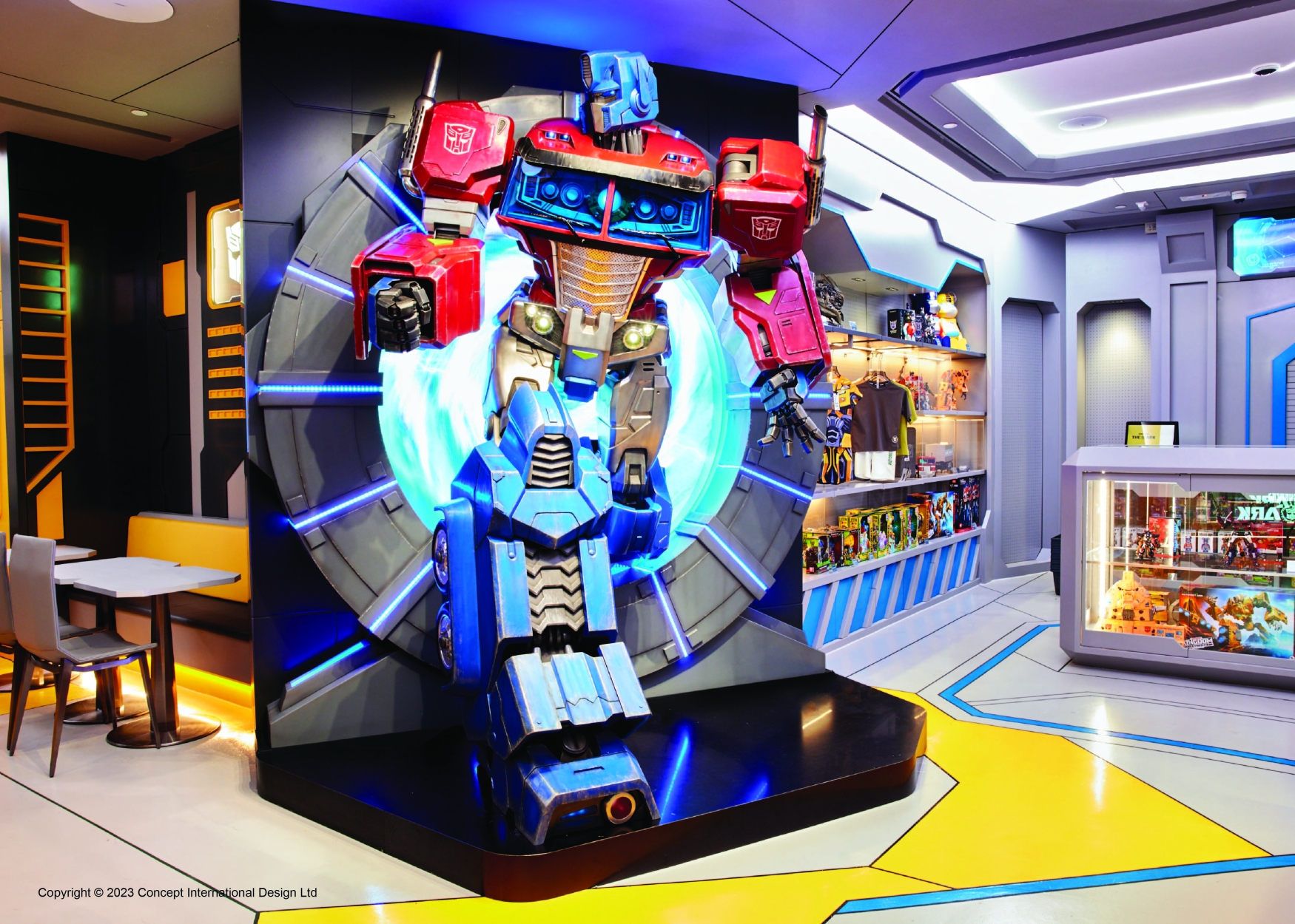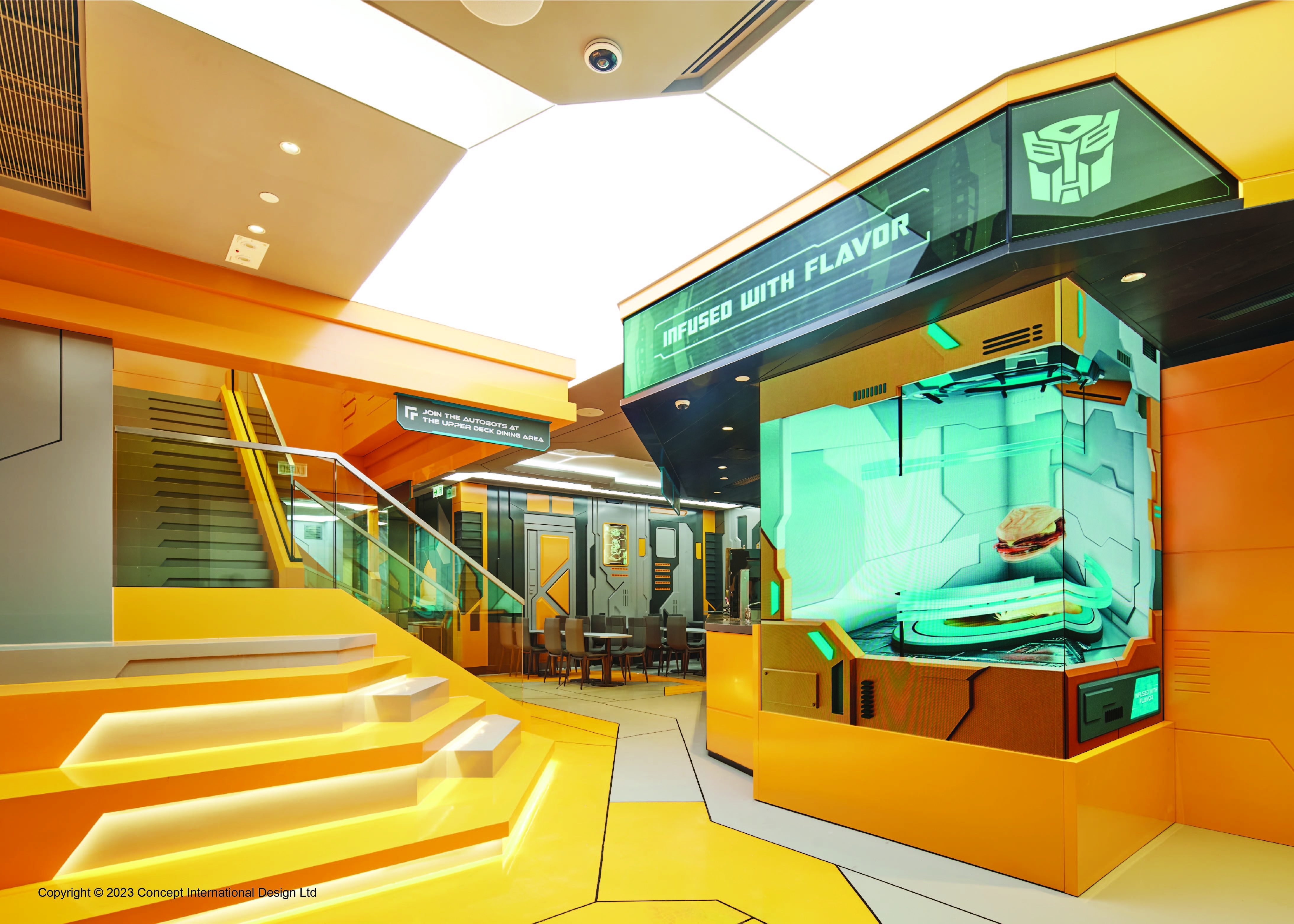 The Ark is the world’s first Transformers-themed restaurant, created by A La Carte Hong Kong Limited under license from Hasbro. Developing into an immersive dining experience that combines Technology, Food, and Fun for families – the 555 sqm restaurant spans two floors, accommodates up to 200 diners, and features an exciting audio-visual storyline that seamlessly integrates the restaurant’s facade, interior, and branding themes.