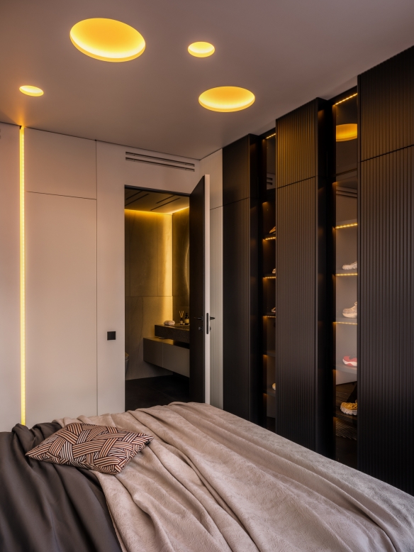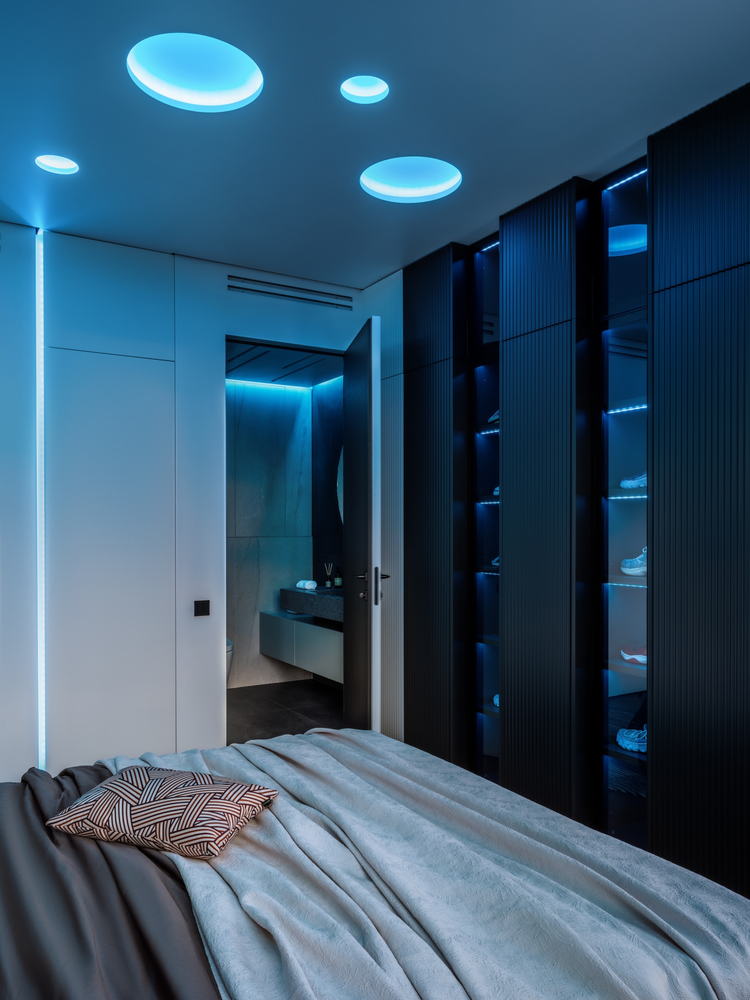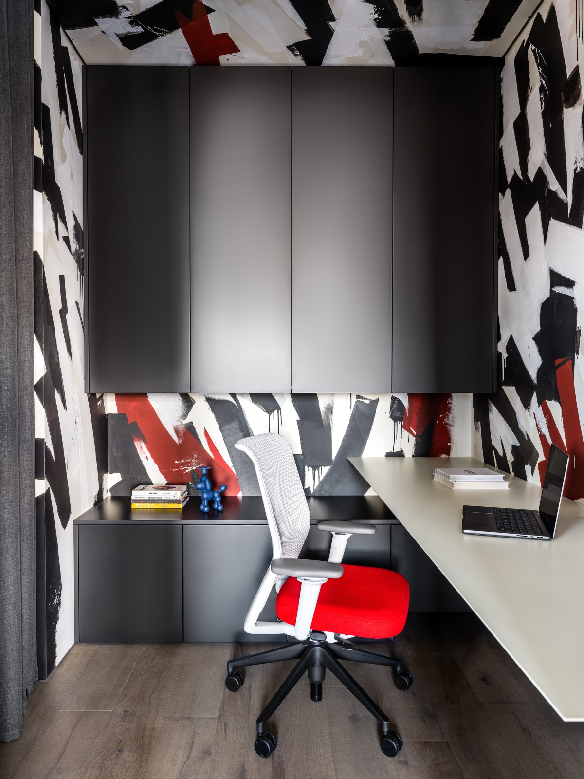 We designed this interior for a young man who is keen on modern culture and music. It was important to create a personalized interior for a homeowner where the art objects would perfectly fit in, as well as to find a place for a home office because the client plans to shoot videos on his Youtube channel.