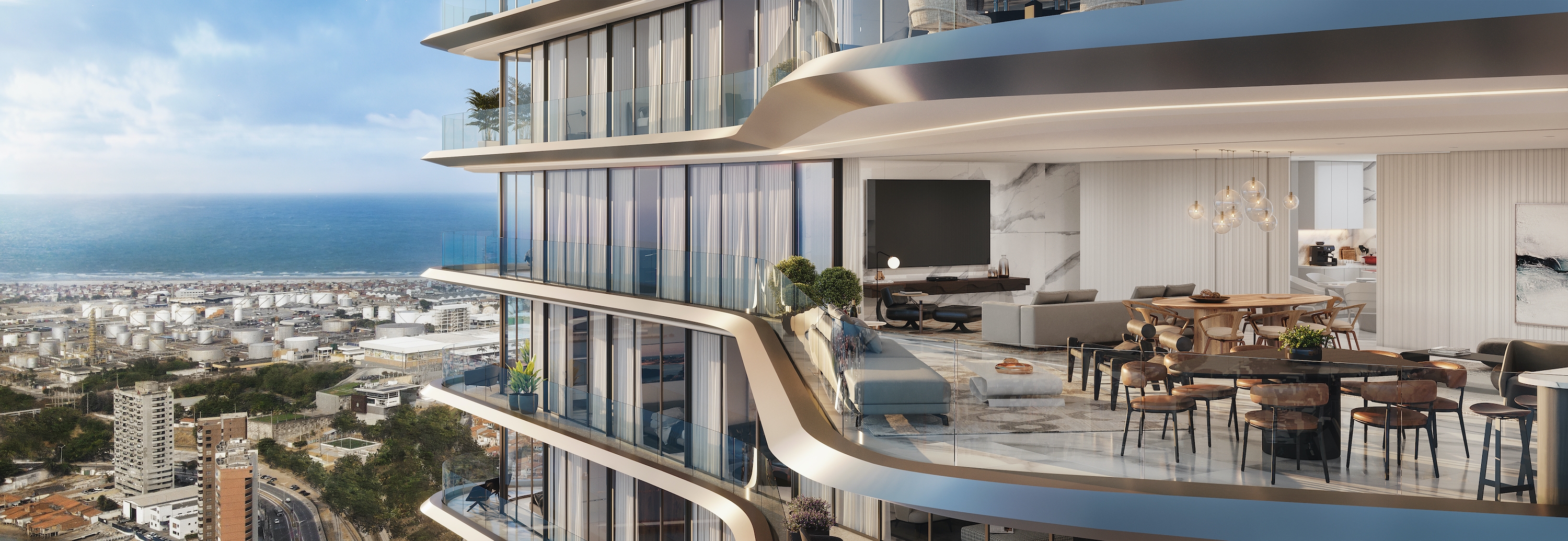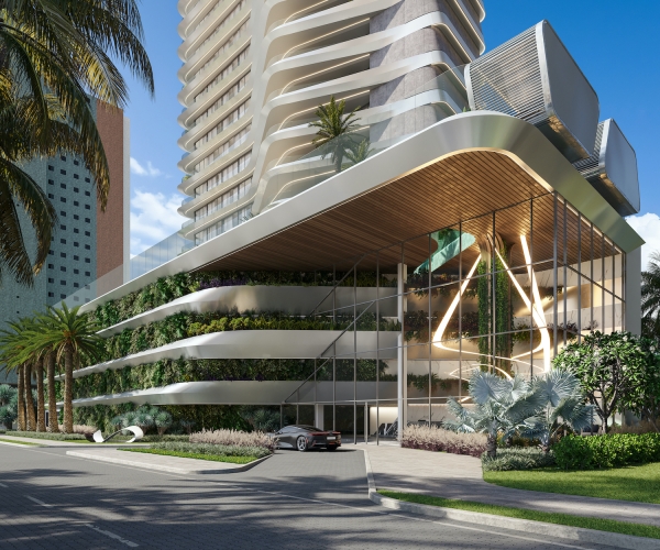 The concept behind Diagonal by Pininfarina was designed to support Fortaleza’s urban afforestation and regeneration efforts while prioritizing resident well-being through a connection to nature, wellness-enhancing materials, and a focus on integrated living with the local environment. Designed with the resident's well-being in mind, each apartment unit is filled with natural light and the building incorporates an abundance of luxury wellness amenities. The 47 units are defined by floor-to-ceiling windows and large terraces that offer unobstructed views of the ocean and surrounding community. Diagonal will incorporate a living green façade, tapering upward from the base of the tower to create a rainforest-like oasis at the heart of Fortaleza's urban fabric. Pininfarina custom designed the lobby to be enveloped in glass and serve as a welcoming point from the busy street to a relaxing home. The lobby can also be transformed into a gallery, made to encourage engagement between residents and neighbors. Diagonal by Pininfarina is slated to start construction in September 2023 and is estimated to be completed in September 2028.
