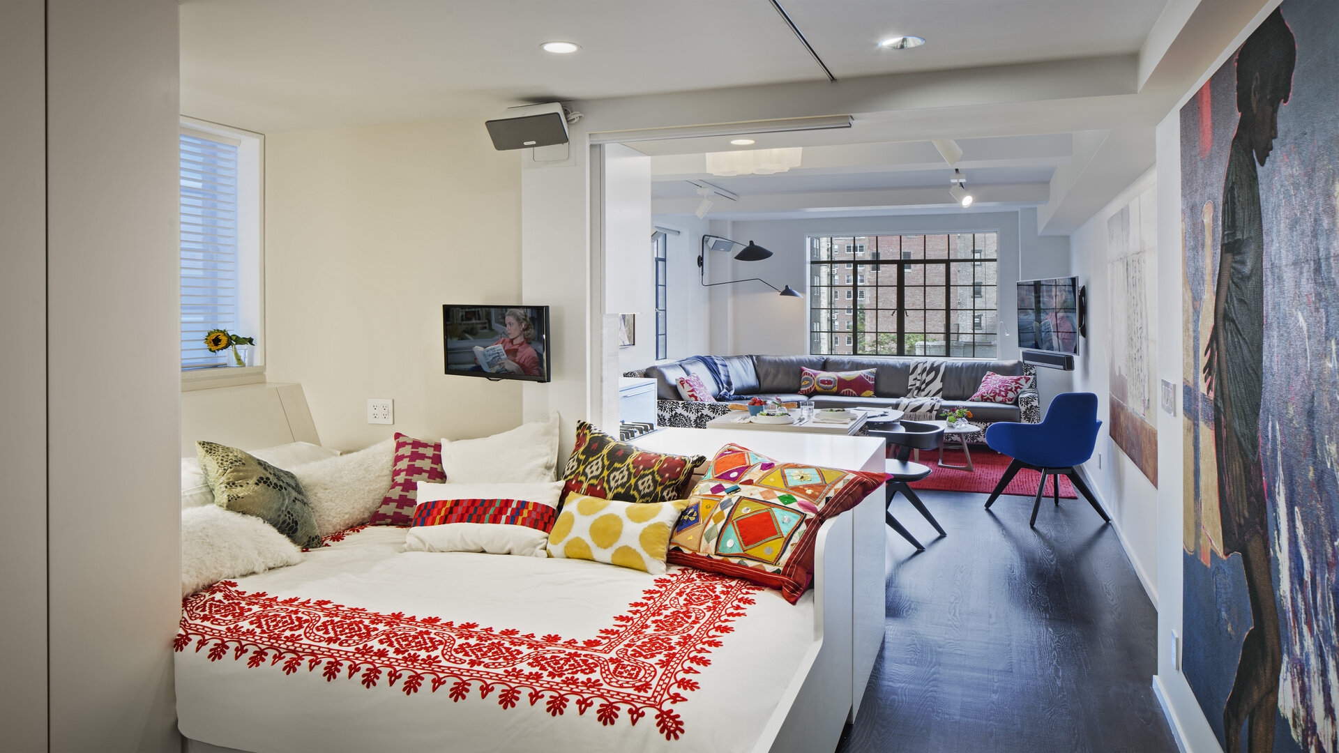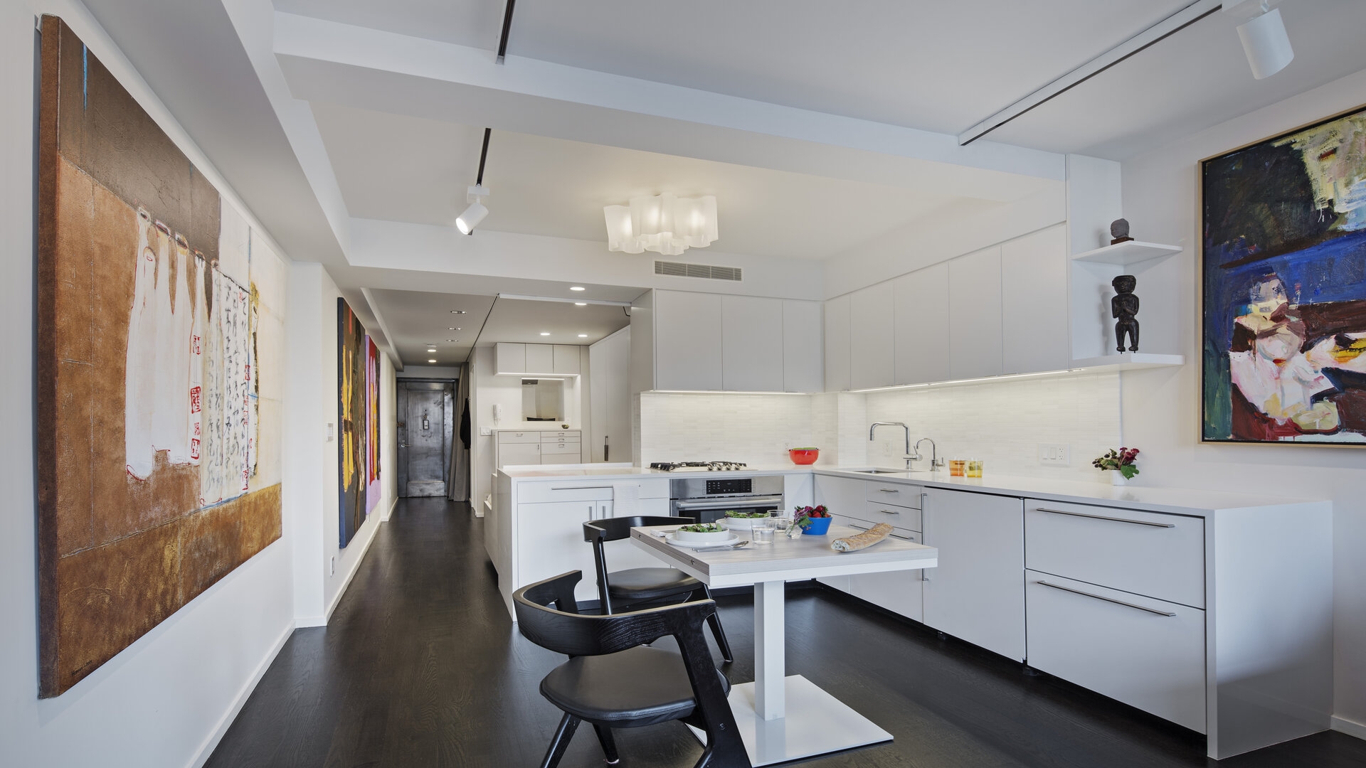 THE CLIENT: A chic bi-coastal businesswoman with a passion for art sought a Manhattan pied-à-terre. She craved a space that exuded comfort, felt like home, and allowed for seamless entertaining during her frequent visits to the city.