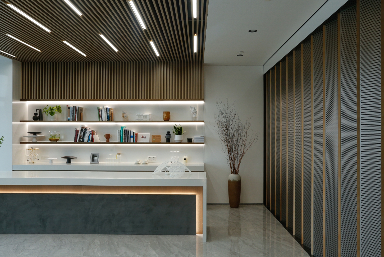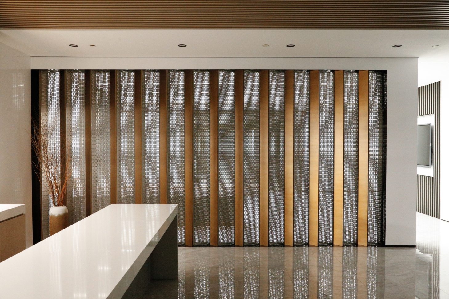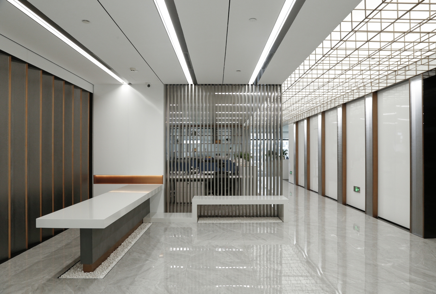 Located in Zhongjian Square, Pudong New Area, Shanghai?the whole project of CSCEC8B (SH) Design Institute Office covers an area of 1400 square meters. The unique office space is designed by a Chinese local architectural design firm, whose design team draws inspirations from ancient Chinese buildings and gardens by extracting the four elements of “hall”, “screen”, “corridor” and “frame”, and, with modern materials, translating them into a space filled with light and vitality.The design covers four main functional areas, including the main lobby, meeting room, lounge area and office area. In terms of hue, the design chooses white and brown as the main color of the space to shape a clean and bright atmosphere.
