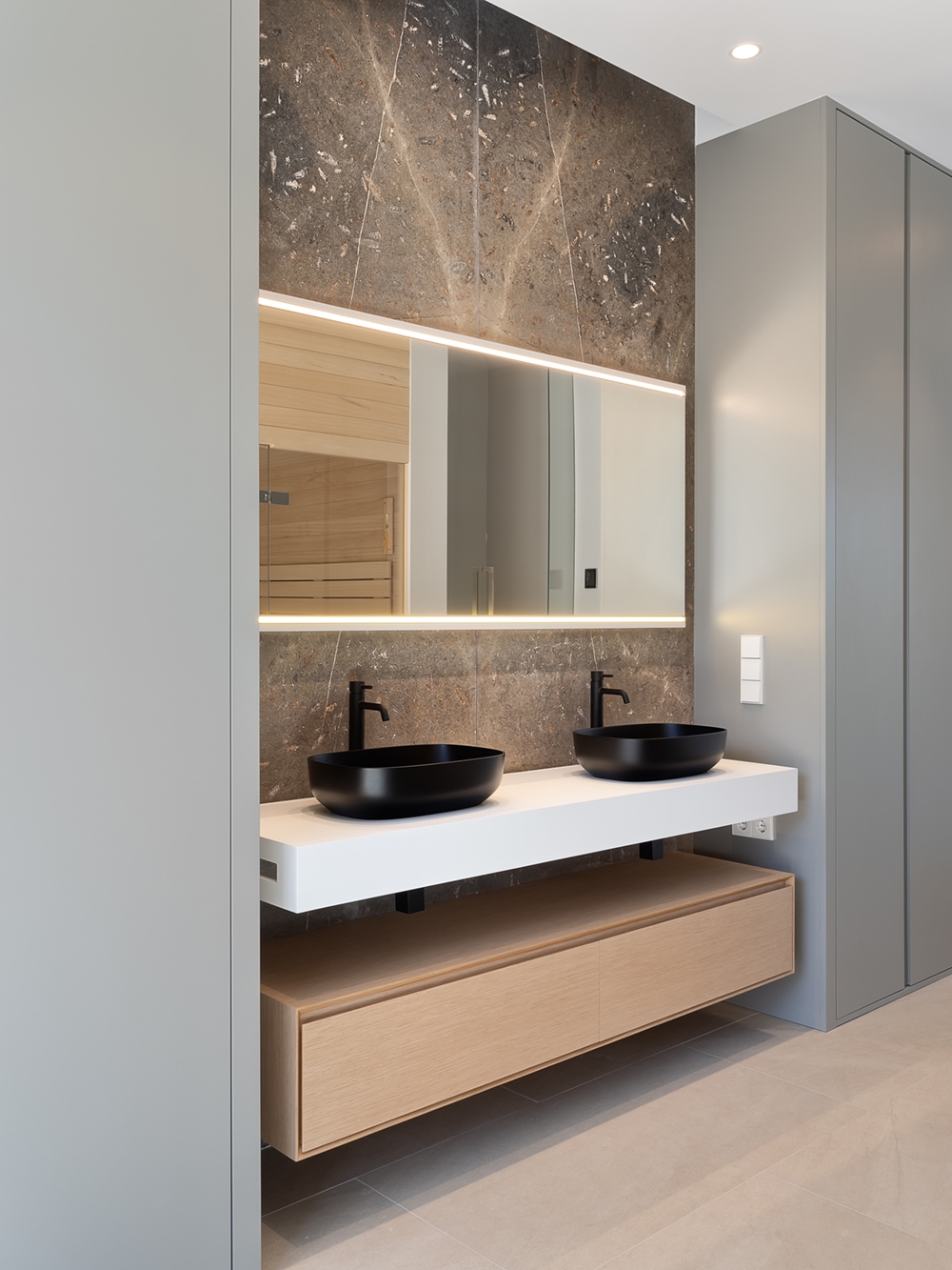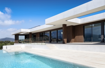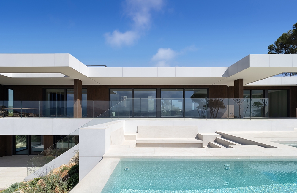 We took care of the entire project of this modular house that blends in perfectly with its surroundings. A large garden with different levels, a swimming pool with solarium and 'firepool' and views of the Mediterranean and the mountains. On the roof, the solar panels are integrated, being completely invisible from the outside.