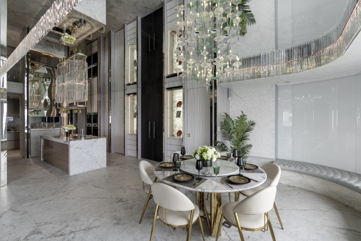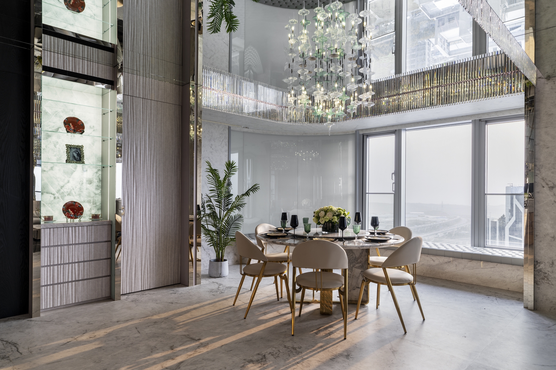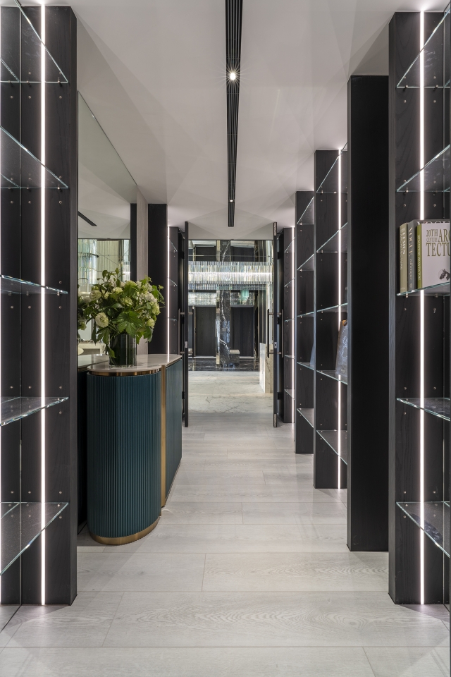 This case takes Baccarat crystal as the theme image, makes the crystal building materials artistic, and extends through the entire interior space. Combined with the design of mirror ceiling and full spectrum light source, it breaks through the physical limitation of space quadrant and creates twice the visual height, making the hall area interleave between the stylish and luxurious virtual and real large objects, and the color rendering of stereoscopic light is also in line with the true presentation of naked color.