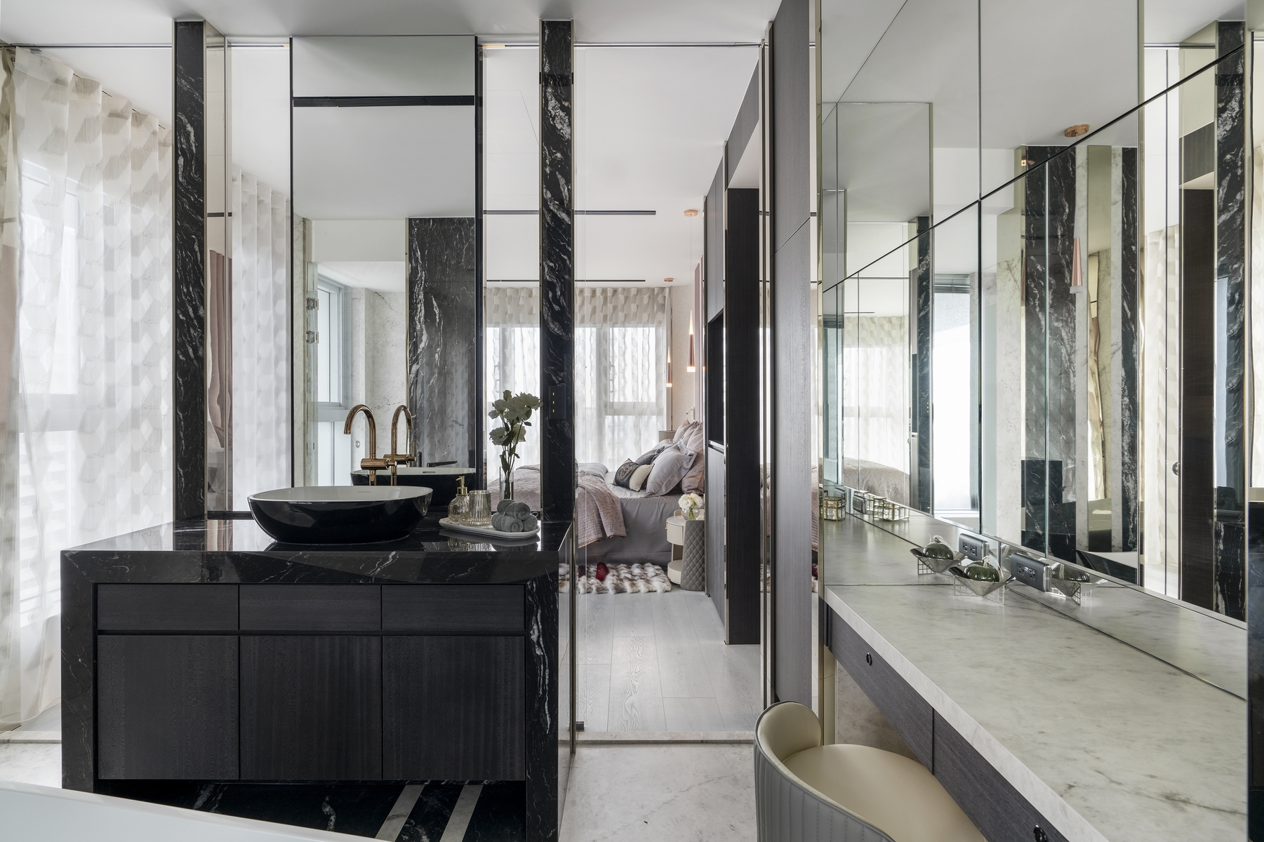 In addition, the overlap and symmetry of pattern and axis are applied to give smooth and comfortable moving lines, and the narrow and long bedroom passage is transformed into a transition between clothes like a fashionable stretch table, which also conforms to the daily life habits of users.
