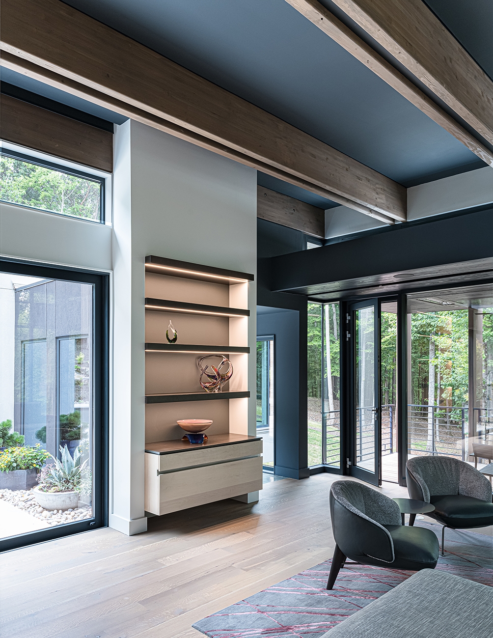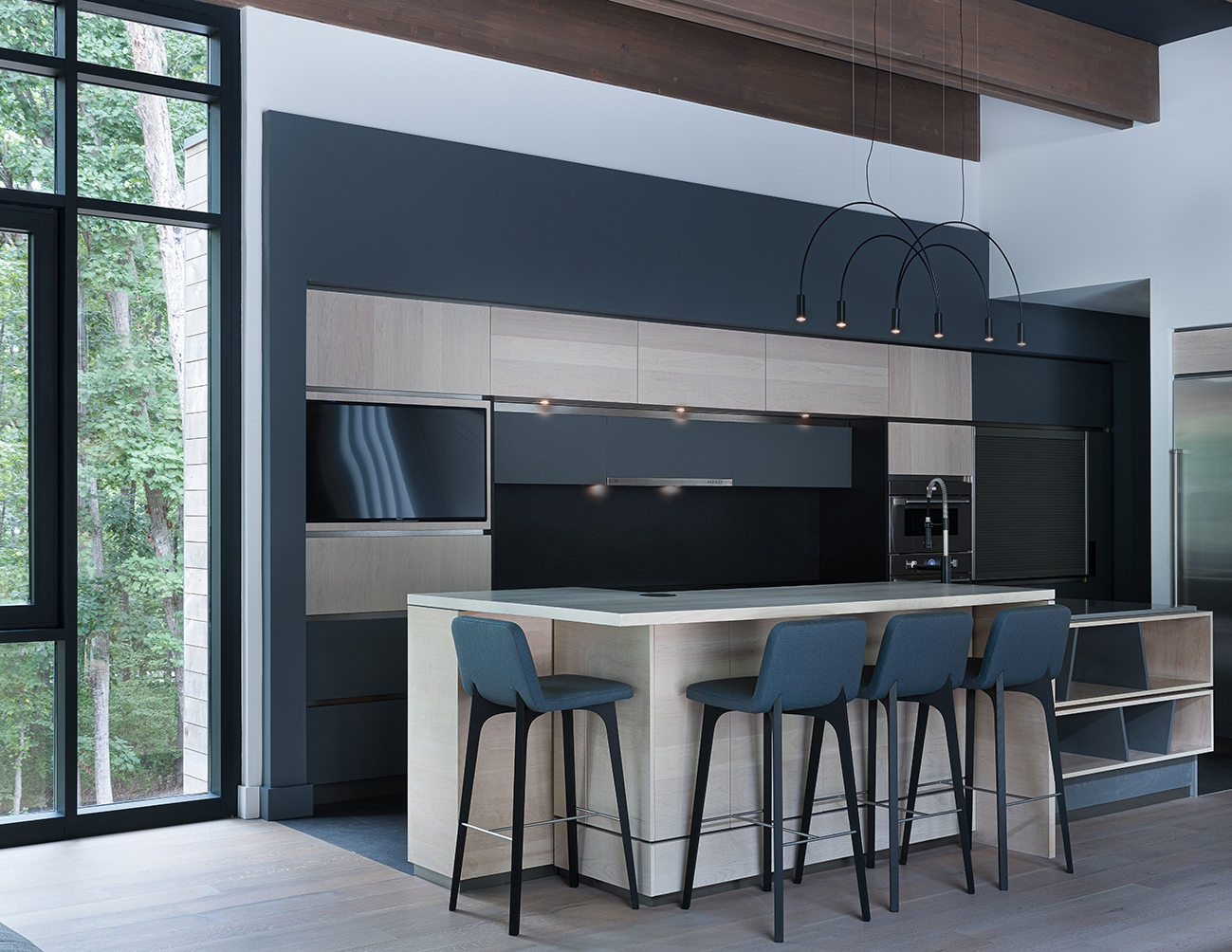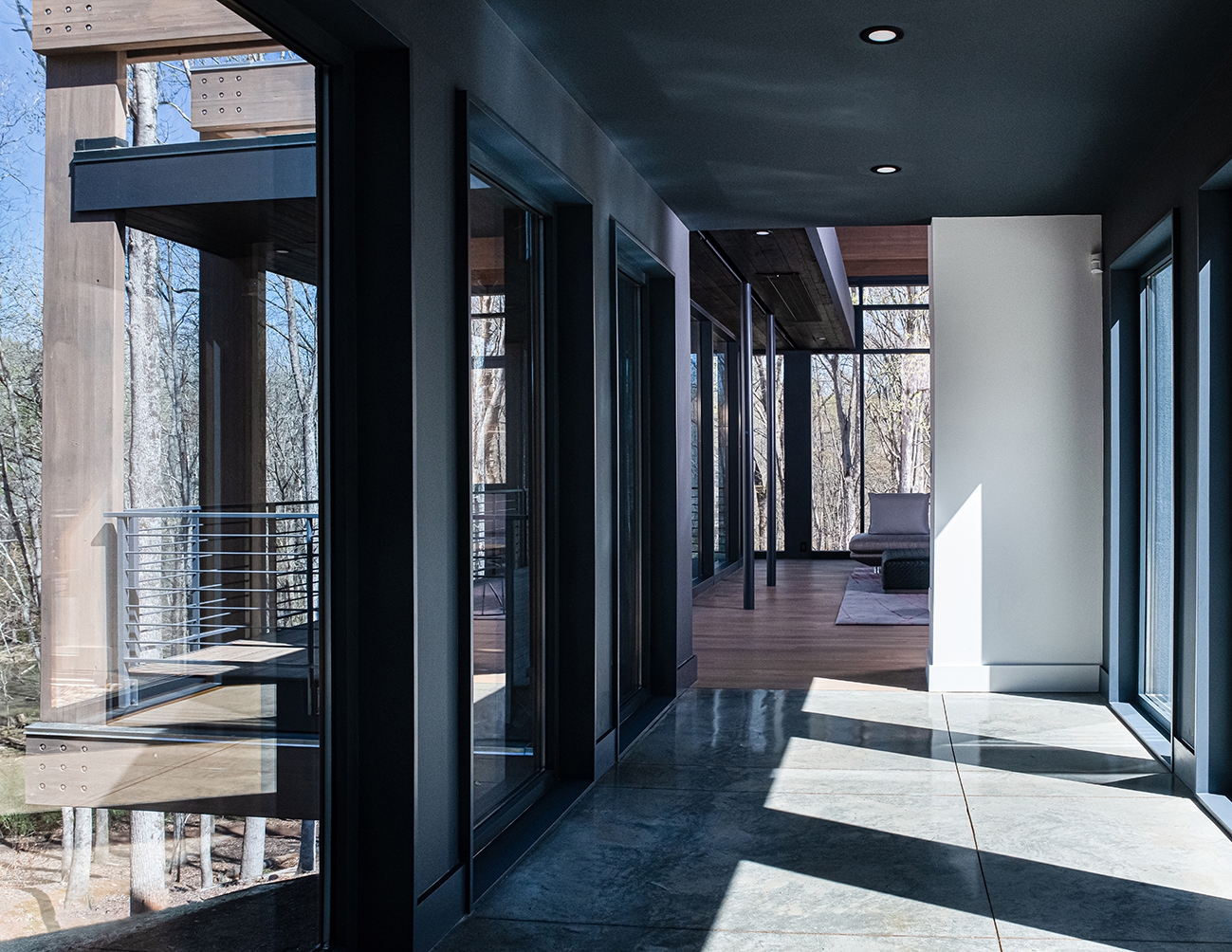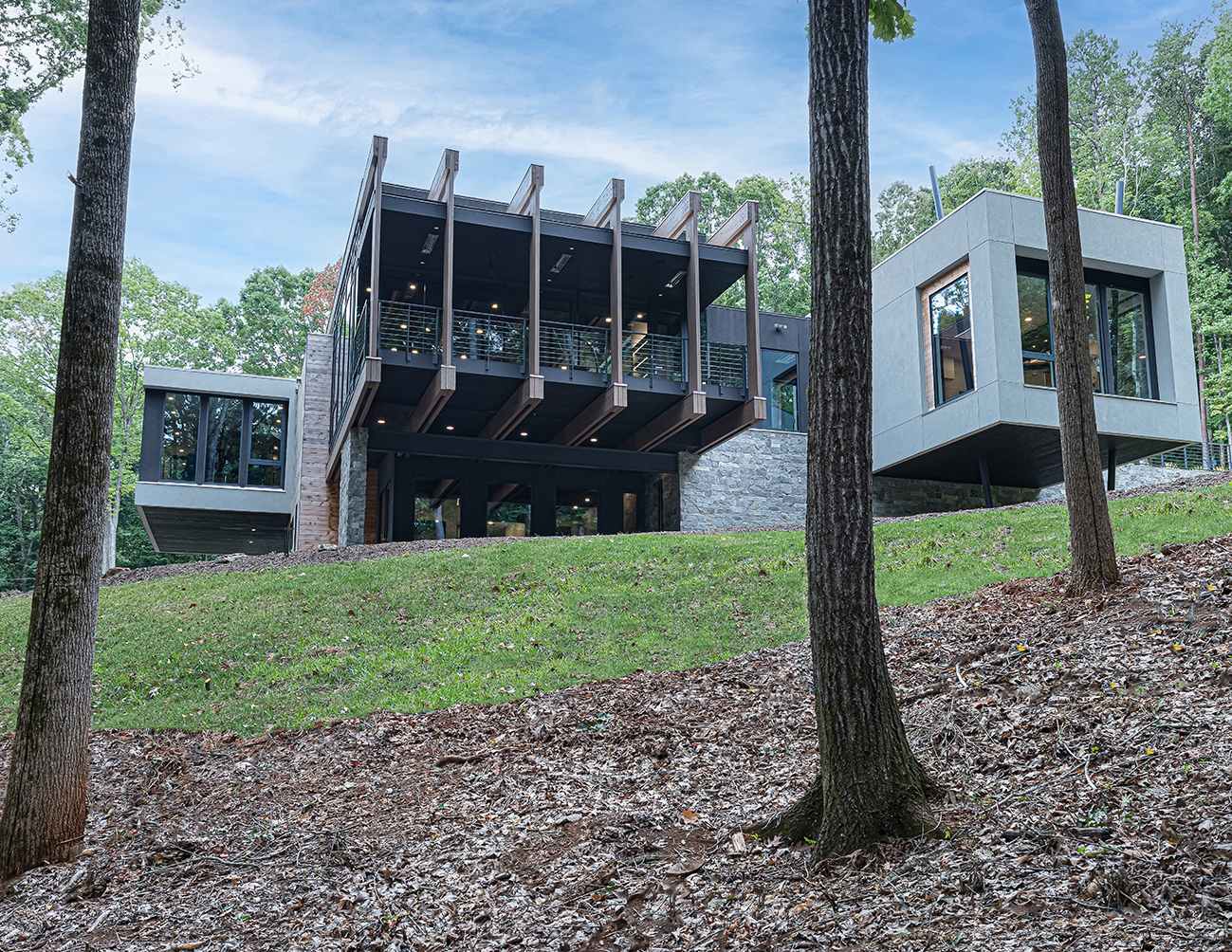The clients asked for an “extraordinary home”. That was it; and after a bit of probing - to create one that would cantilever into the treetops, overlooking Lake Wylie. At the same time they wanted to stay grounded and sans stairs to climb in order to grow old in this new dream home.