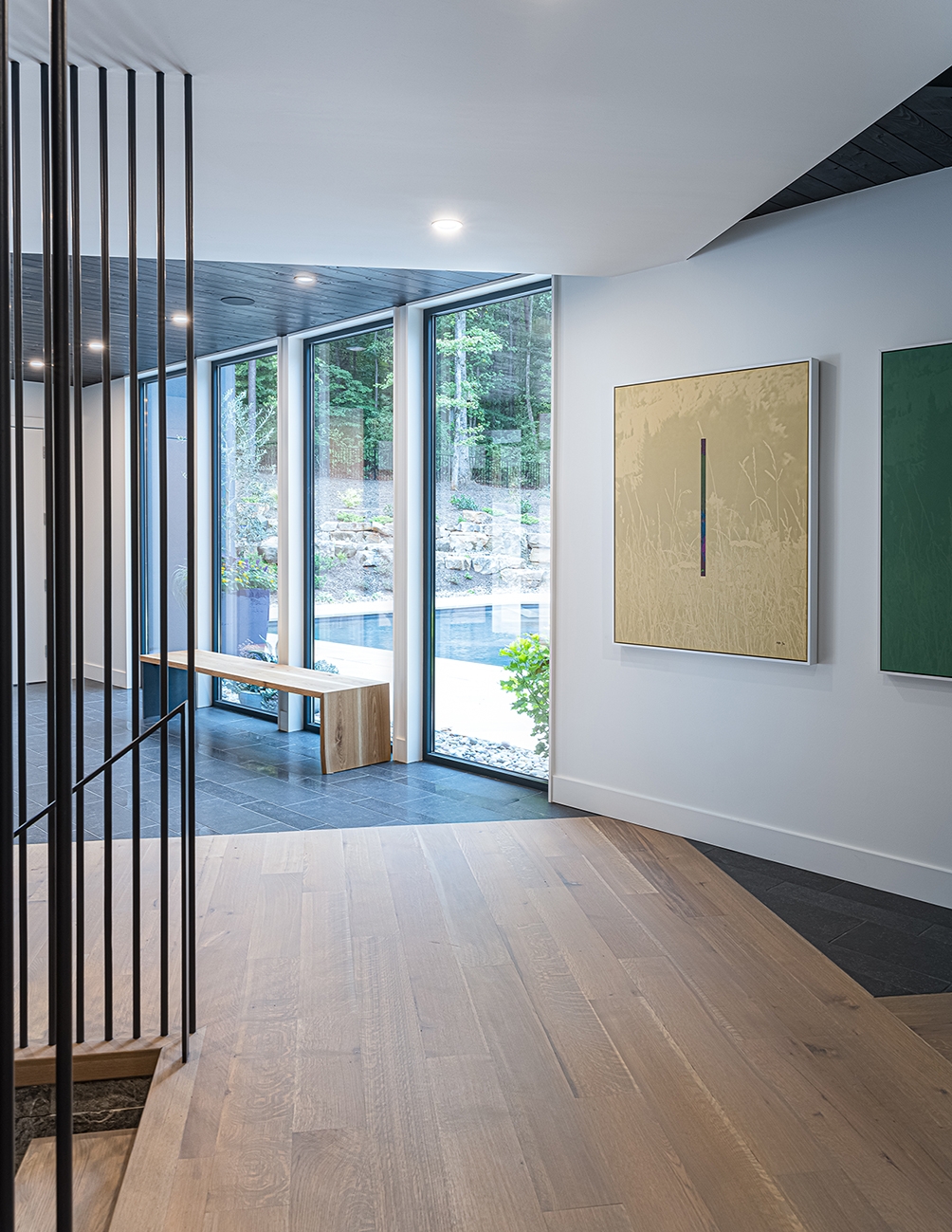 So a set of stone walls were cut into the hill with the house placed on top, creating level terraces in the hill side. The home was left careening over the artificial cliff, providing views for all the primary spaces. The clients got to enter on a ground floor that takes them hovering into thin air at the edges.