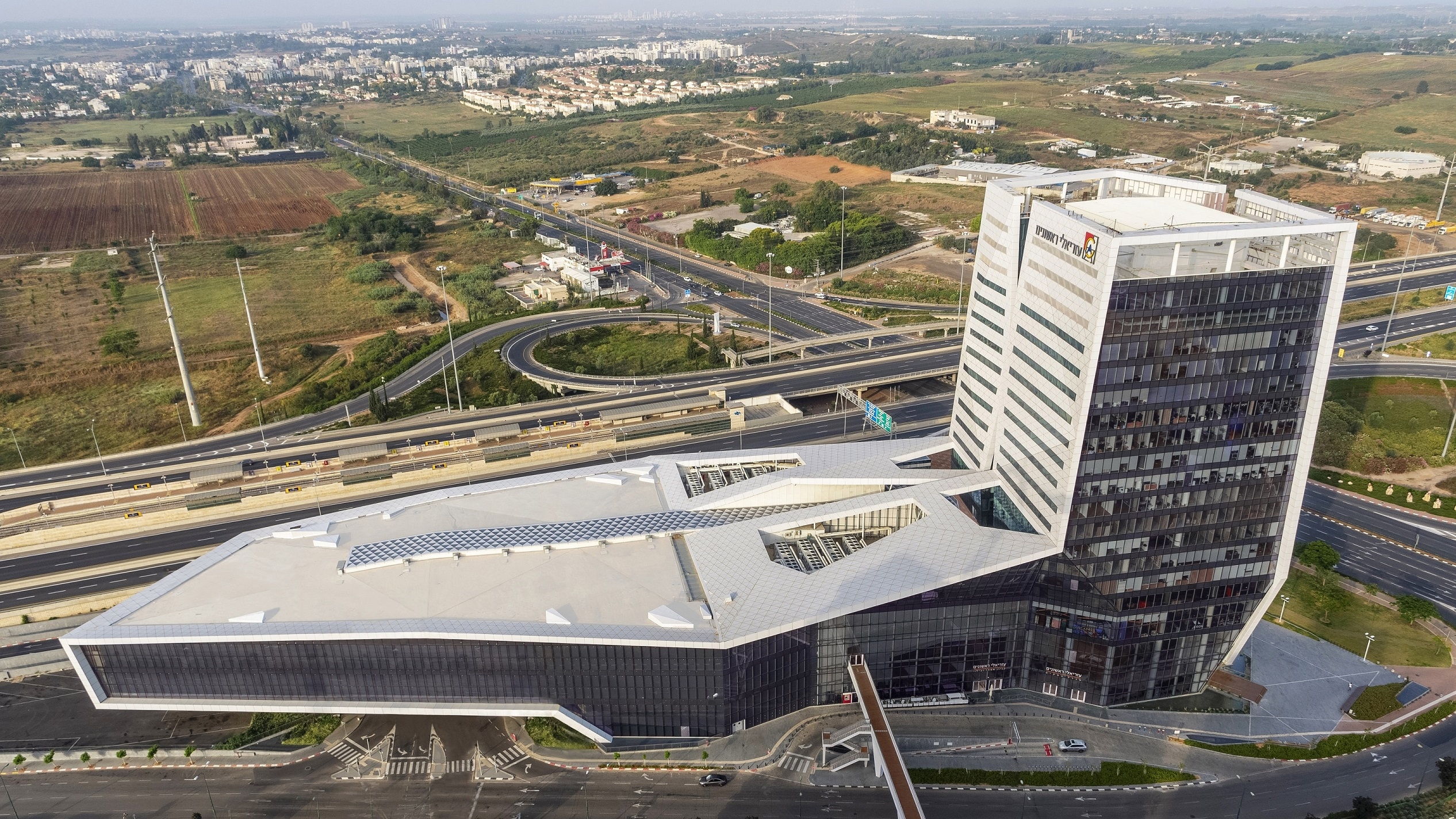 The architectural design aims to combine the linear, horizontal three floor shopping arcade with the vertical mass of the office tower above by a folded "origami" design of the envelope, flowing from wall to roof, including also the underside of the horizontal area ("sixth facade").