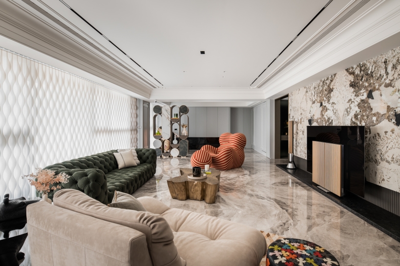 After three years of the covid-19, the couple, who had been living abroad for a long time, changed their lifestyle to focus more on the spatial scale and functional integrity of the home. In terms of material selection, the couple is particularly fond of the flexible application of natural stone in the space.