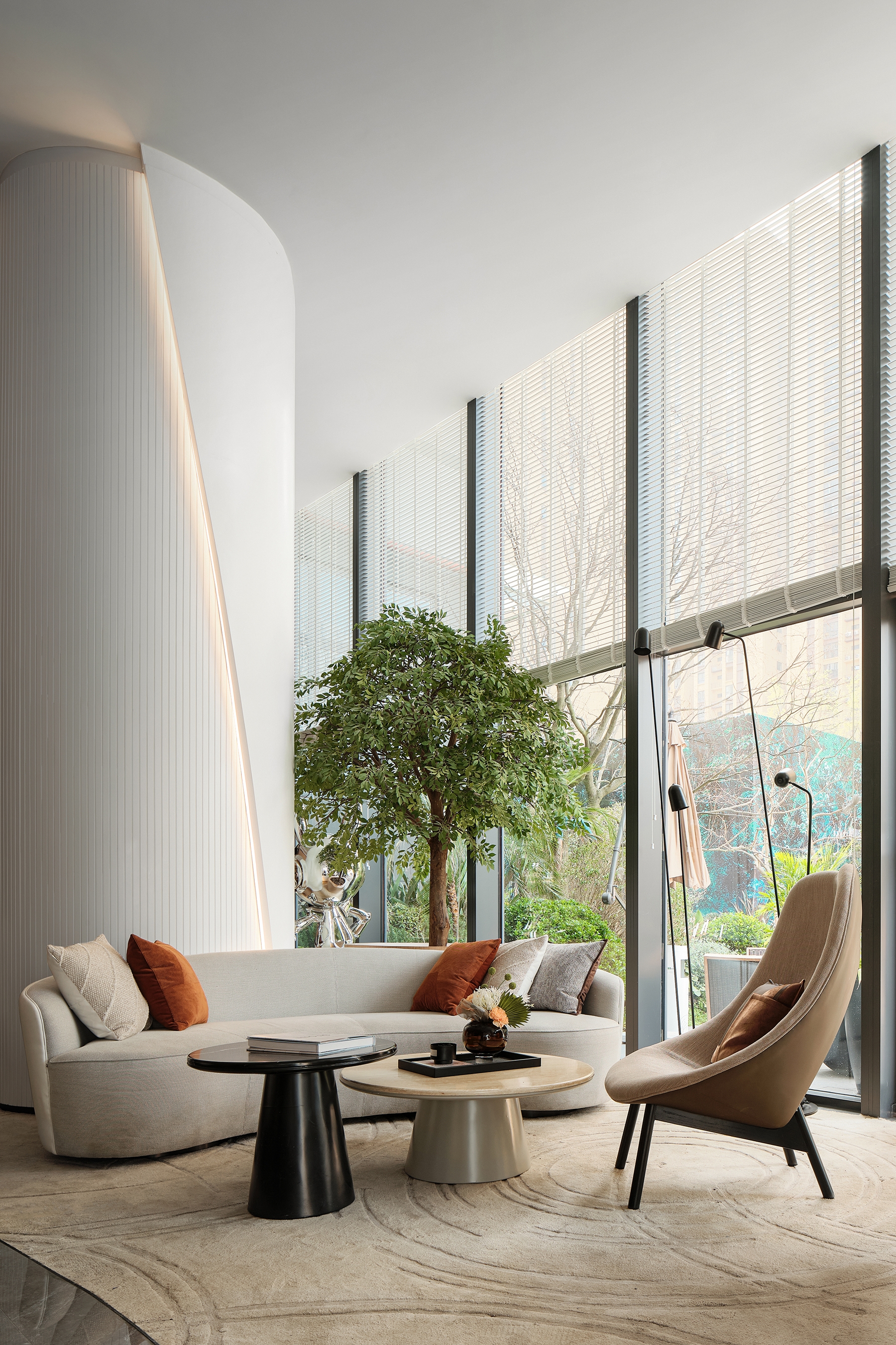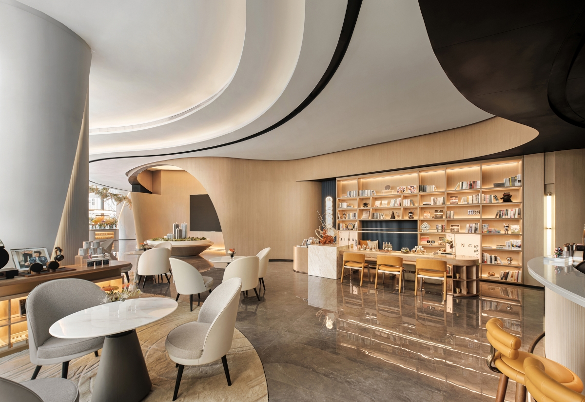 The discussion area provides a bright, clean atmosphere. Together with the greenery outside, it creates a harmonious environment for the neighborhood. In the book area, the designers hope that the culture and joy of reading could attract and spread to more people. On the other side, there is a coffee shop where visitors may take a seat and relax for a while while admiring the lush surroundings and warm sunshine.