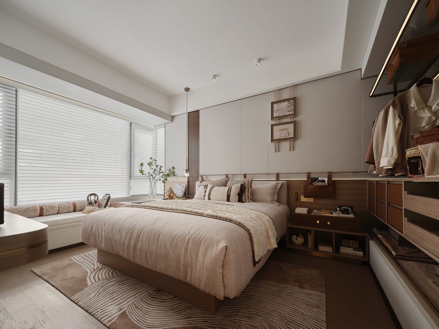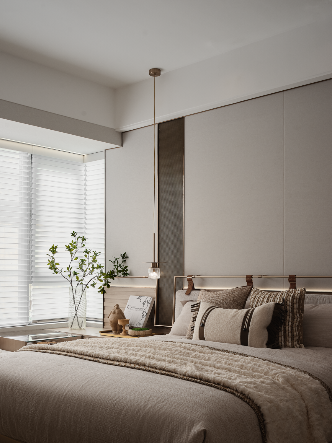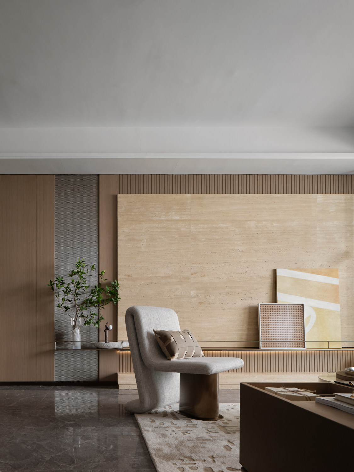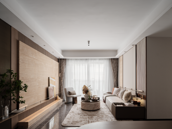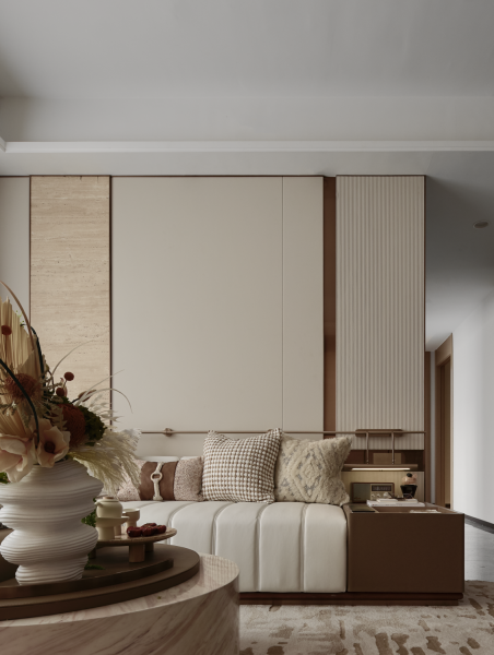 The project is located in Foshan, China, with an area of 108 sq.m. The designers work to create an elegant and cosy home that help residents slow their pace and finds inner peace out of the bustling city.