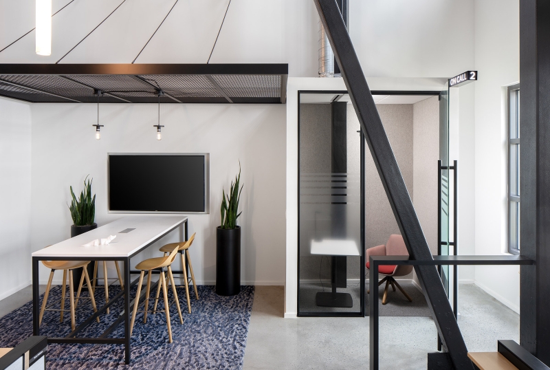 Responding to the need for impromptu meetings, open & enclosed collaboration spaces are throughout. Phone booths provide acoustic privacy and a secluded workspace.