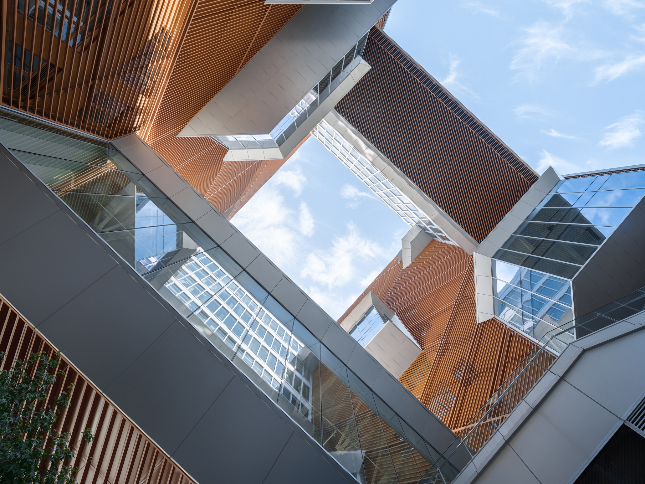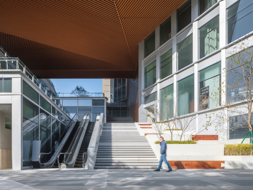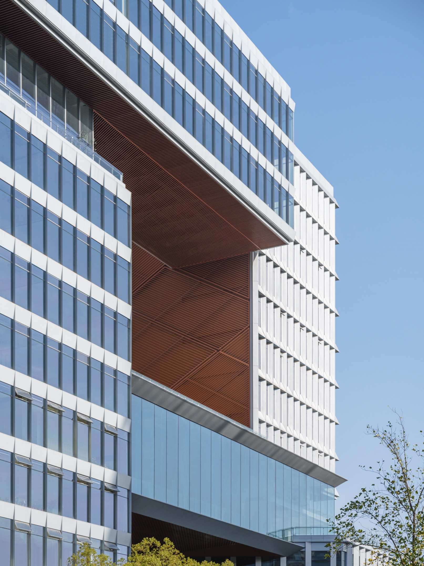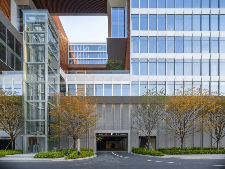 Hangzhou KAI Innovation Office Complex is situated at the gateway of neighboring Zhejiang University. It was designed as a social melting pot for office conglomerate, serving corporate headquarters, mid-size enterprises, start-ups and co-working space. Interlocking masses open up a central courtyard, allow natural light and cross ventilation for both indoor and outdoor space. A communal stairs penetrate through the courtyard and interconnect programs from L1 to L5, providing multi-dimensional event spaces, while ancillary programs are juxtaposed as boxes, enhancing connectivity for all users. Window wall system is adopted for facade design, responding to view angles and sun path for better energy performance. The vertical sun shading blade and the horizontal spandrel reverses its angle for different orientation, creates unique identities for occupants in the stacking masses. This landmark has become a 24/7 social place for entrepreneurs, university students and communities, and redefines new office typology in Asia.