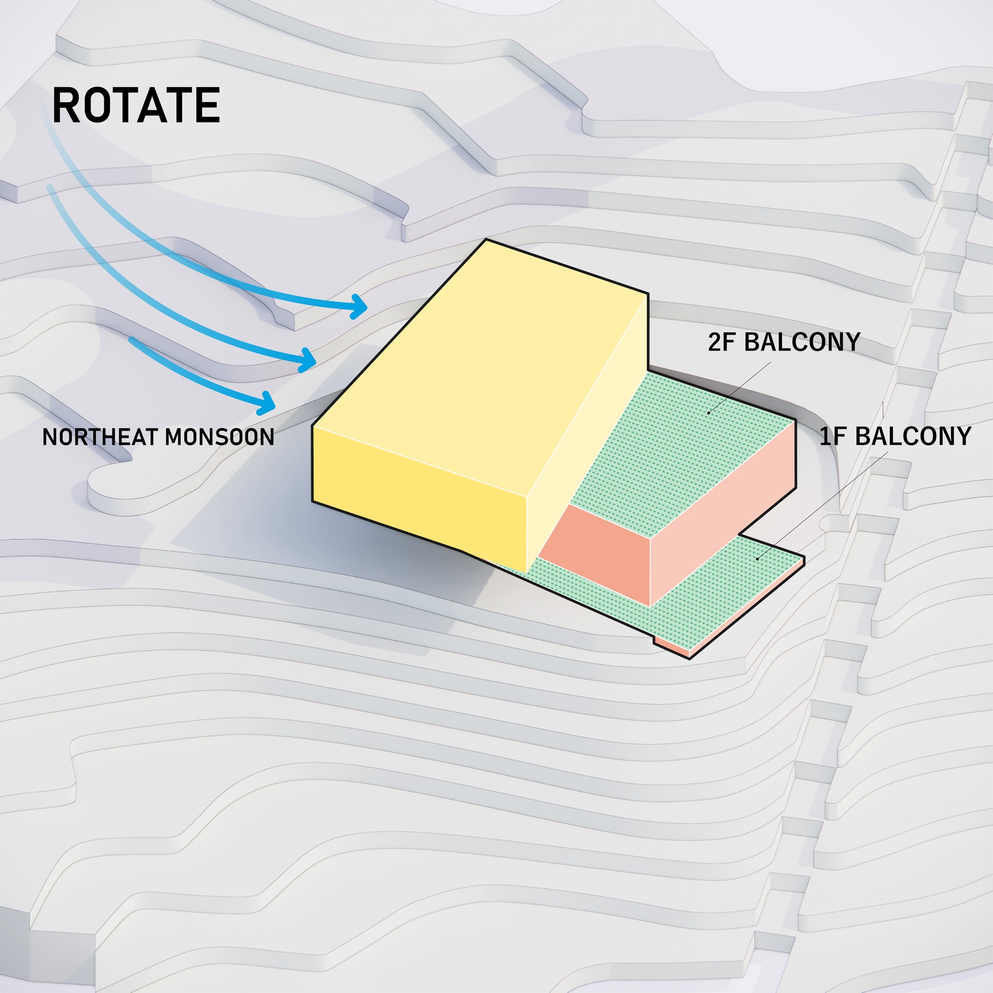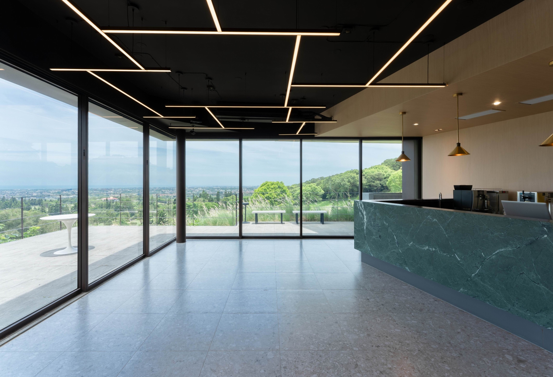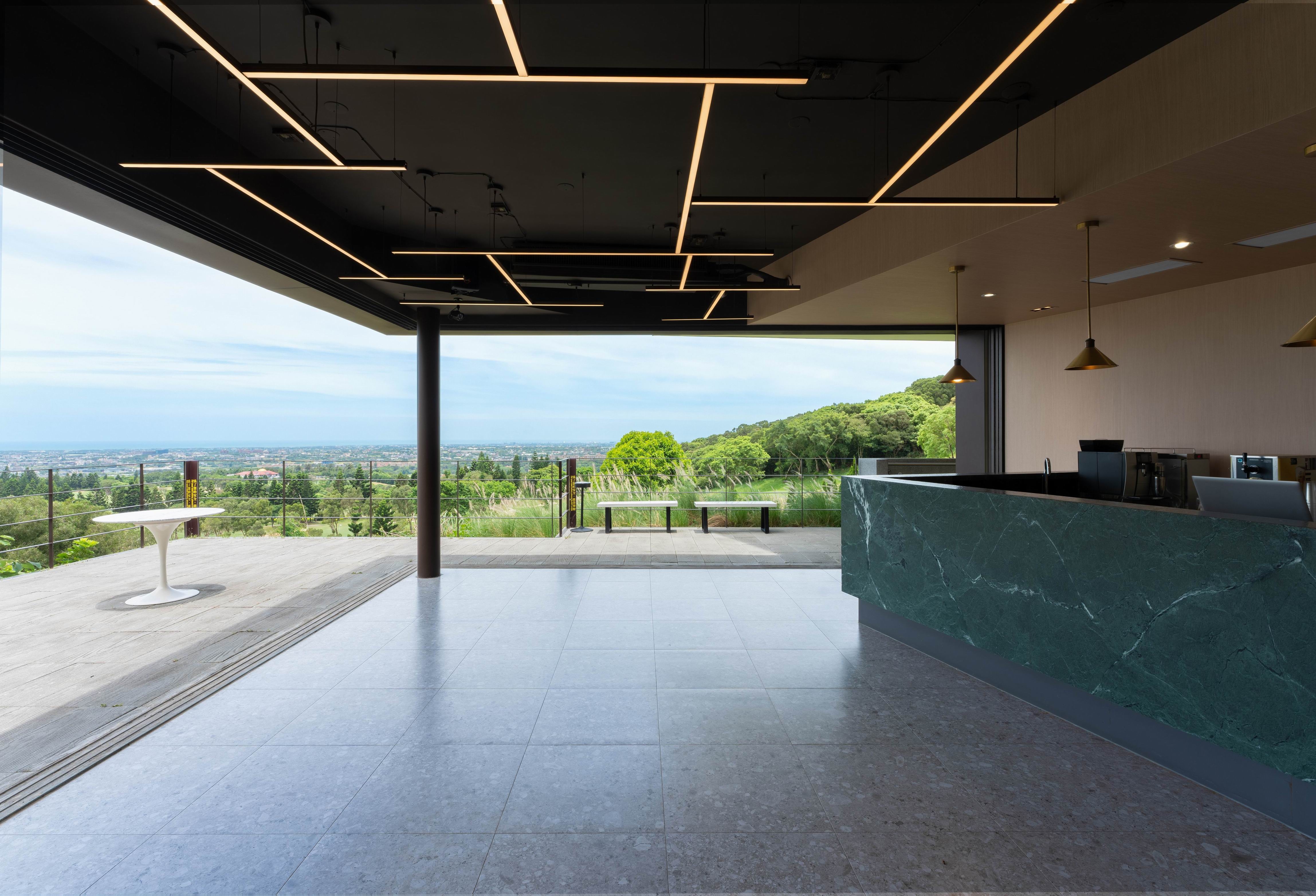 Perched on the hill’s inclined landscape, Midway House II is strategically positioned at the highest point of the Tsai Hsing Elite Club Golf Course. Programmatically, given its dual roles as both the midway house and Lodge, the building serves distinct public and private functions, so the key challenge was to guarantee efficient circulation while preserving a smooth spatial flow. The upper volume rotate and extends outward, establishing a transitional zone between the building and the natural landscape. This configuration not only shields against the northeastern monsoon winds but also offers a comfortable observation deck, maximizing the view. Furthermore, exploiting the site’s natural topography, separate entry points were designed for the upper and lower levels. The architectural design of the project centers on transparency and void spaces, with the aim of creating a connection with the natural surroundings. Oversized glass sliding doors allow a panoramic 270-degree outlook onto the surrounding nature. This blurring of the line between indoor and outdoor spaces, with interior scenes merging with the changing light conditions, fosters a vibrant and colorful ambiance.