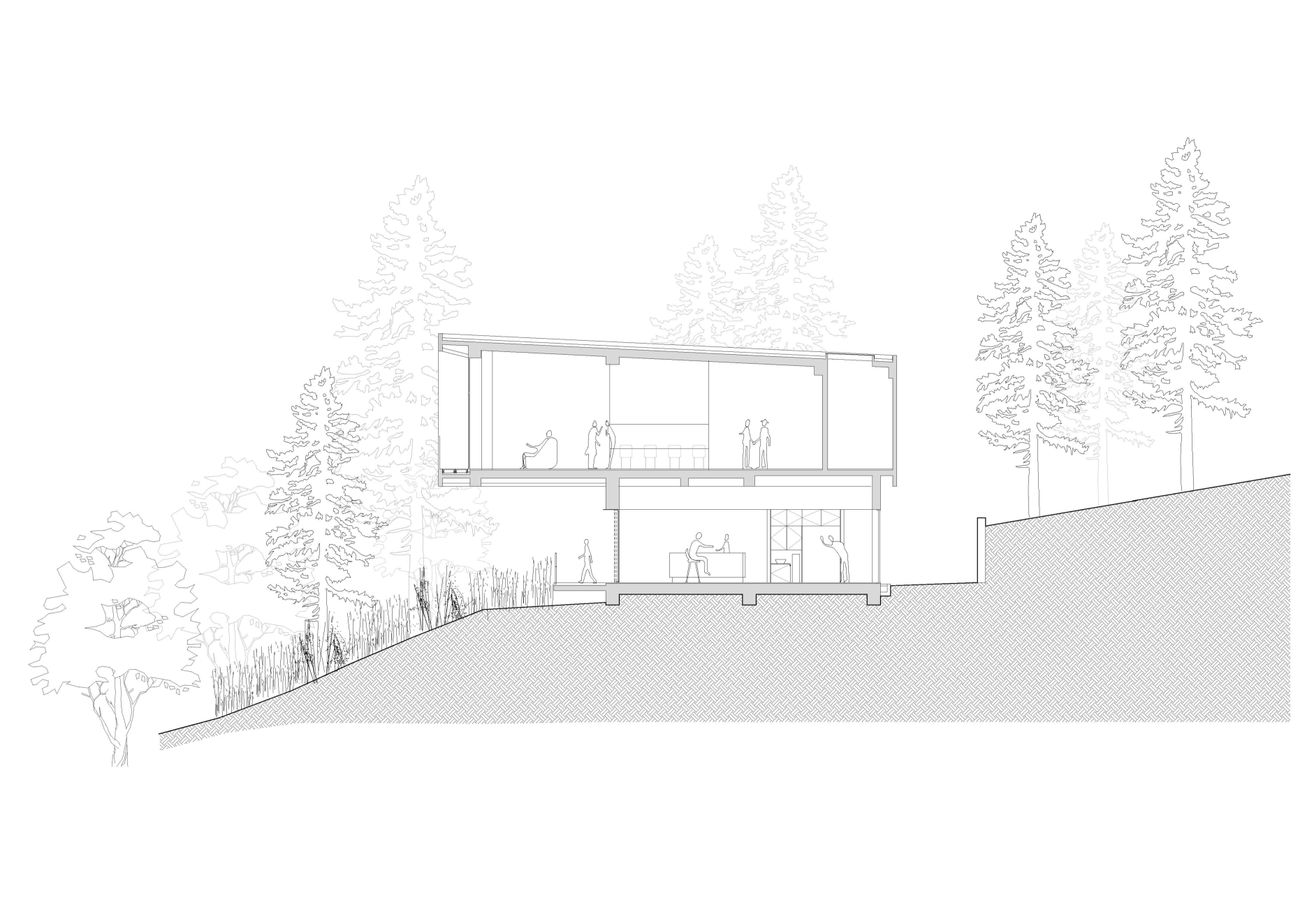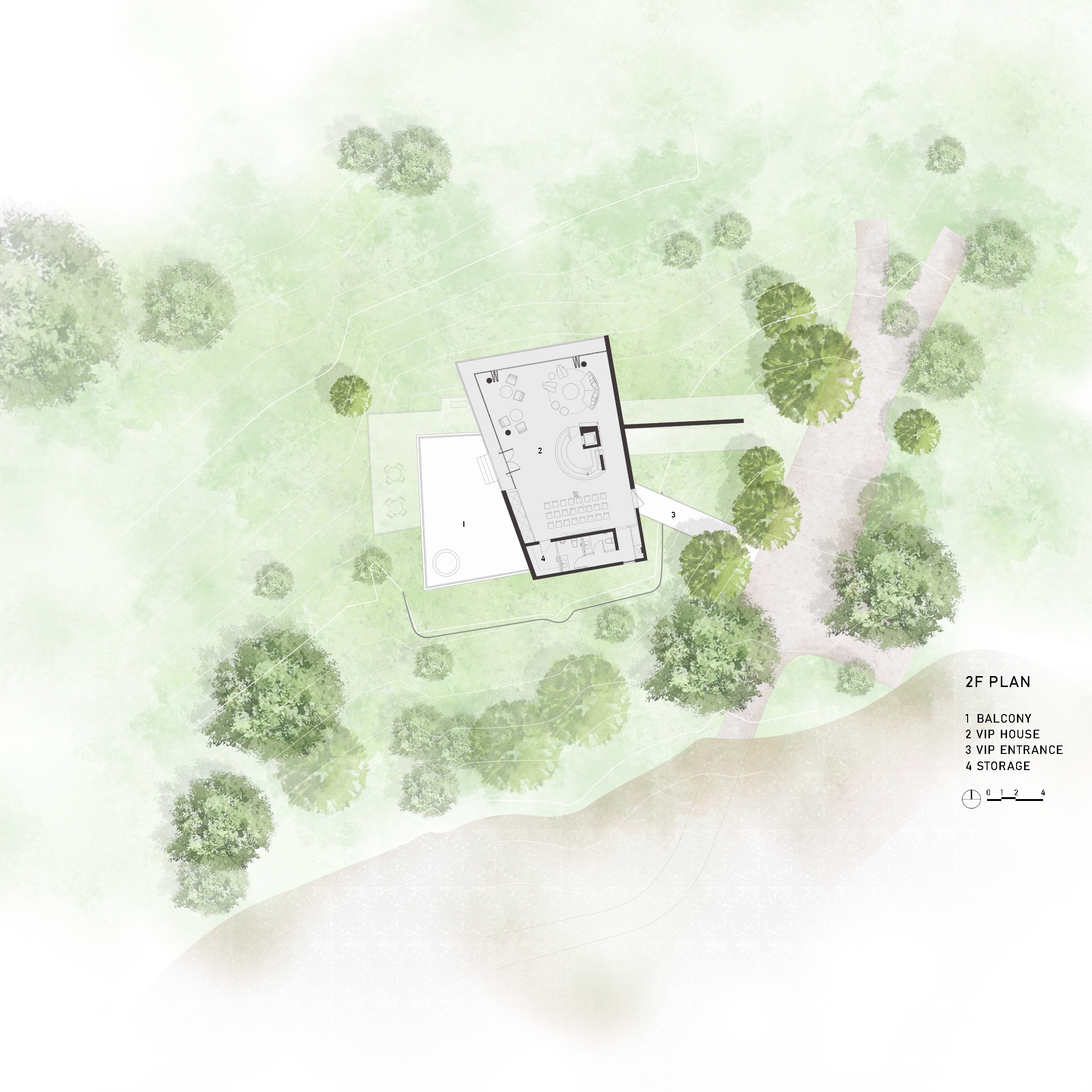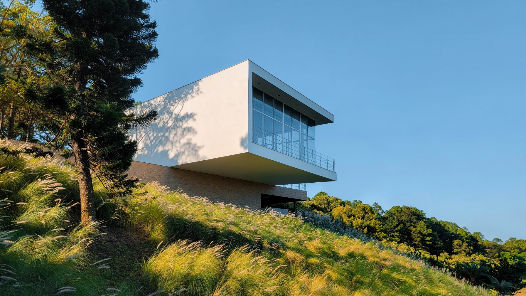 Perched on the hill’s inclined landscape, Midway House II is strategically positioned at the highest point of the Tsai Hsing Elite Club Golf Course. Programmatically, given its dual roles as both the midway house and Lodge, the building serves distinct public and private functions, so the key challenge was to guarantee efficient circulation while preserving a smooth spatial flow. The upper volume rotate and extends outward, establishing a transitional zone between the building and the natural landscape. This configuration not only shields against the northeastern monsoon winds but also offers a comfortable observation deck, maximizing the view. Furthermore, exploiting the site’s natural topography, separate entry points were designed for the upper and lower levels. The architectural design of the project centers on transparency and void spaces, with the aim of creating a connection with the natural surroundings. Oversized glass sliding doors allow a panoramic 270-degree outlook onto the surrounding nature. This blurring of the line between indoor and outdoor spaces, with interior scenes merging with the changing light conditions, fosters a vibrant and colorful ambiance.