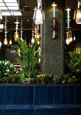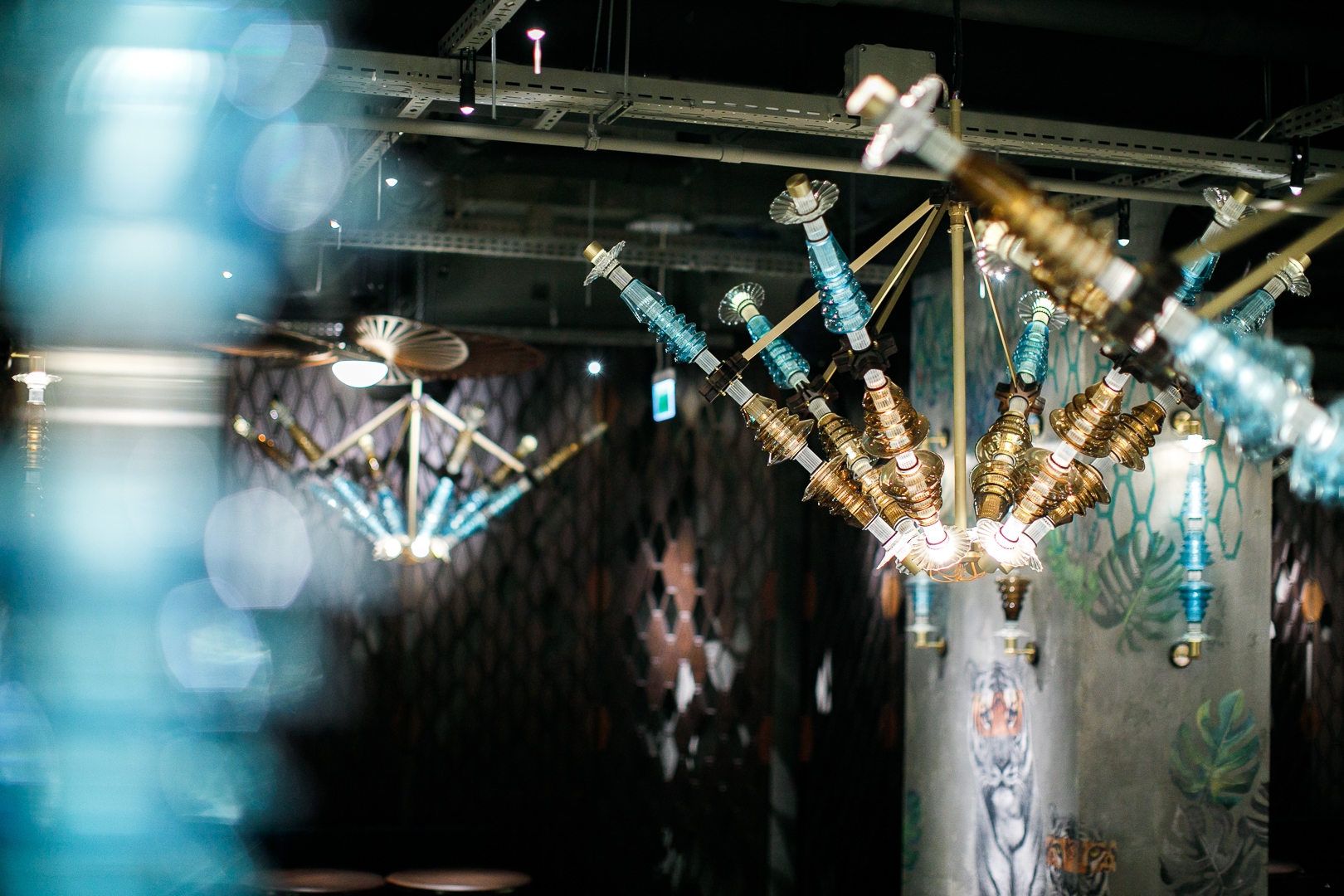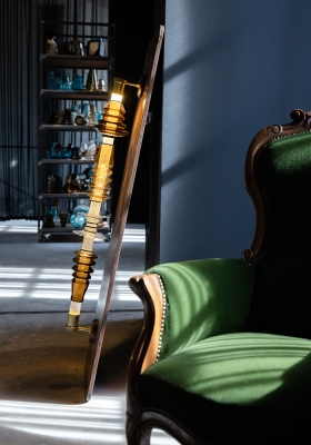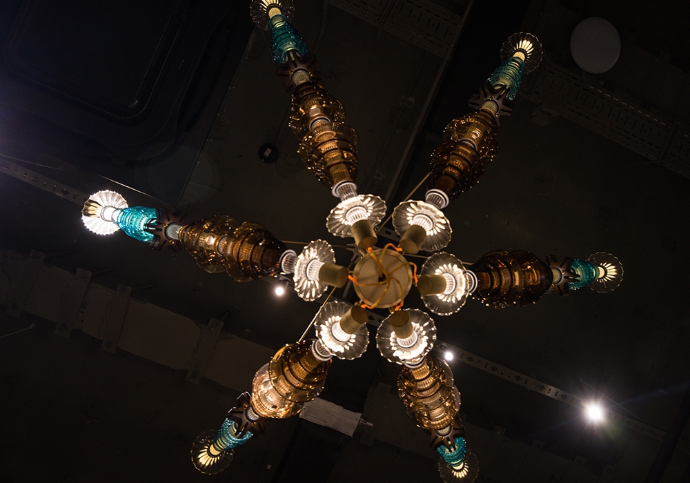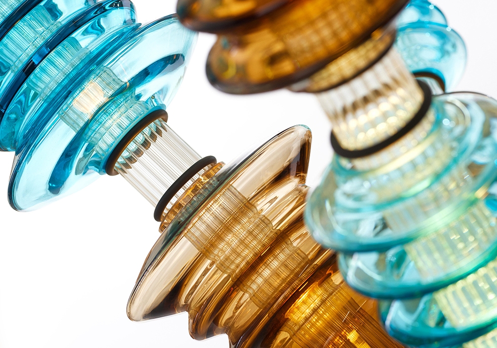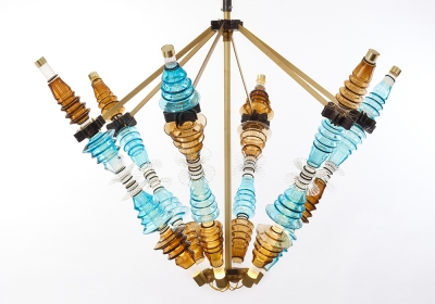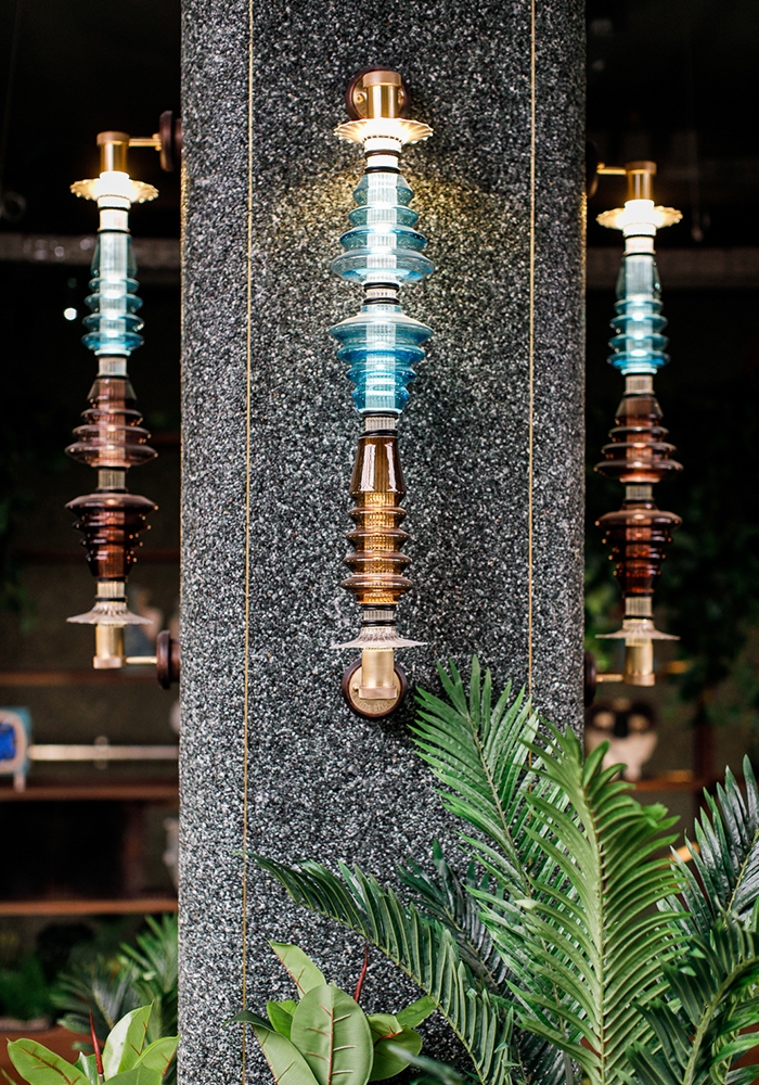 Unique molded blown-glass pieces, made by Romanian artisan master Jeni Costachescu, give an exotic and genuine feel to the final ensemble, which can be originally integrated in both residence and public space.