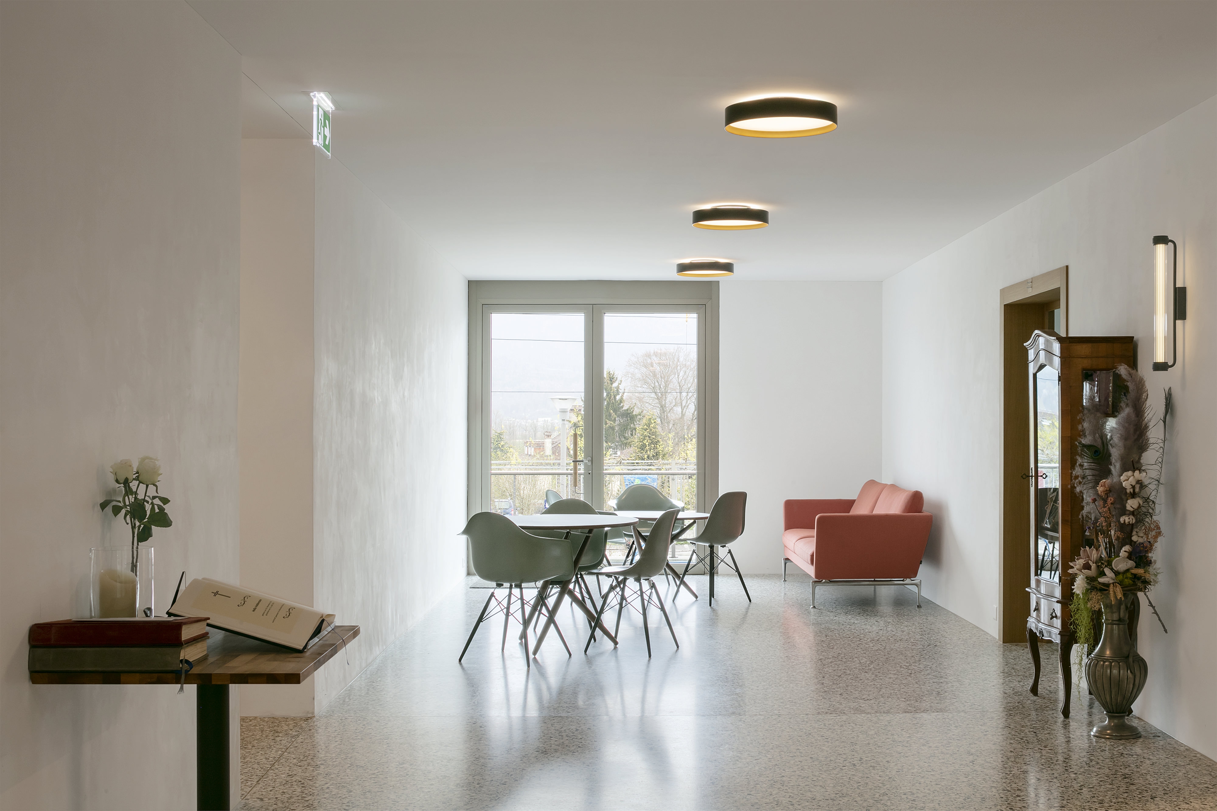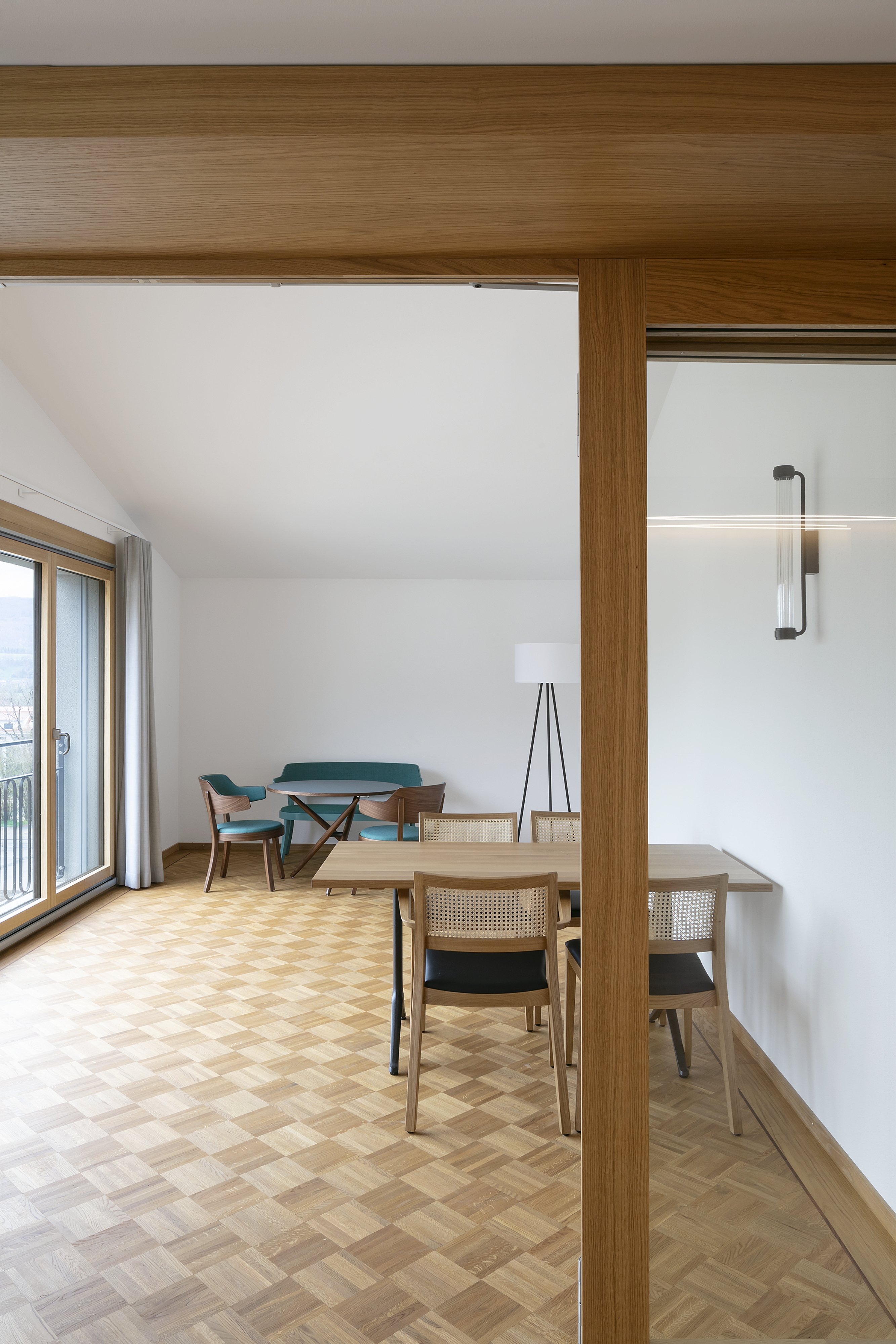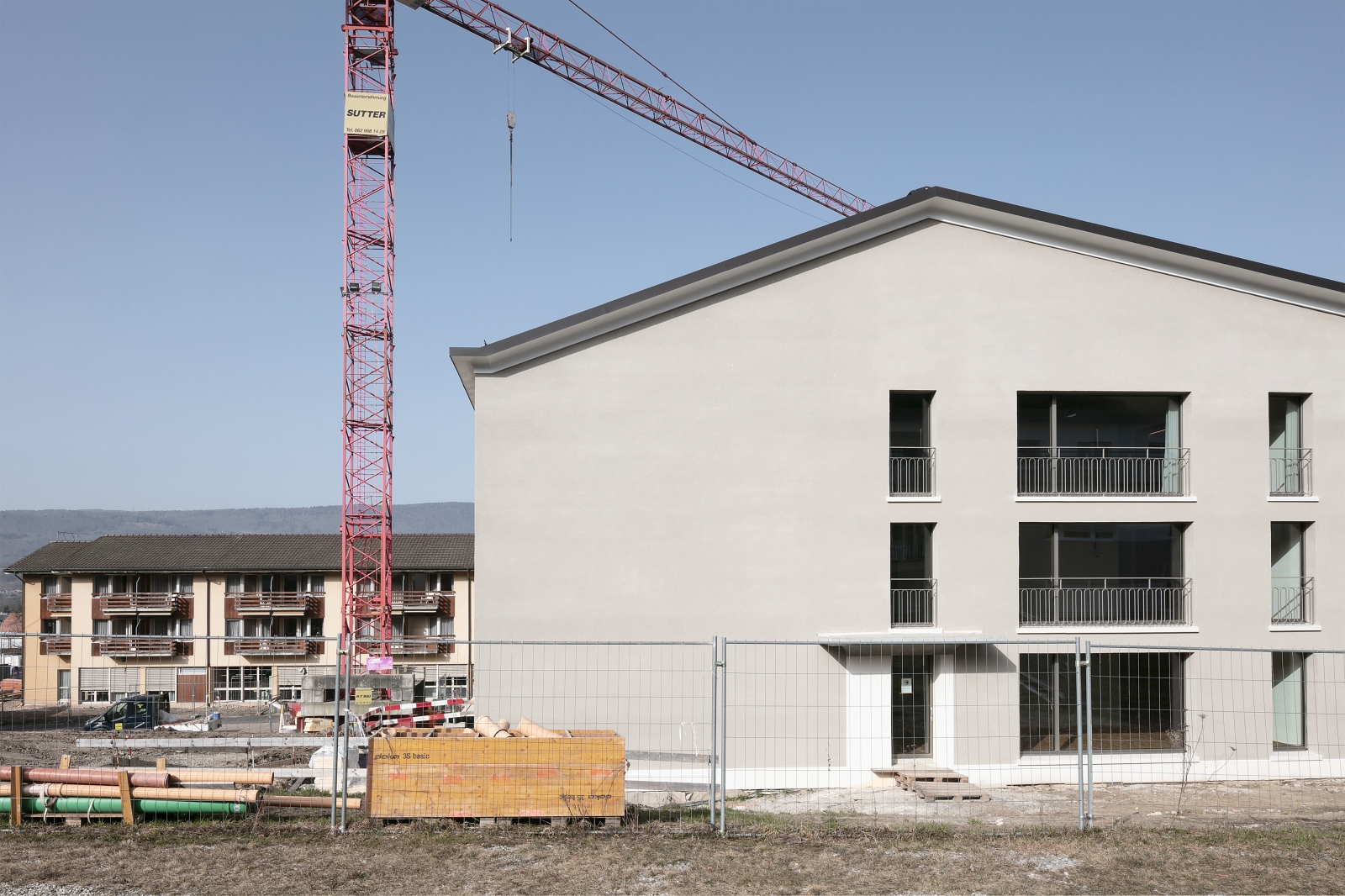 The L-shaped overall form of the retirement home in Büren an der Aaare forms a beautiful access courtyard that opens to the slope to the south and to the historic farm building to the west. The park-like surroundings up the slope, as well as the garden with the pond to the east and the various walking paths offered to the residents, create a scenic atmosphere that will be largely preserved with the extension of the home.