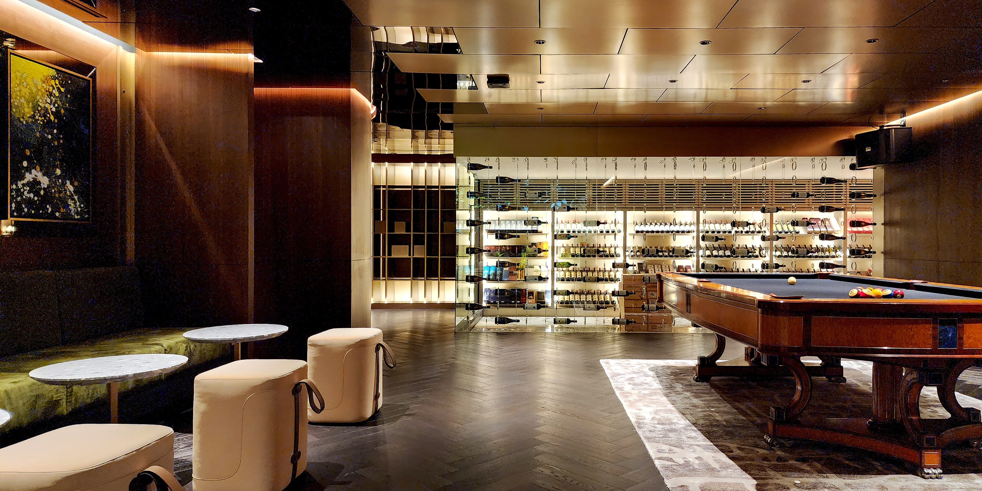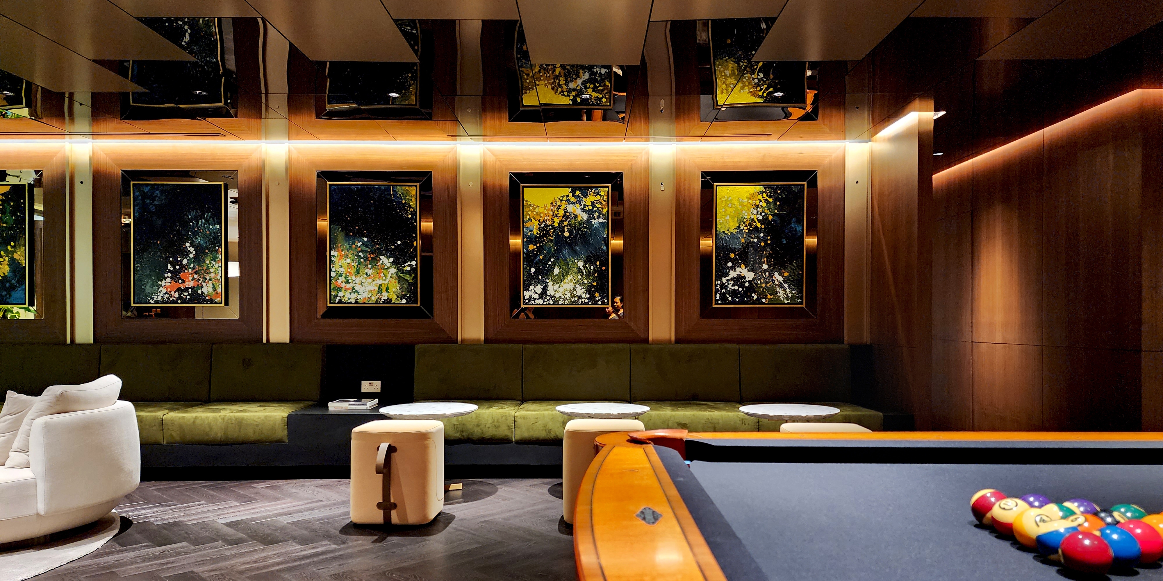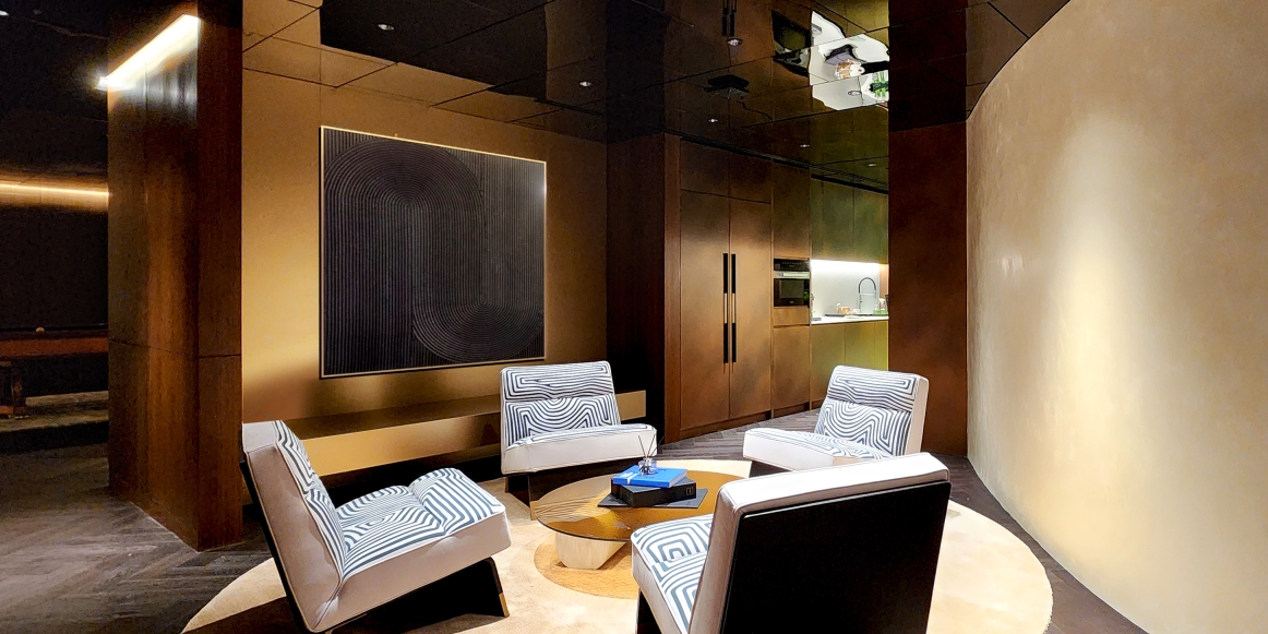 One notable challenge was the garage's low ceiling height. However, this was ingeniously resolved by introducing a mirror ceiling, which not only addresses the height issue but also imparts an illusion of expansiveness. This innovative touch elevates the overall ambiance, making it feel airy and grand.