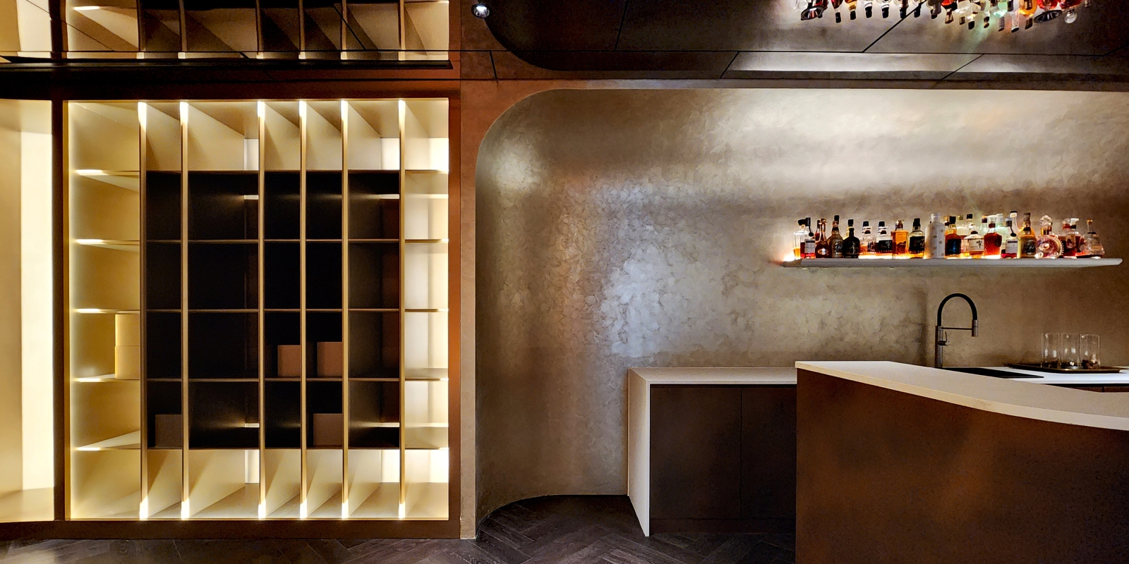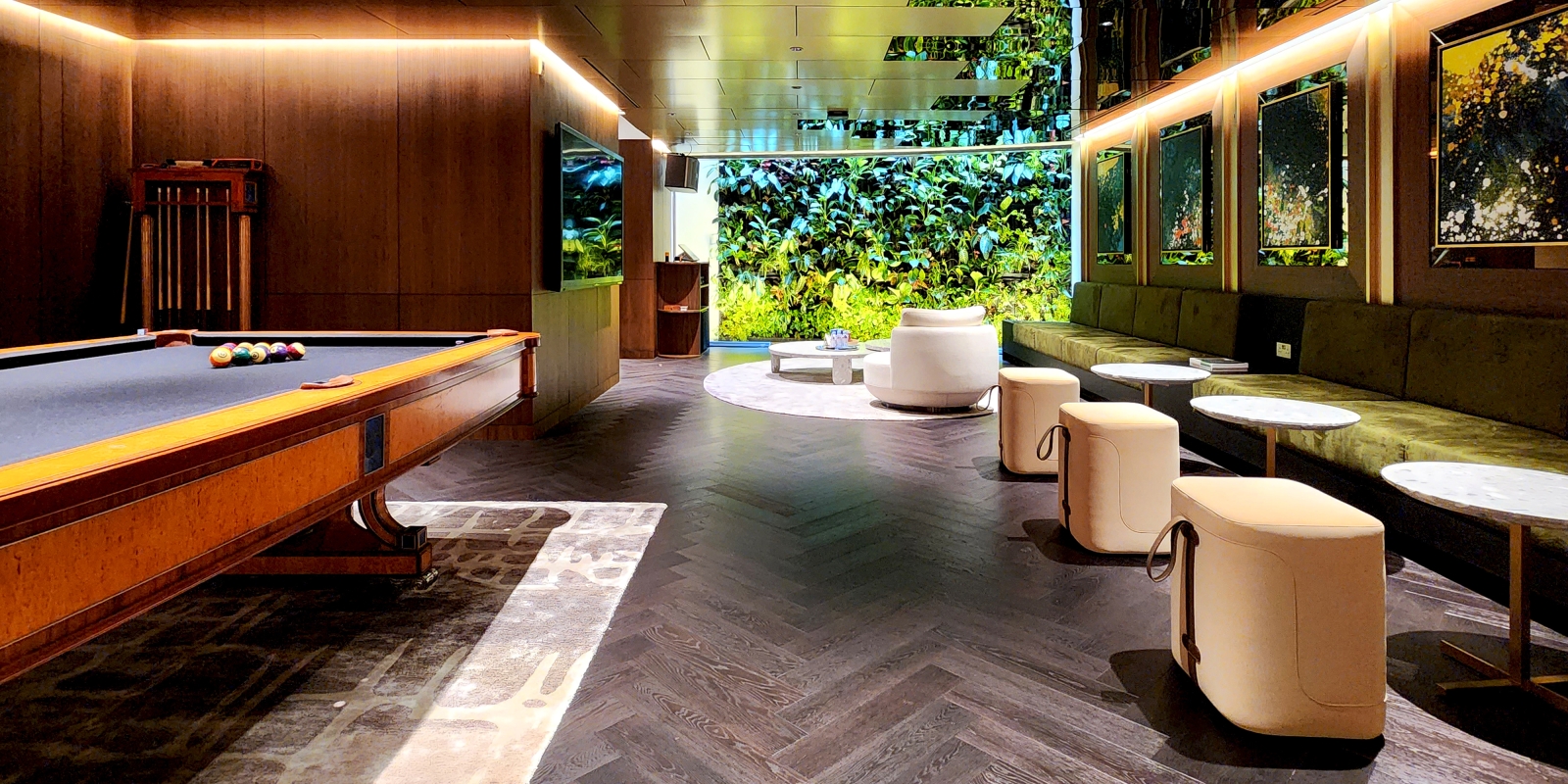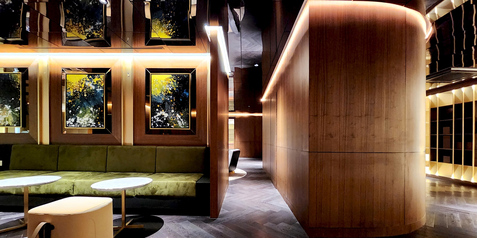 One notable challenge was the garage's low ceiling height. However, this was ingeniously resolved by introducing a mirror ceiling, which not only addresses the height issue but also imparts an illusion of expansiveness. This innovative touch elevates the overall ambiance, making it feel airy and grand.